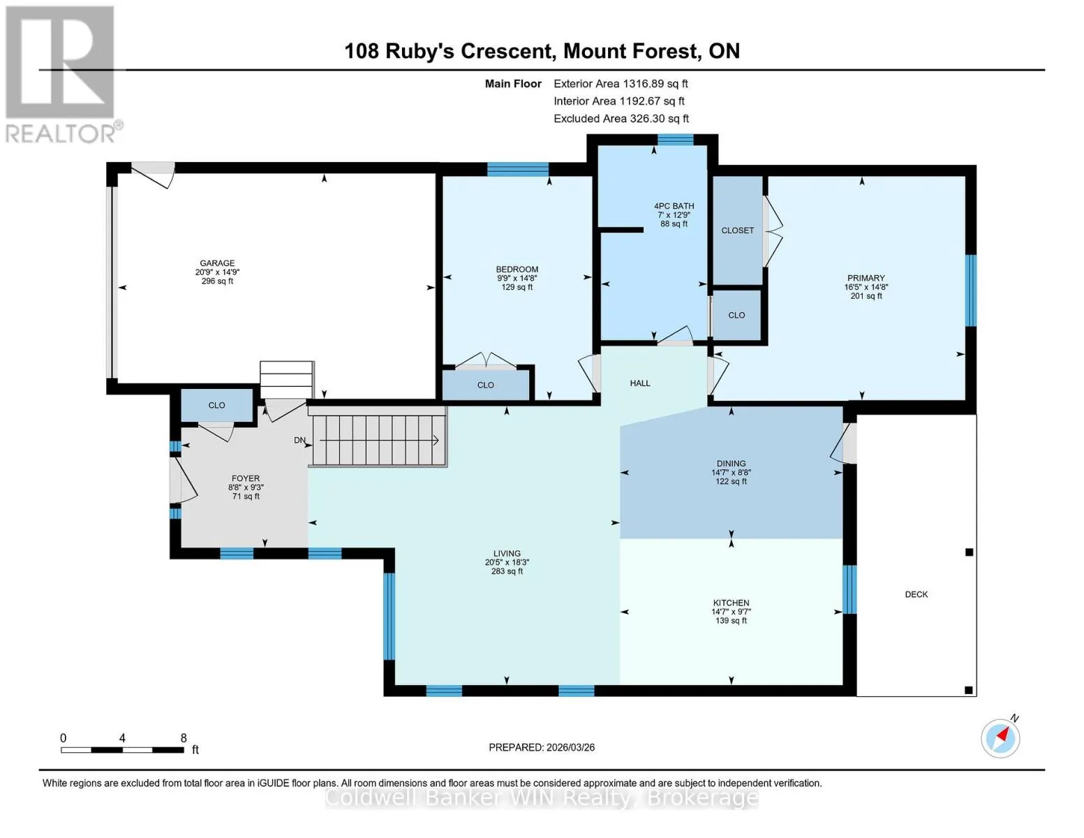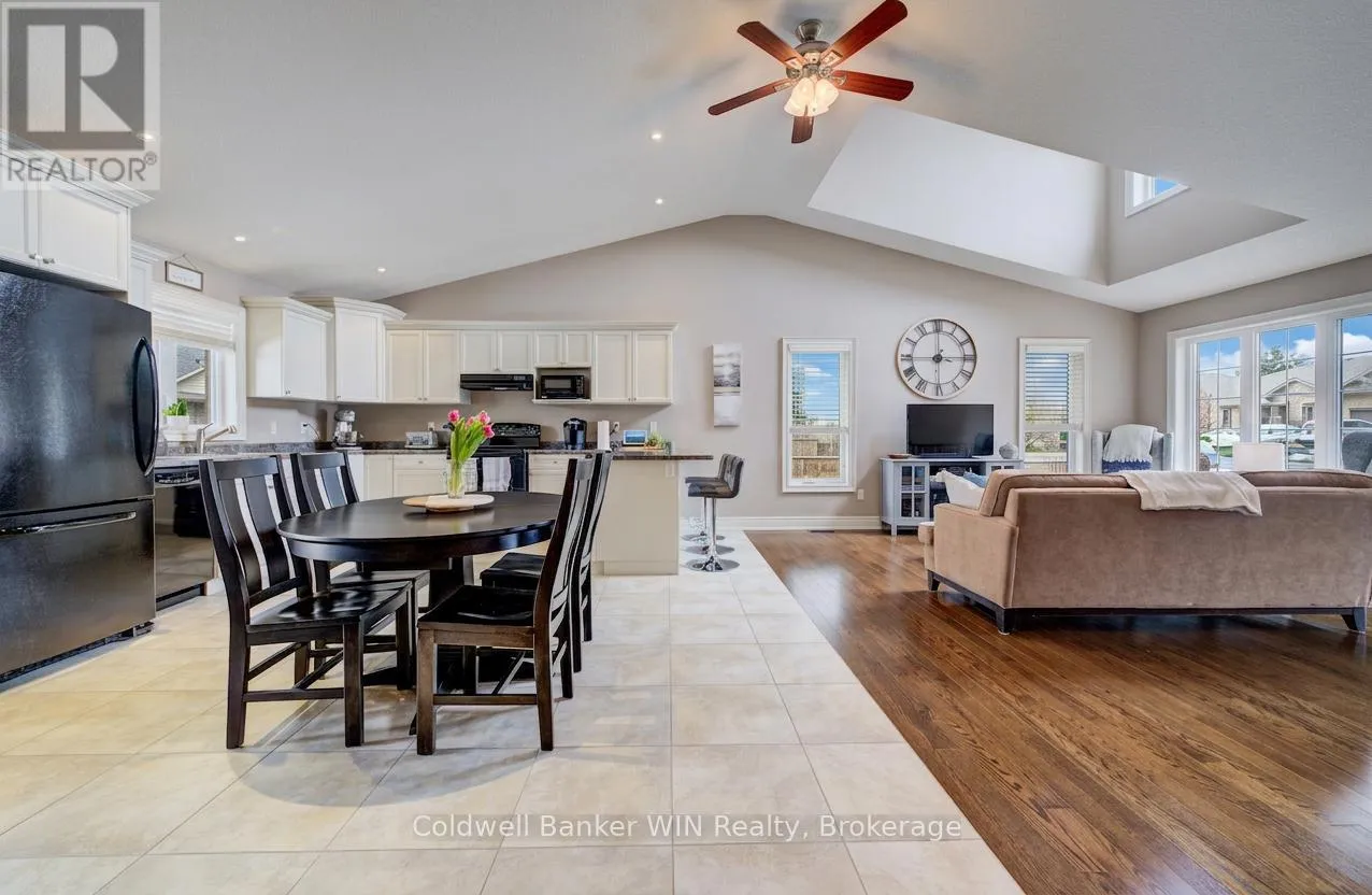 Cross Streets: Rubys Cres and Albert St. ** Directions: From Albert St turn Right onto Rubys Cres. Property on the Left. Welcome to this well-maintained 2012 red brick bungalow located in a quiet, family-friendly neighbourhood in Mount Forest. Offering excellent curb appeal, this home features a fully fenced yard, a single car attached garage, and a covered rear deck-perfect for relaxing or entertaining. Step inside to a bright, open-concept main living space highlighted by a stunning cathedral ceiling and dormer window that fills the home with natural light. The living room showcases beautiful hardwood flooring, while the kitchen and dining area are finished with durable ceramic tile. From the dining space, enjoy convenient access to the covered back deck for seamless indoor-outdoor living. The main floor offers two comfortable bedrooms and a 4-piece bathroom. For added flexibility, laundry is roughed-in within the bathroom closet for a potential stackable setup. Downstairs, the fully finished basement provides a spacious family room with plenty of room for multiple uses-whether it's a rec room, home office, or gym. You'll also find a third bedroom, a second 4-piece bathroom, and the current laundry area. Situated in a desirable neighbourhood of similar quality homes, this property offers easy access to downtown amenities, nearby green space, and the surrounding countryside making it an ideal place to call home. (id:27476)