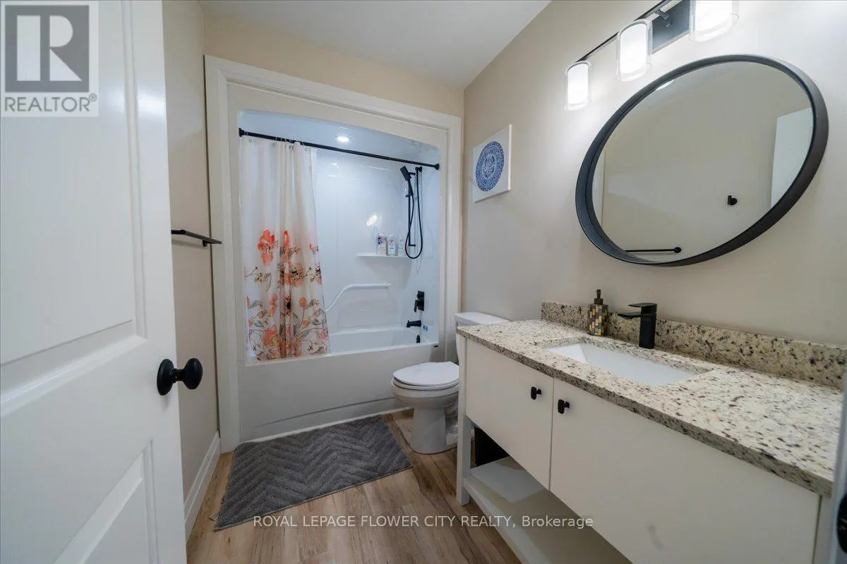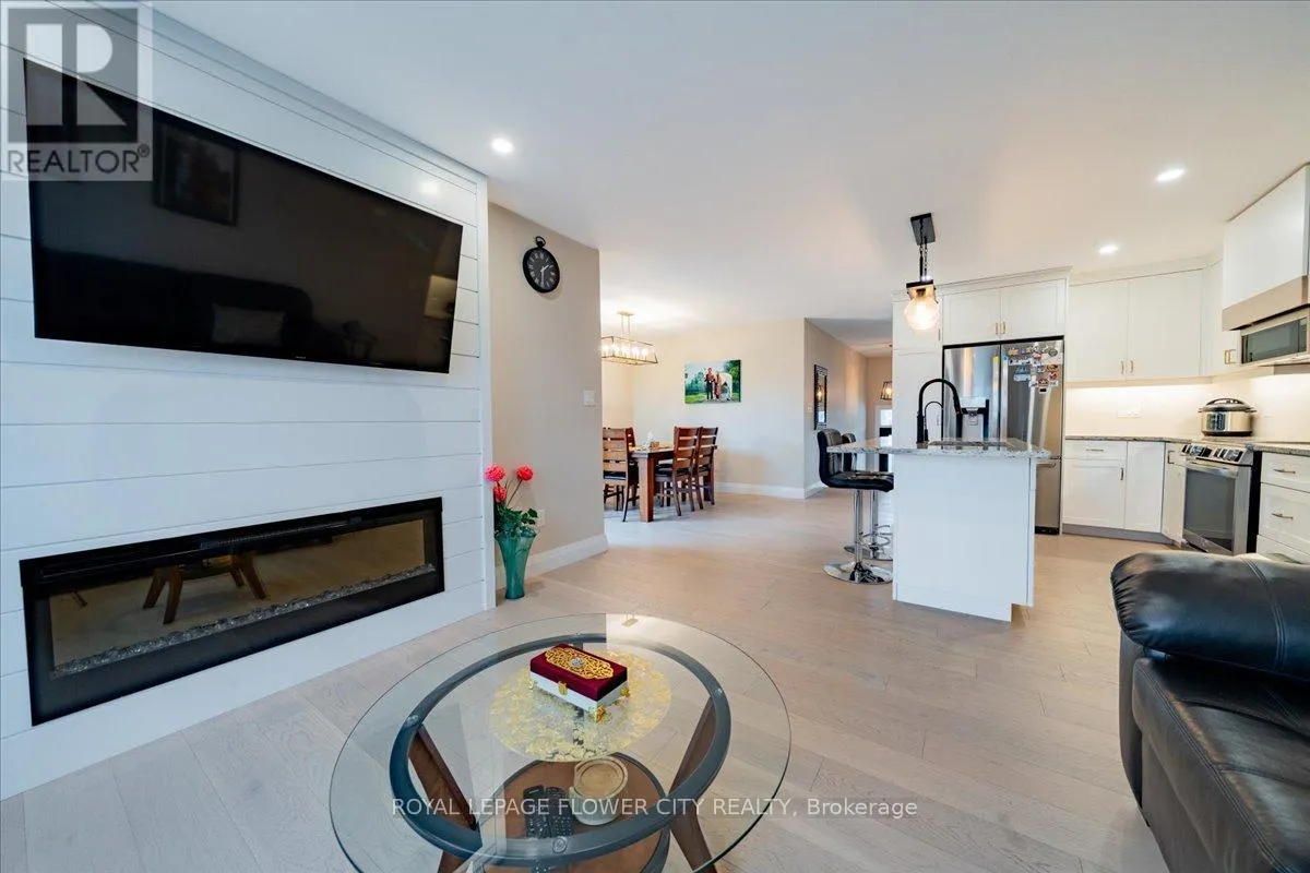 HWY 6 & Wellington St E Charming 4-bedroom detached bungalow, featuring a warm and functional layout. The open-concept kitchen boasts granite countertops and stainless-steel appliances, flowing seamlessly into a bright and spacious great room highlighted by a built-in wall fireplace perfect for relaxing or entertaining. The main floor offers hardwood flooring throughout, a private primary bedroom with ensuite, an additional bedroom, and a full bathroom. Downstairs, the fully finished basement is flooded with natural light thanks to large windows and includes two extra bedrooms, a full bathroom, and a generous recreation room. With a separate entrance from the garage, there's excellent potential for an in-law suite. The basement is finished with durable plank laminate flooring. Set on a deep lot, this home also features solar panels to help lower hydro bills an eco-friendly and cost-saving bonus. A must-see property with versatility, charm, and smart upgrades. (id:27476)
