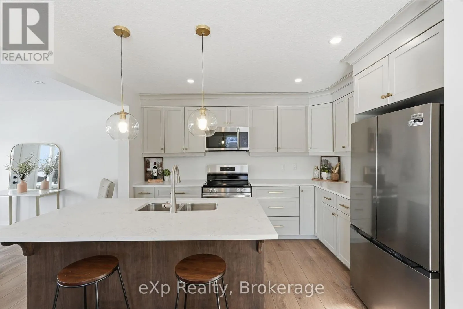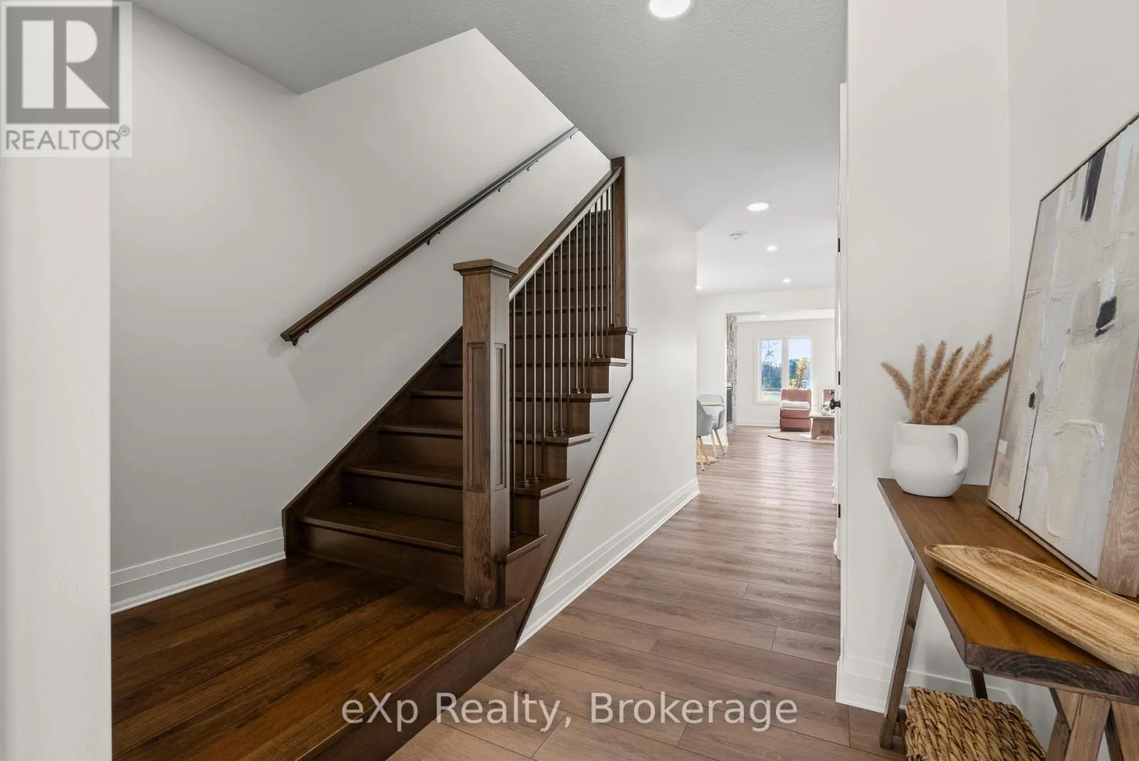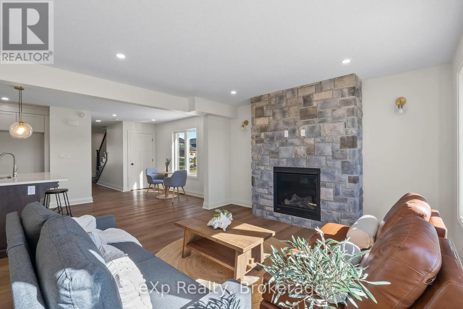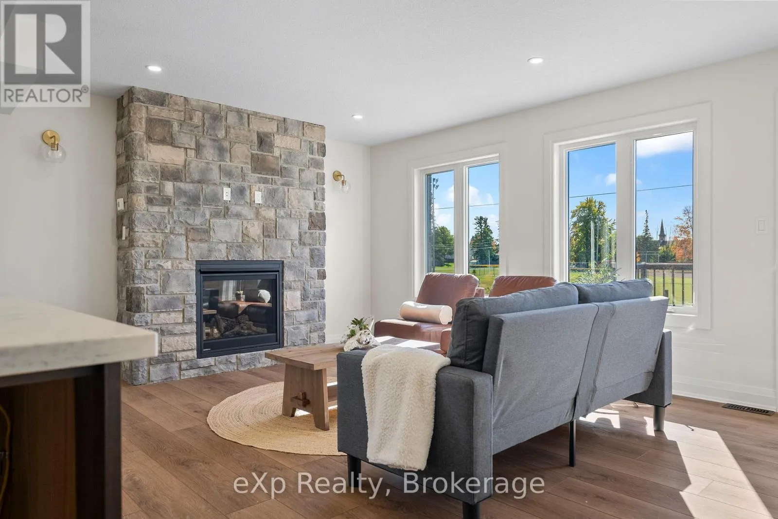 Cross Streets: King Street East. ** Directions: 544 Newfoundland St, Mount Forest. Baseball season is just around the corner, and here, the games are practically in your backyard! Tucked away on a quiet cul-de-sac in Mount Forest, this Marlanna Homes semi-detached new build offers a level of privacy that's hard to find. Connected only by the garage, which is finished in clean Trusscore, you'll enjoy convenient access to both the home and backyard while still feeling nicely set apart. One of the standout features of this property is the view from the back deck, perfect for catching local ball games and soaking in those evening sunsets! Inside, the main floor is open, bright, and thoughtfully designed. A stunning stone fireplace anchors the living room, adding warmth and character. The kitchen is a true highlight, custom-built by Barzotti with quartz countertops, a functional island for extra seating, with all appliances included. Luxury vinyl plank flooring runs seamlessly throughout, creating a cohesive and modern feel. Upstairs is ideal for family living, with three bedrooms and a dedicated laundry room, which means no more hauling baskets up and down stairs! The primary suite offers a peaceful retreat, complete with a walk-in closet and a deep soaker tub. Downstairs, the fully finished basement adds even more versatile living space-perfect for a rec room, home gym, or both, and includes an additional full bathroom. With immediate possession available, Tarion warranty coverage, and a 50-year shingle warranty, this home is truly move-in ready. Modern comfort, quiet surroundings, and no waiting, just unpack and enjoy! (id:27476)