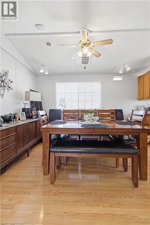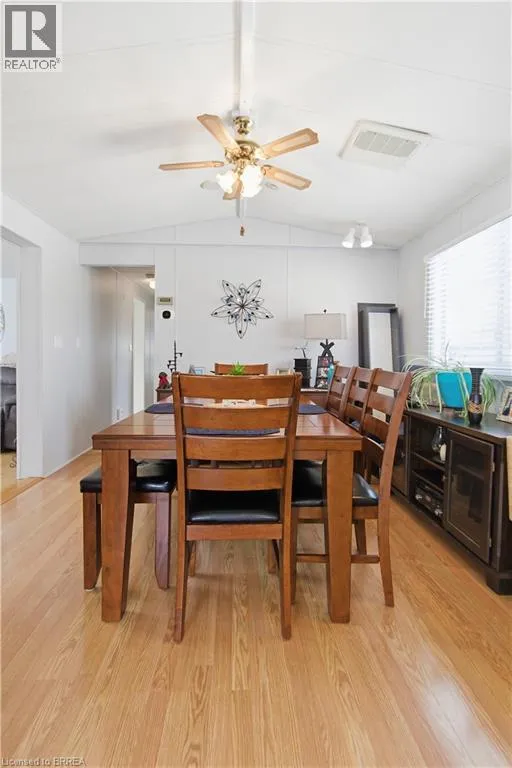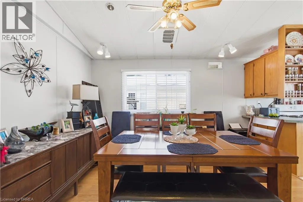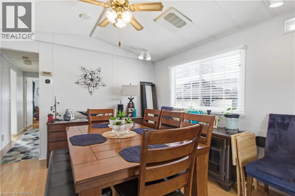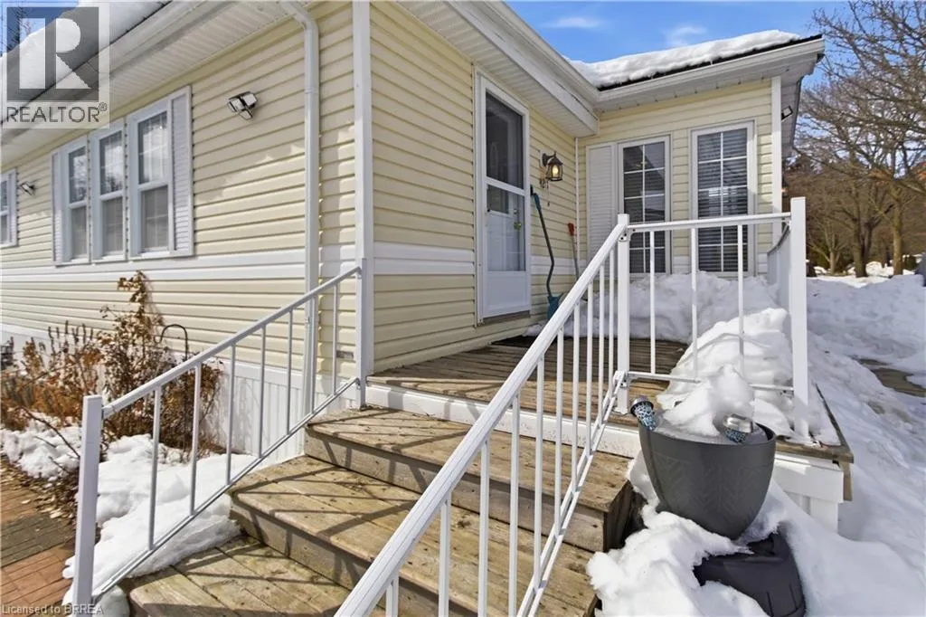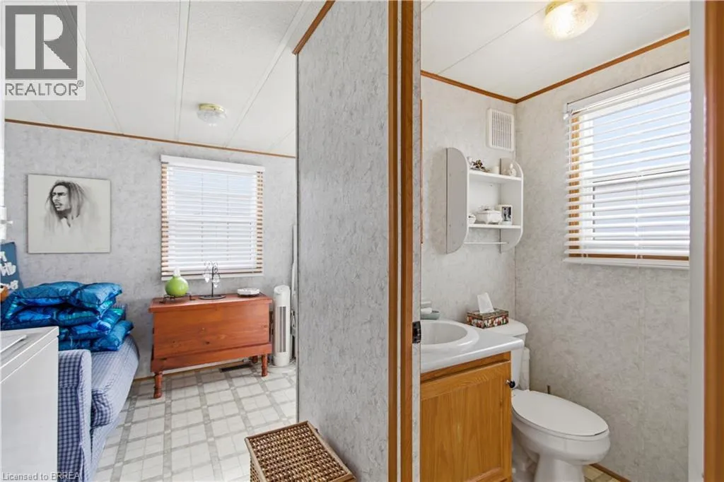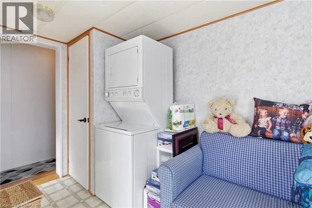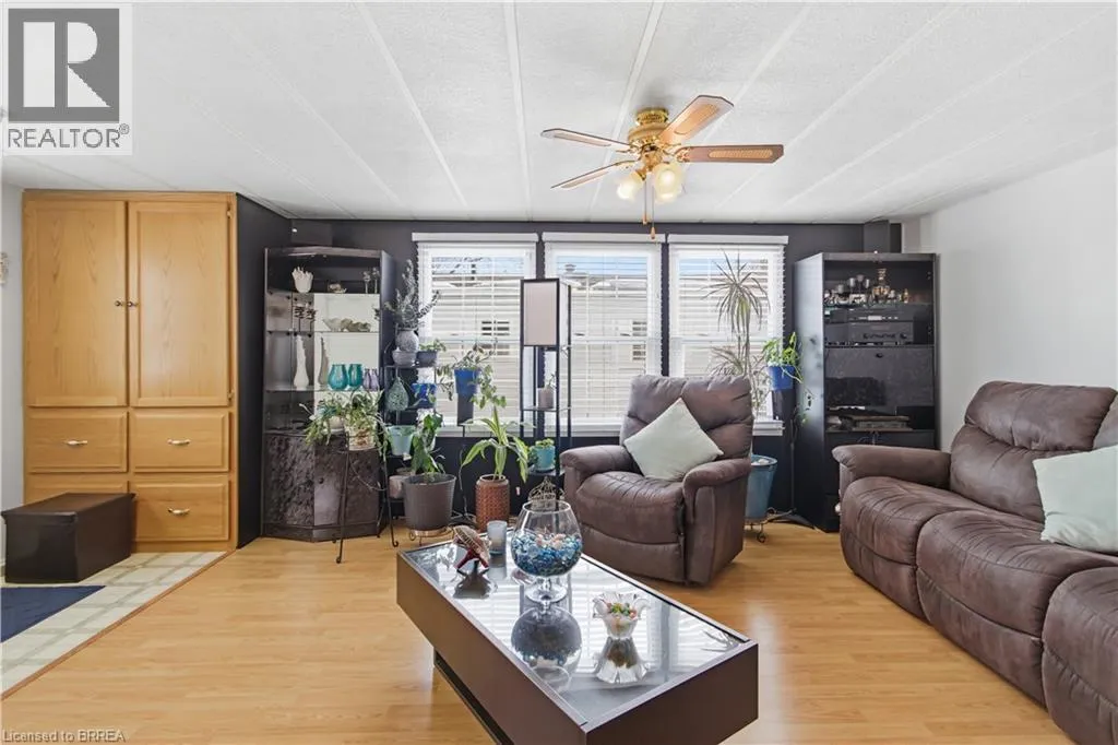 Turn left onto Havesumfun Road then turn right onto Pine Pass. Welcome to 428 Pine Pass, located in the desirable all-season section of Maple Leaf Acres, a vibrant land lease community just minutes from Belwood Lake. This spacious 2 bedroom + den/mudroom, 2 bathroom home offers plenty of room for comfortable everyday living and hosting family and friends. Step inside to a bright and inviting family room filled with natural light, creating a warm welcome as soon as you enter the home. The kitchen flows into a generous dining area, providing ample space for family meals and gatherings. The large primary bedroom features two windows that bring in plenty of sunshine along with excellent closet storage and is conveniently located just steps from a full 3-piece bathroom. The second bedroom offers flexibility for guests, a home office, or hobby space. The versatile mudroom/den includes a powder room, stacked laundry, and additional space that could accommodate a pull-out couch or seating area. A sliding door leads to a private backyard deck, perfect for relaxing outdoors. The yard features a lovely stone walkway and side garden ready to bloom this spring, along with a shed providing extra storage for gardening tools, a golf cart, or outdoor equipment. The home also features a paved driveway with parking for two vehicles. Recent updates include a steel roof (2021), new furnace (2025), and hot water heater (2025), offering peace of mind and making this a well-maintained home you can move into without worry. Enjoy everything Maple Leaf Acres has to offer, including multiple pools, recreational facilities, community events, and close proximity to the Belwood Lake boat launch and outdoor activities. A wonderful opportunity to enjoy relaxed, resort-style living in a welcoming community. (id:27476)