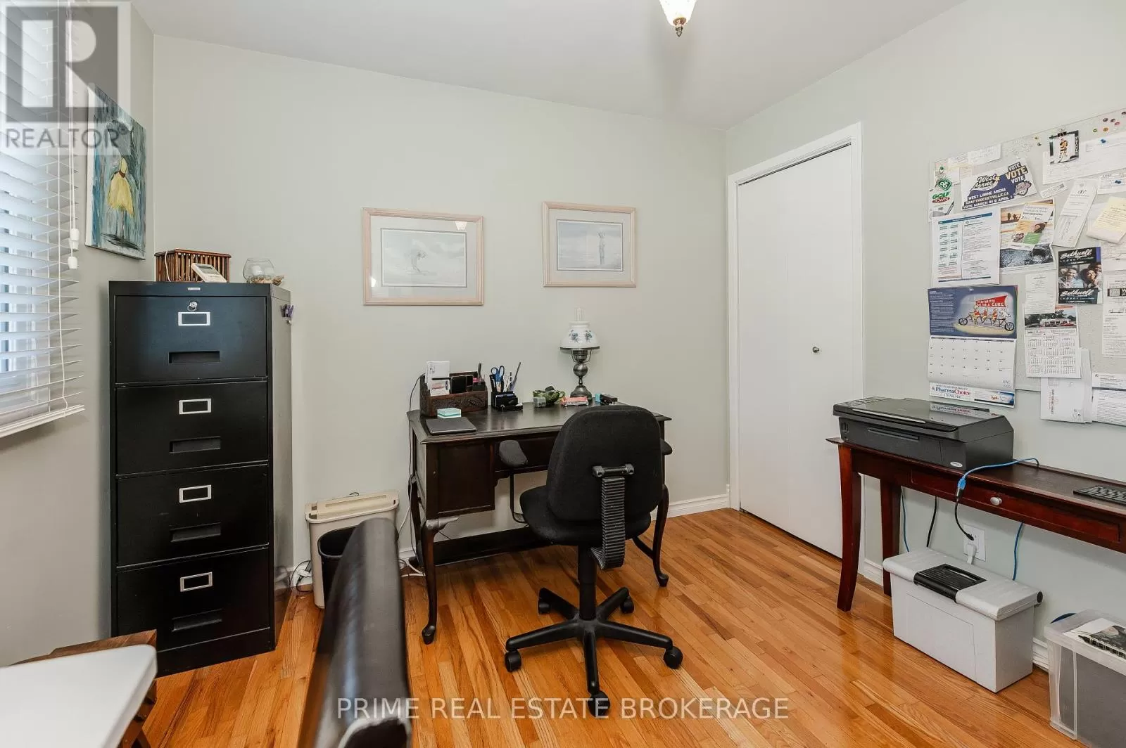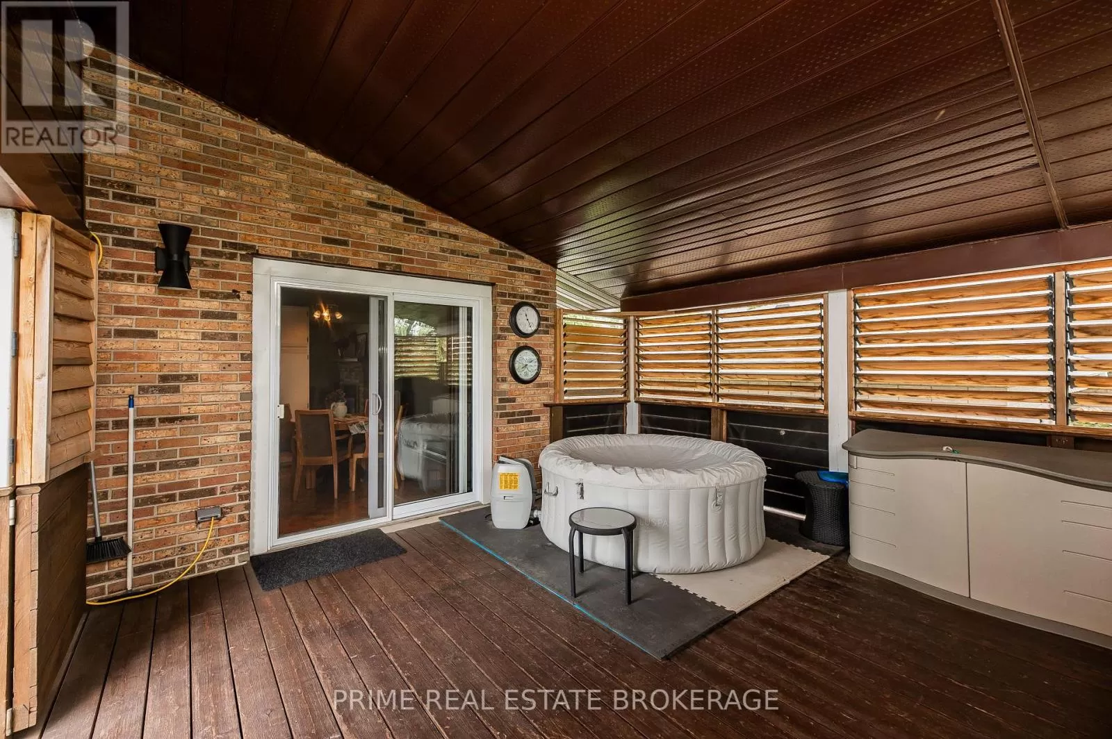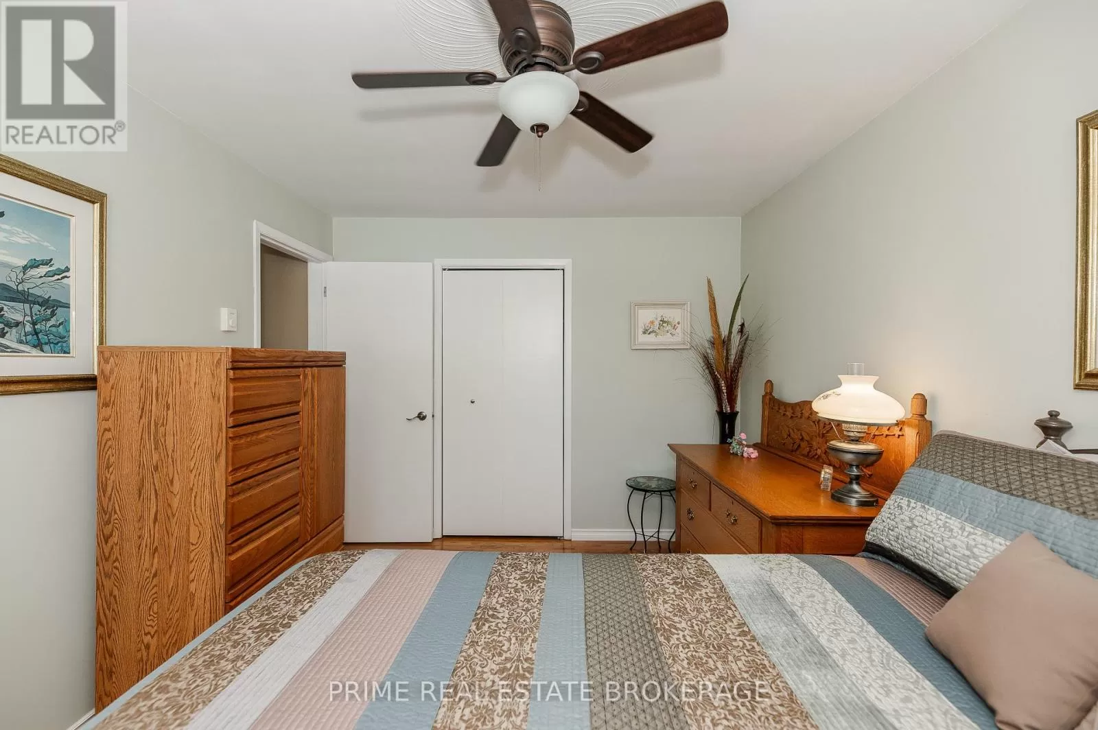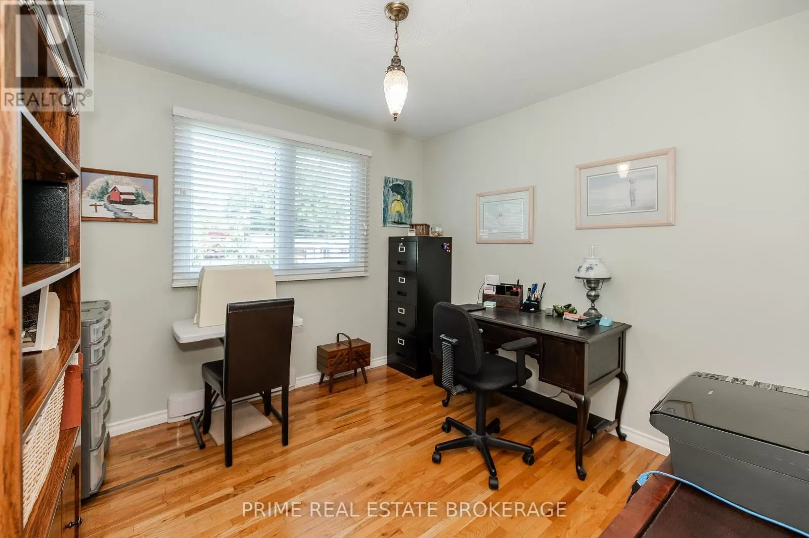 Ridge and Elm Street. Welcome to this meticulously cared-for side split, offering comfort, character, and convenience. Nestled on a beautifully landscaped lot, this 3-bedroom, 1.5-bathroom home features a private backyard oasis complete with a sparkling pool, a large deck for entertaining, and lush, well-maintained gardens. Step inside to an inviting entrance that leads to the main floor laundry and continues into a cozy and functional layout. The bright family room upstairs is the perfect place to unwind, complete with a warm gas fireplace. The quaint kitchen and dining area overlook the serene backyard, creating the perfect setting for everyday living and hosting.The lower level is fully finished, offering an additional rec room with another fireplace, a 2-piece bathroom, and plenty of storage space. Additional highlights include a single garage, ductless air conditioning for year-round comfort, and a true pride of ownership throughout. Ideally located close to schools, parks, grocery stores, and just minutes from Highway 401, this home is a fantastic choice for families, first-time buyers, or commuters alike. Don't miss your chance to own this lovely home in a great neighbourhood! (id:27476)