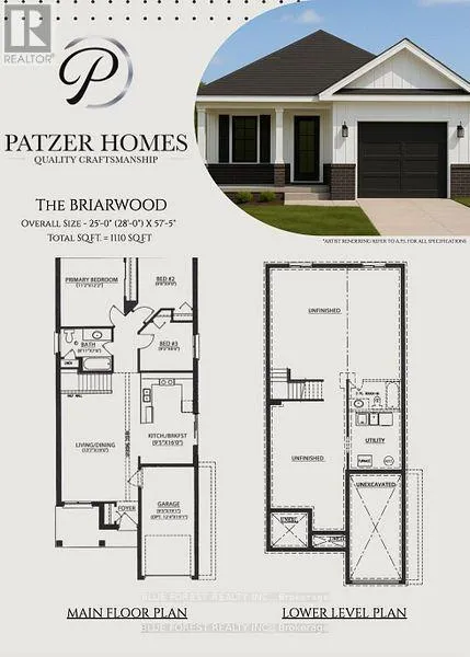 Cross Streets: QUEENS LINE. ** Directions: DEVELOPMENT AT END OF HARPER STREET. Welcome to The Briarwood by Patzer Homes a beautifully designed FREEHOLD new build offering stylish and efficient one-floor living. This thoughtfully laid-out bungalow features three bedrooms and a full bath, ideal for families, first-time buyers, or those looking to downsize without compromising comfort. Step into the open-concept living and dining area filled with natural light, perfect for relaxing or hosting guests. The kitchen offers plenty of counter space, a functional layout with direct access to the backyard, great for everyday living and entertaining. The primary bedroom is tucked at the back of the home for added privacy, while two additional bedrooms offer flexible space for kids, guests, or a home office. A modern full bathroom and linen closet are conveniently located nearby. Take advantage of the flexibility of this design with the option to have 2 bedrooms and an added en-suite bathroom. The lower level provides a full unfinished basement with rough-in for a future bathroom, laundry area, utility room, and plenty of space to add additional bedrooms while still having lots of storage space. A charming covered front porch adds curb appeal, and the attached garage with inside entry offers both convenience and extra storage space. The Briarwood is the perfect blend of comfort, style, and functionality in a compact and manageable footprint, ready for you to make it home. TO BE BUILT! Other lots and designs available. Price based on base lot, premiums extra. (id:27476)