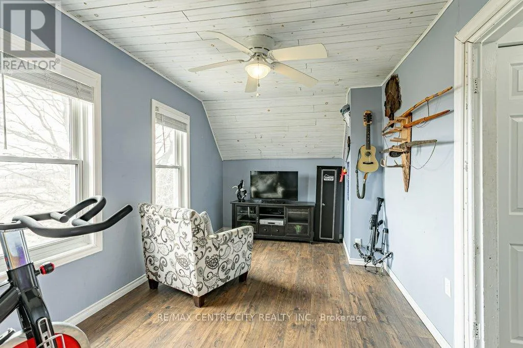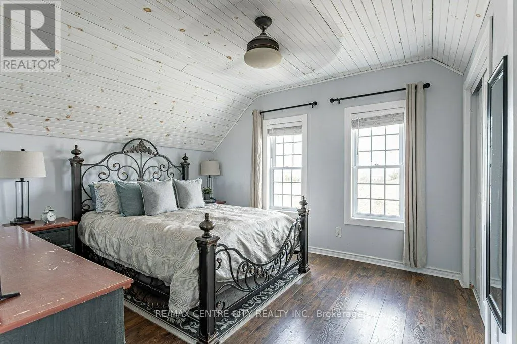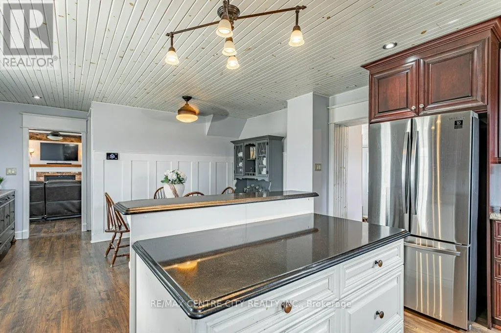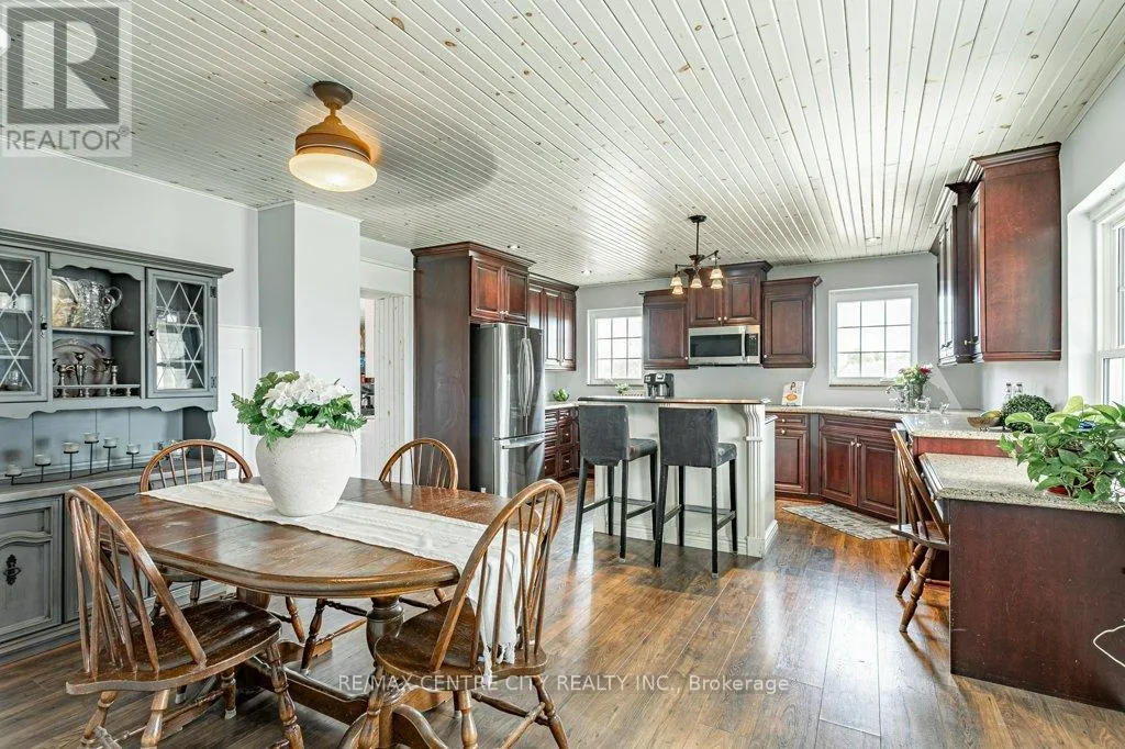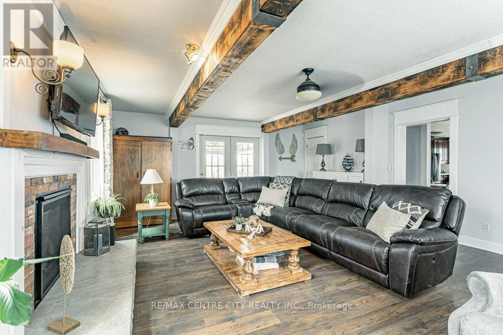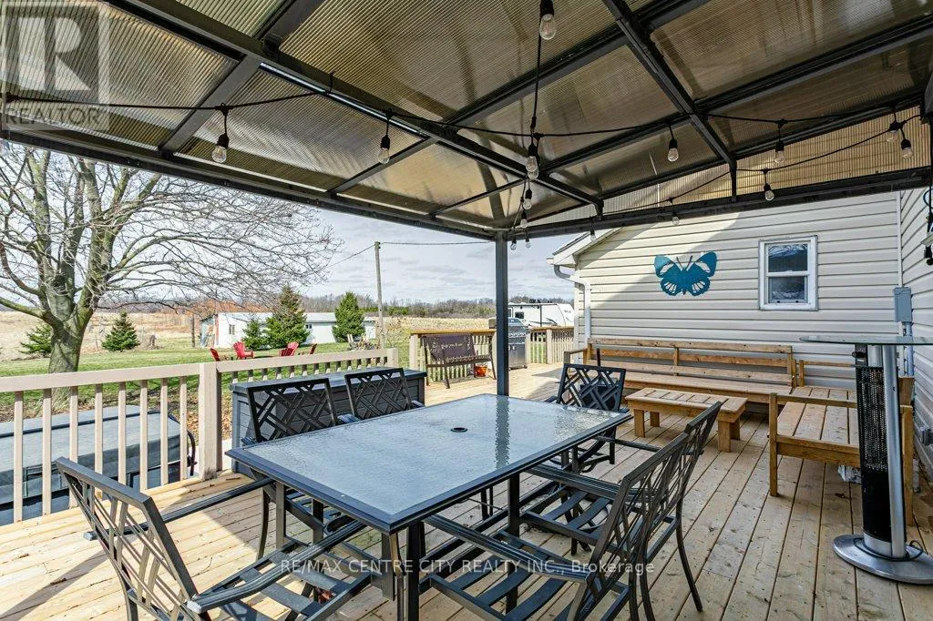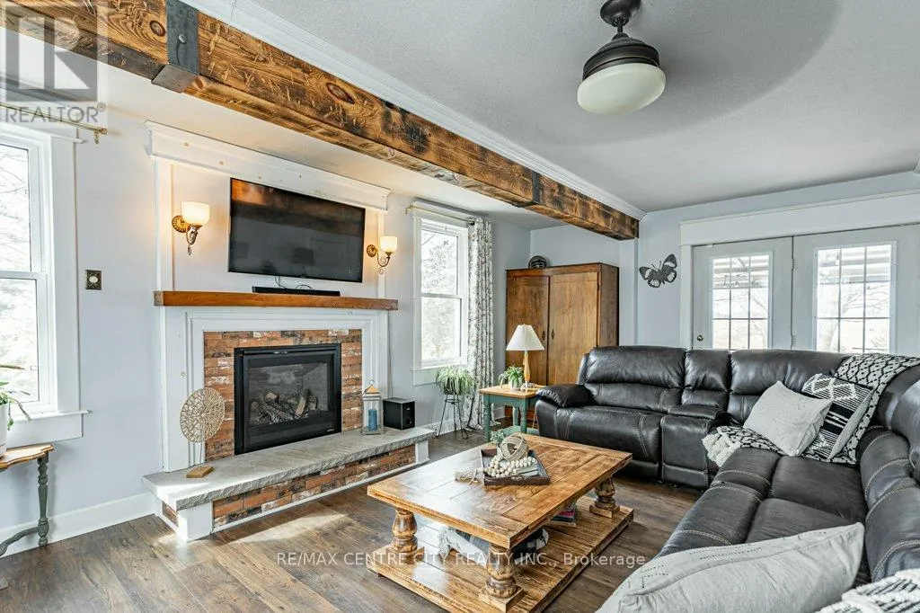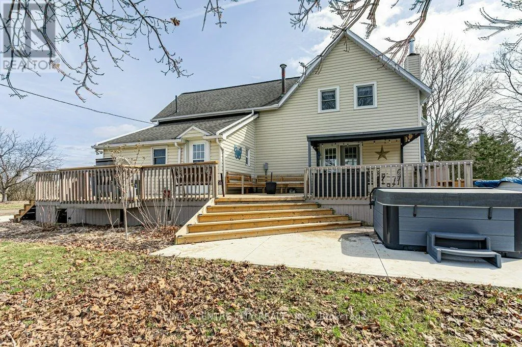Take Currie Rd north from Hwy 401 to Duff Line. Turn left on Duff, right on Dunborough Line, then left on Carroll Line. The first house on the right is the property. Charming two-storey farmhouse set on 1.9 acres, surrounded by peaceful farmland views. The main level features a welcoming eat-in kitchen, cozy family room with gas fireplace an beautiful wood beams, with patio doors to a large deck, great for entertaining. The main floor also includes a large mudroom/laundry room with a convenient 2pc bath. The second level is home to 3 generously sized bedrooms and a beautifully updated 4pc bath. Outside, enjoy a professionally landscaped yard along with a separate workshop - perfect for hobbies or extra storage. A perfect blend of rural tranquility and comfortable family living. Updates in the past 5 years include furnace, ac, water heater, windows, doors, sump pump and landscaping. (id:27476)