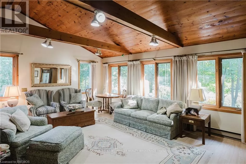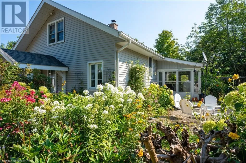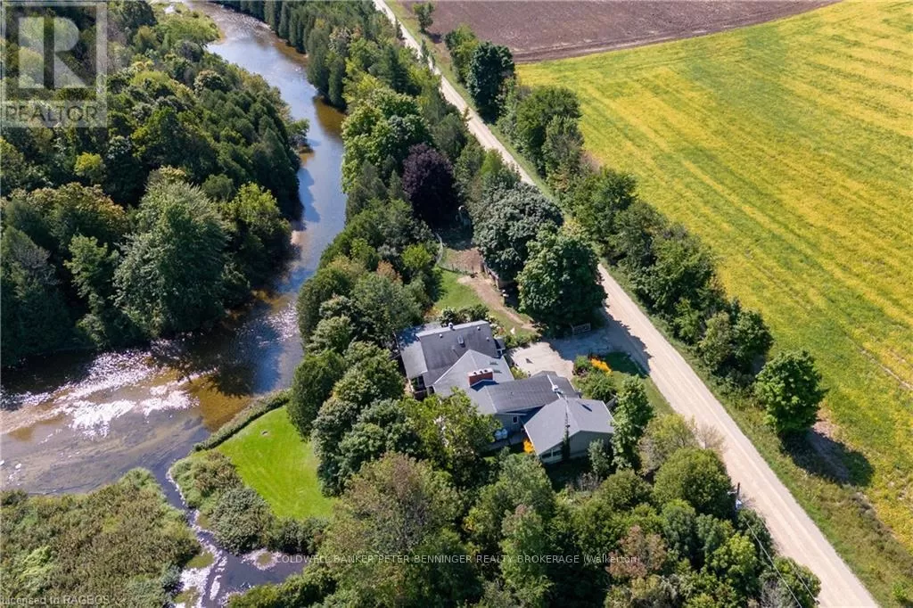From Highway 4 between Hanover and Durham go north on Allan Park Road, property between Concession 4 and Concession 6 on the East side of the road. Experience the perfect blend of nature and comfort with this exceptional 49 acre riverfront property. Nestled along the scenic riverbank of the Saugeen River, this is a true sanctuary for nature lovers and outdoor enthusiasts. Offering over 2km of walking trails and 2000 feet of river frontage, 3 ponds and a small horse paddock. The large 3 bedroom, 3 bathroom home boasts approximately 2650 sq ft of living space. The charming country kitchen is designed for both functionality and warmth, and is complimented with 2 skylights, formal living room with propane fireplace and a wood and beam vaulted ceiling , formal dining room with wood burning fireplace, wait...there's more, the large enclosed sunroom offers a breath taking view of the river, providing the perfect spot to unwind and connect with the outdoors or enjoy your morning coffee. Lush perennial gardens grace the landscape around the home. These gardens are a true labour of love, filled with vibrant flowers, shrubs and greenery that blooms year after year. Looking for a place to keep a horse? There is a 10' X 20' barn, coral area plus an extra outbuilding and 2 coveralls for hay/straw storage. Don't miss this chance to own a slice of paradise and embrace a lifestyle where everyday feels like a vacation. **EXTRAS** Additional Rooms - Laundry room 15'2 X 7'7, mud room 15'2 X 18'11, porch 6X10, Workshop 8'8 X 17'8 (id:27476)