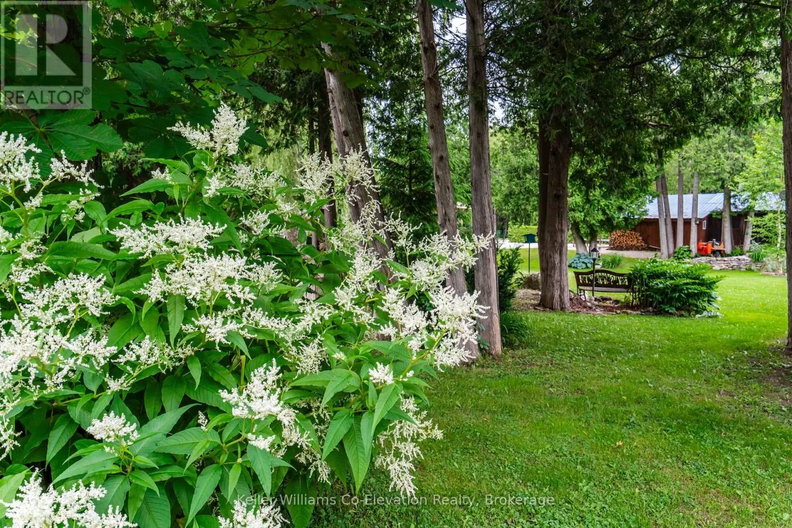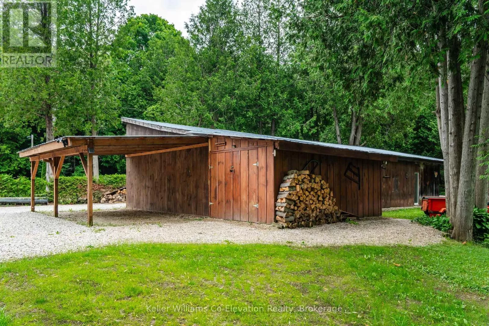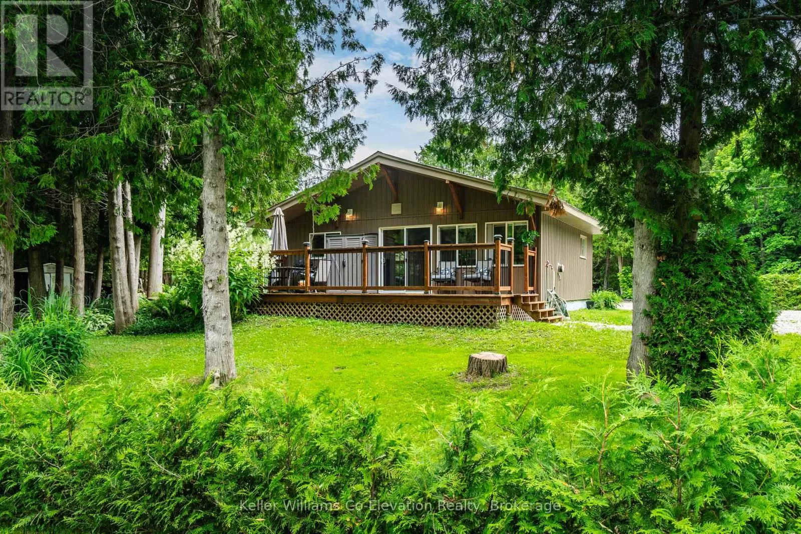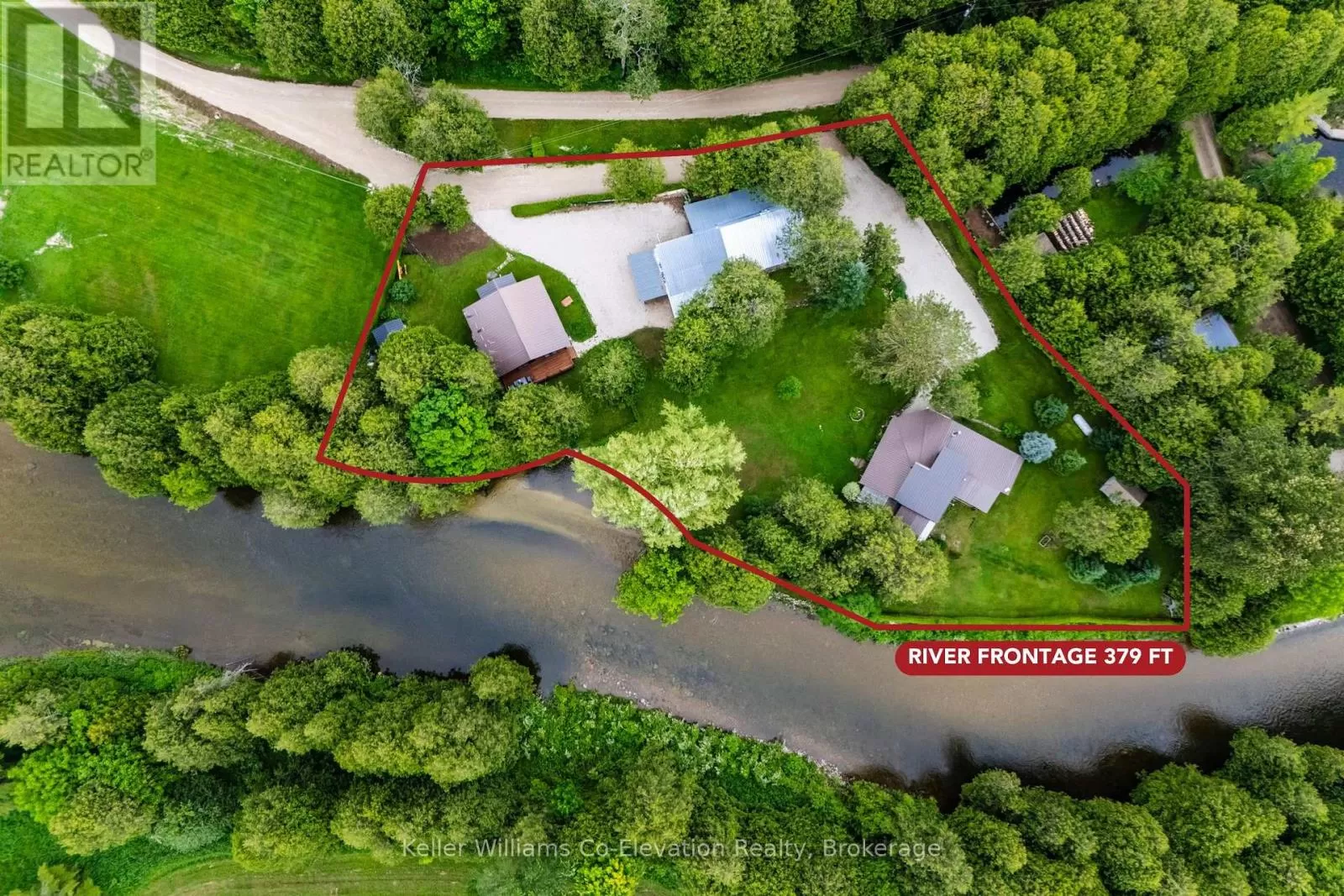 Cross Streets: Concession 4/Mulock Rd. ** Directions: Hwy to Grey Rd4 to Mulock Rd to Concession 4 N to Private Lane. Exceptional property with two homes and a detached garage nestled on 379 feet along the Saugeen River. A rare and wonderful opportunity to embrace the lifestyle you've always dreamed of. This immaculate, nearly one-acre private estate offers a unique chance for families to live together yet separately. From the moment you arrive, a set of stately iron gates welcomes you, offering both privacy and security. Behind them, lush green lawns, mature gardens, a variety of trees, including a selection of fruit-bearing trees create a peaceful natural setting perfect for outdoor living and family gatherings. Your days can be filled with swimming, canoeing, or kayaking, fishing, or drifting downstream on a tube in the clean fresh water with its soft sandy bottom. Whether you're hosting friends on the spacious decks or enjoying a quiet morning coffee while watching the river flow, every moment here is designed to nourish your soul. The main residence offers just under 1400 square feet of living space featuring a spacious layout, a large kitchen ideal for family meals, two comfortable bedrooms, and a generous deck for entertaining or relaxing under the stars. The second home offers nearly 700 square feet of living space with two large bedrooms, a full bathroom with a Cinderella toilet, a bright and open living area, kitchen with stone counter tops and a beautiful back porch with sweeping views of the river--an ideal retreat for guests, extended family, or even a rental opportunity. A detached garage and workshop provide ample space to store all your tools and toys, and all structures--including both homes and the shop--are finished with durable metal roofing for peace of mind and low maintenance. This is more than just a property--it's a multi-family compound, a private riverside sanctuary, and a lifestyle destination. Rarely does a place like this come available. Don't miss your chance to live the dream. (id:27476)