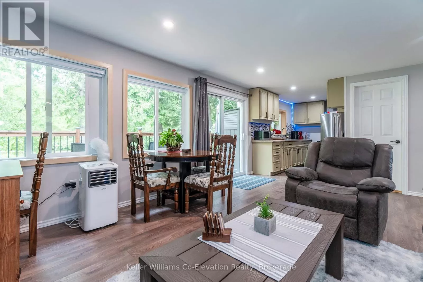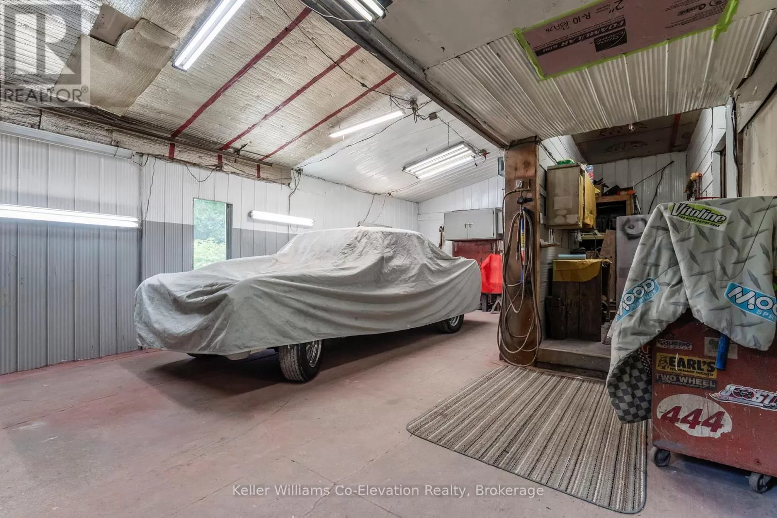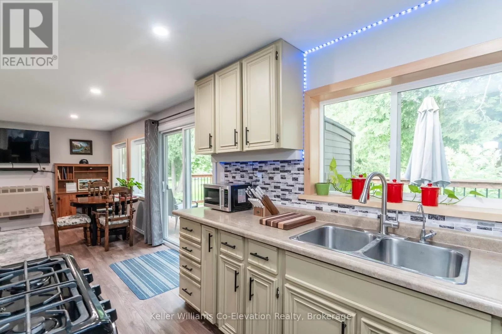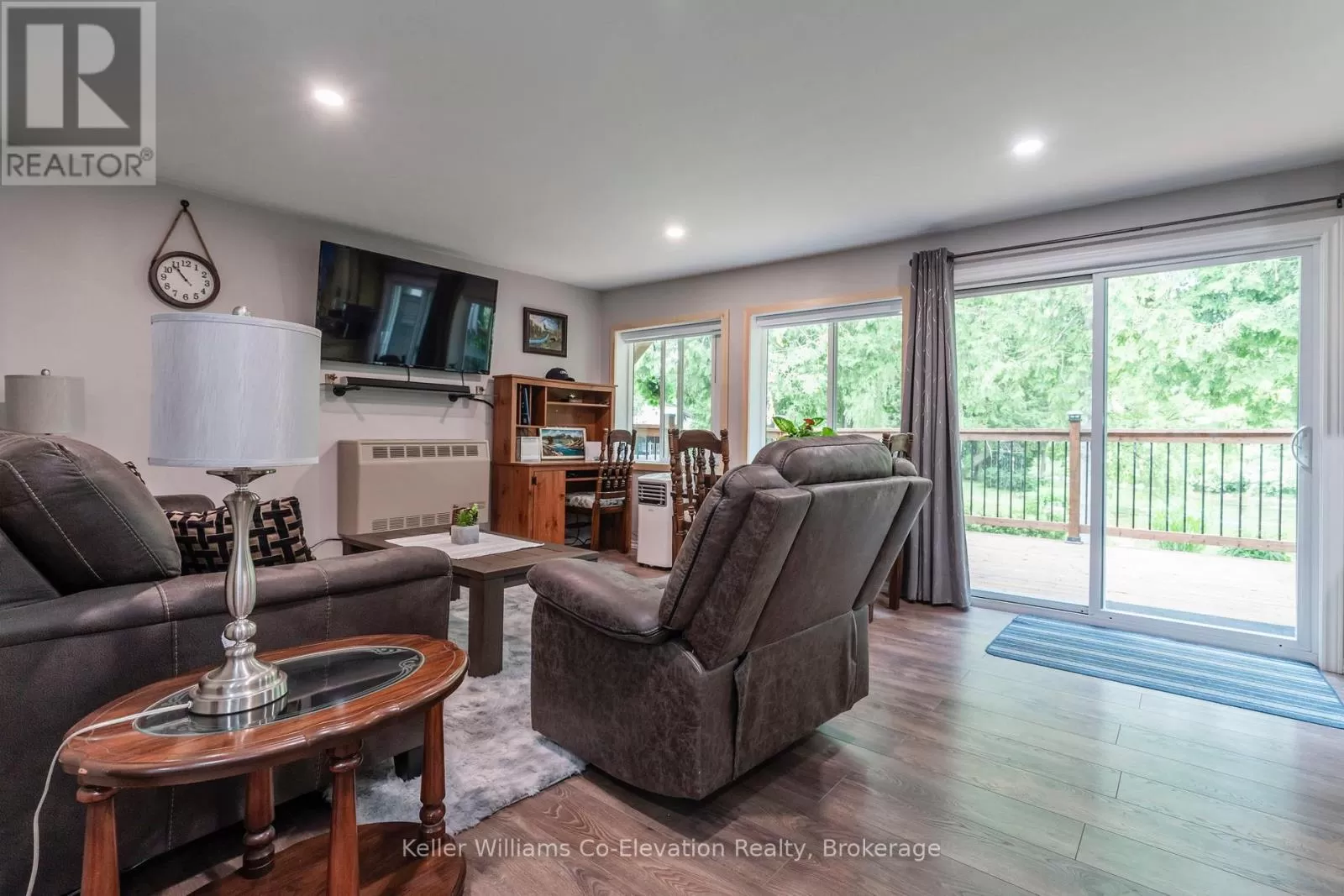 Cross Streets: Concession 4/Mulock Rd. ** Directions: Hwy to Grey Rd4 to Mulock Rd to Concession 4 N to Private Lane. Exceptional property with two homes and a detached garage nestled on 379 feet along the Saugeen River. A rare and wonderful opportunity to embrace the lifestyle you've always dreamed of. This immaculate, nearly one-acre private estate offers a unique chance for families to live together yet separately. From the moment you arrive, a set of stately iron gates welcomes you, offering both privacy and security. Behind them, lush green lawns, mature gardens, a variety of trees, including a selection of fruit-bearing trees create a peaceful natural setting perfect for outdoor living and family gatherings. Your days can be filled with swimming, canoeing, or kayaking, fishing, or drifting downstream on a tube in the clean fresh water with its soft sandy bottom. Whether you're hosting friends on the spacious decks or enjoying a quiet morning coffee while watching the river flow, every moment here is designed to nourish your soul. The main residence offers just under 1400 square feet of living space featuring a spacious layout, a large kitchen ideal for family meals, two comfortable bedrooms, and a generous deck for entertaining or relaxing under the stars. The second home offers nearly 700 square feet of living space with two large bedrooms, a full bathroom with a Cinderella toilet, a bright and open living area, kitchen with stone counter tops and a beautiful back porch with sweeping views of the river--an ideal retreat for guests, extended family, or even a rental opportunity. A detached garage and workshop provide ample space to store all your tools and toys, and all structures--including both homes and the shop--are finished with durable metal roofing for peace of mind and low maintenance. This is more than just a property--it's a multi-family compound, a private riverside sanctuary, and a lifestyle destination. Rarely does a place like this come available. Don't miss your chance to live the dream. (id:27476)