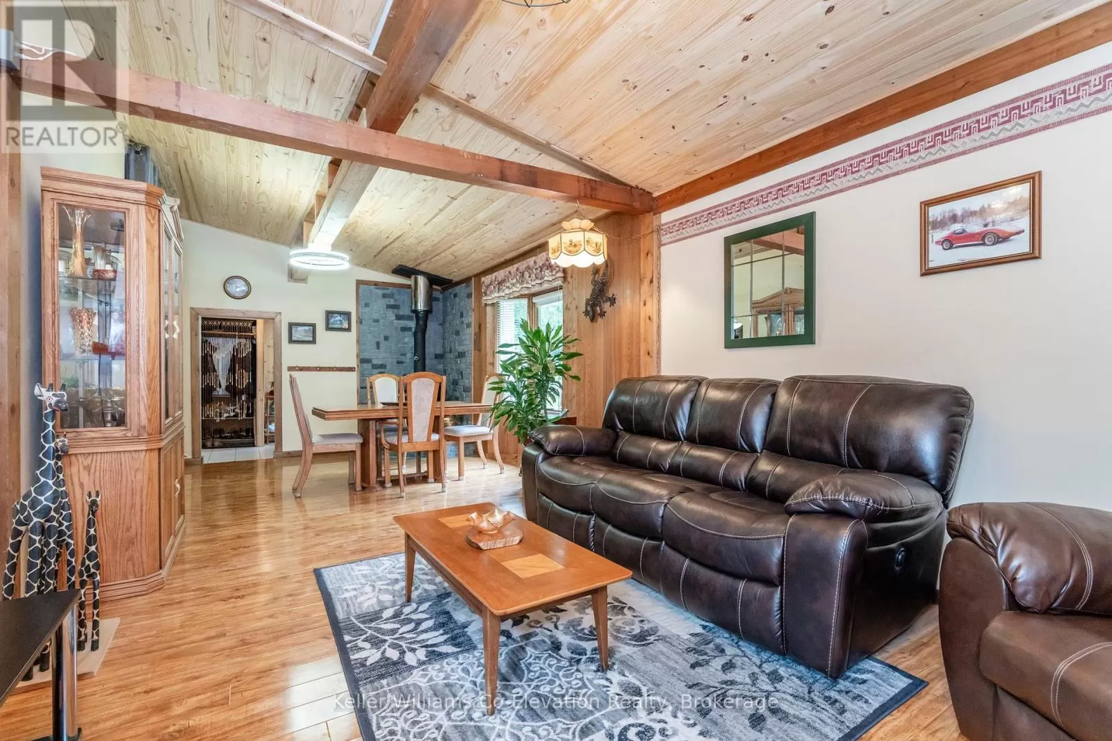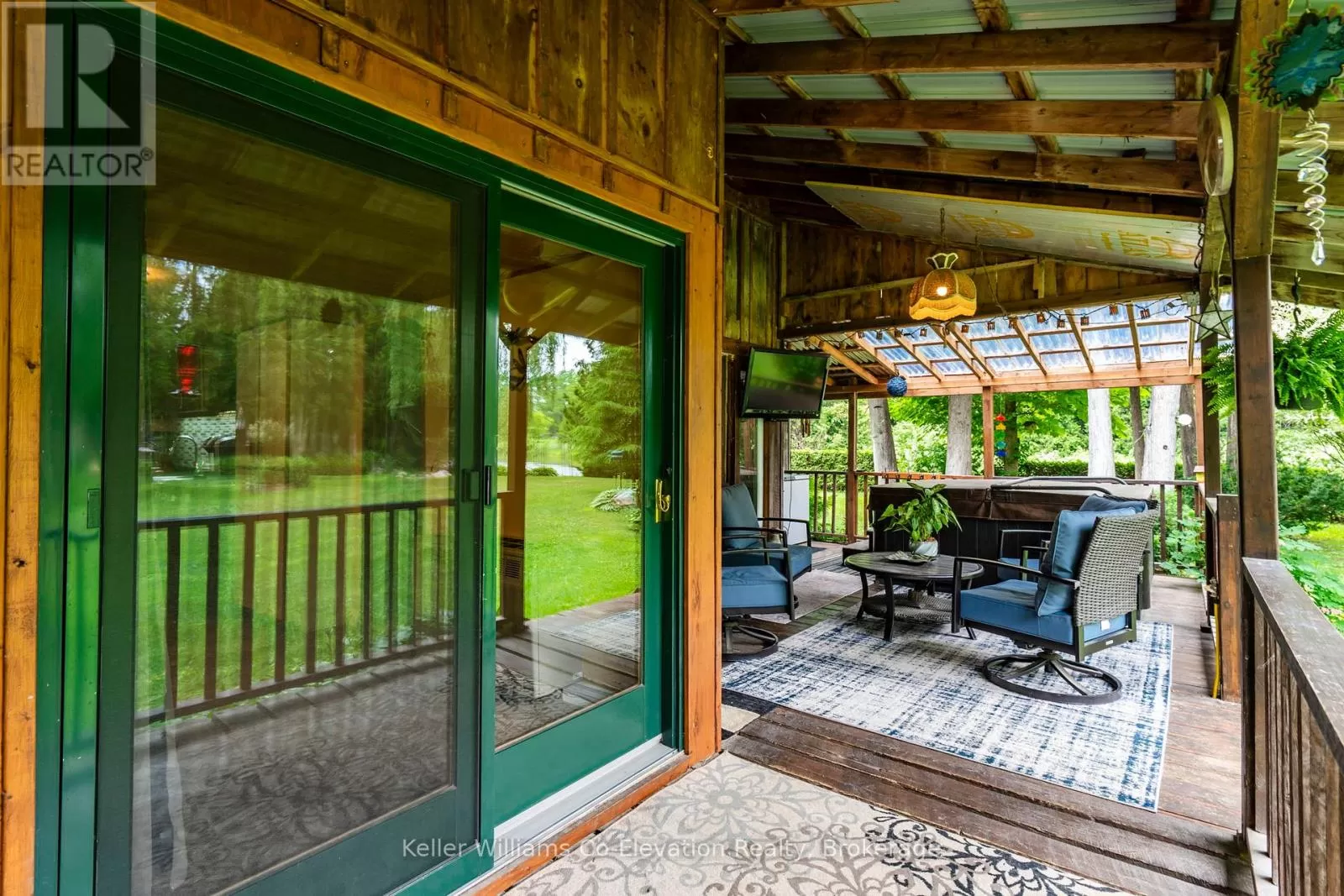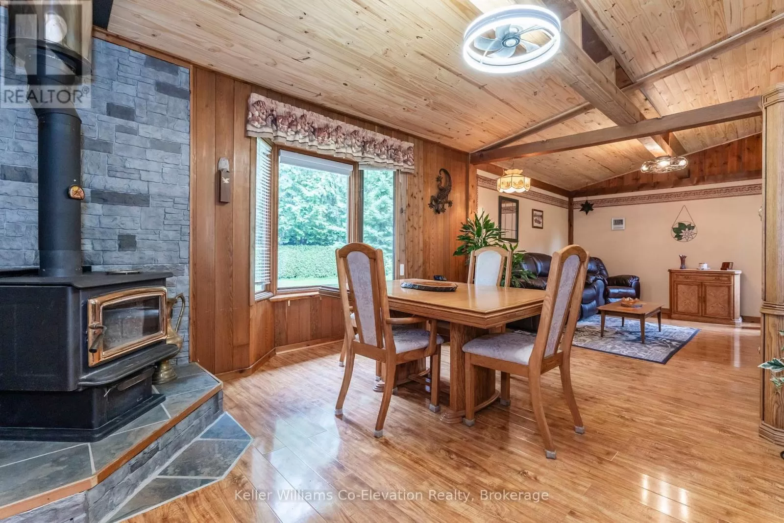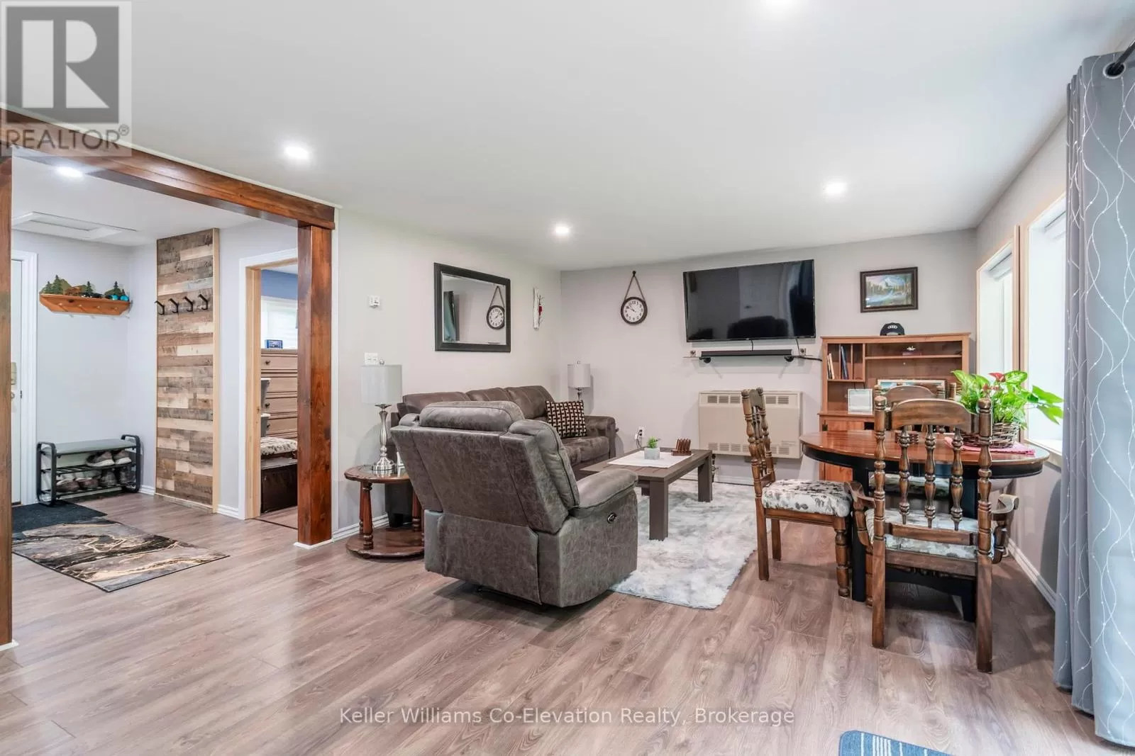 Cross Streets: Concession 4/Mulock Rd. ** Directions: Hwy to Grey Rd4 to Mulock Rd to Concession 4 N to Private Lane. Exceptional property with two homes and a detached garage nestled on 379 feet along the Saugeen River. A rare and wonderful opportunity to embrace the lifestyle you've always dreamed of. This immaculate, nearly one-acre private estate offers a unique chance for families to live together yet separately. From the moment you arrive, a set of stately iron gates welcomes you, offering both privacy and security. Behind them, lush green lawns, mature gardens, a variety of trees, including a selection of fruit-bearing trees create a peaceful natural setting perfect for outdoor living and family gatherings. Your days can be filled with swimming, canoeing, or kayaking, fishing, or drifting downstream on a tube in the clean fresh water with its soft sandy bottom. Whether you're hosting friends on the spacious decks or enjoying a quiet morning coffee while watching the river flow, every moment here is designed to nourish your soul. The main residence offers just under 1400 square feet of living space featuring a spacious layout, a large kitchen ideal for family meals, two comfortable bedrooms, and a generous deck for entertaining or relaxing under the stars. The second home offers nearly 700 square feet of living space with two large bedrooms, a full bathroom with a Cinderella toilet, a bright and open living area, kitchen with stone counter tops and a beautiful back porch with sweeping views of the river--an ideal retreat for guests, extended family, or even a rental opportunity. A detached garage and workshop provide ample space to store all your tools and toys, and all structures--including both homes and the shop--are finished with durable metal roofing for peace of mind and low maintenance. This is more than just a property--it's a multi-family compound, a private riverside sanctuary, and a lifestyle destination. Rarely does a place like this come available. Don't miss your chance to live the dream. (id:27476)
