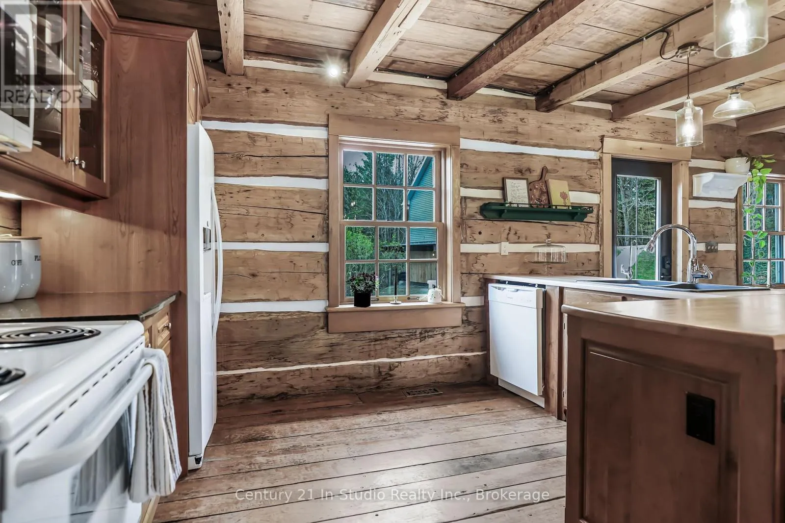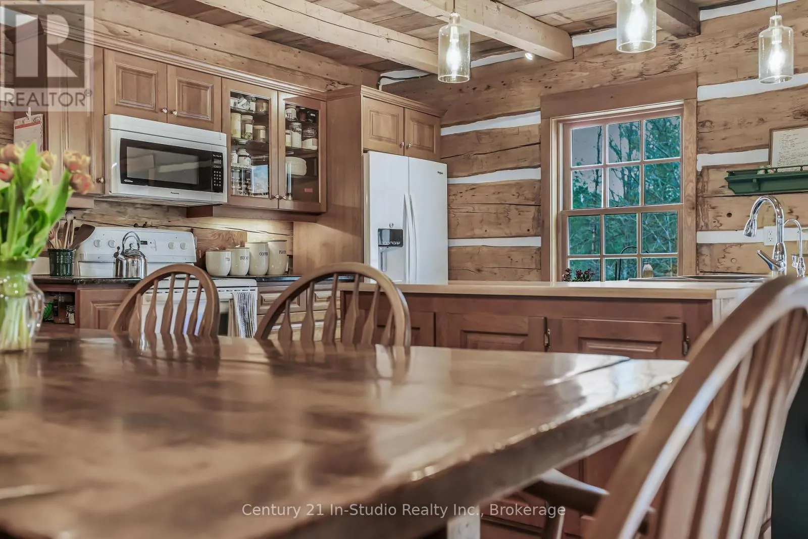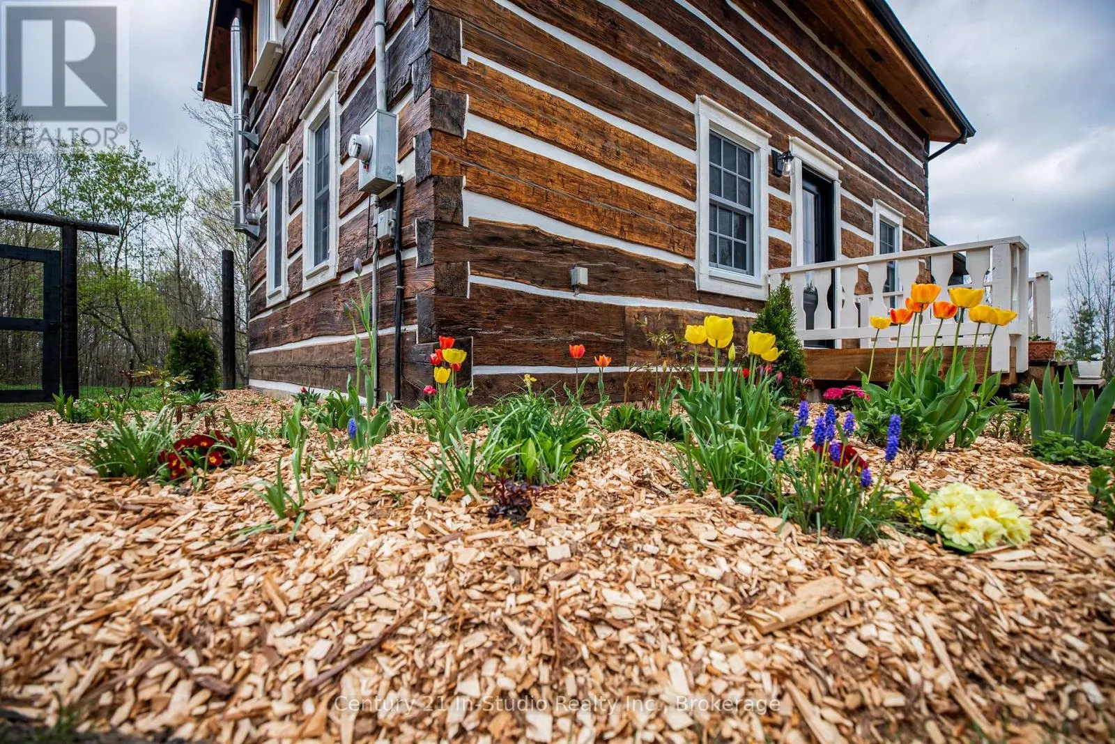 Cross Streets: Allan Park Rd & COncession Rd 2 SDR. ** Directions: West on Hwy 4 from Durham to Hanover, South on Allan Park Rd., Turn East (Left) on Conc RD 2 SDR, Property located on the North side. Tucked away on 16.1 peaceful acres near the 450-acre Allan Park Conservation Area, this updated log home with a modern addition combines rustic charm with contemporary comfort.The open-concept layout features 3+1 bedrooms and 2 full bathrooms, perfect for daily living or weekend getaways. The living space is highlighted by a cozy pellet stove (2024) and a renovated kitchen, complemented by new lighting, air conditioning, and fresh paint. The basement offers laundry, cold storage, and extra room for hobbies or guests. Recent updates include a pine-tarred exterior, new soffits, fascia, gables (2024), a new front door and porch (2024), and a spacious back deck. The home has also been fitted with a new pressure tank, UV and RO water systems, and a soft-water spigot. For outdoor enthusiasts, the property has extensive ATV and walking trails for hunting, mushroom foraging, and gardening. A fenced backyard (2024) is perfect for pets and children, while a 16' x 4' raised vegetable bed awaits your planting. The nearby Allan Park Conservation Area offers pond access and multi-use trails.The detached 2-car garage features a heated, insulated loft (2024), ideal for a studio or gym, and a concrete shed provides additional storage.Approximately 14 acres are enrolled in the Managed Forest Tax Incentive Program (MFTIP), reducing property taxes by approximately 40%. Conveniently located just 10 minutes from Durham or Hanover, this home offers a unique opportunity to enjoy nature without sacrificing modern comforts. Schedule a showing today! (id:27476)