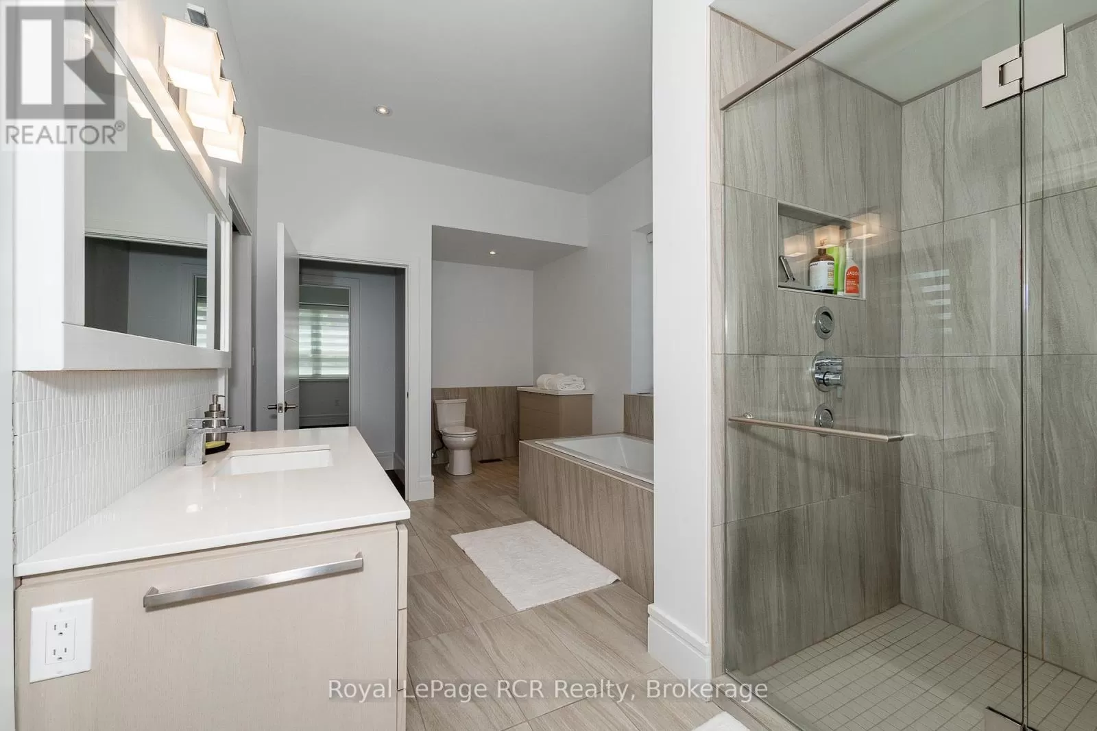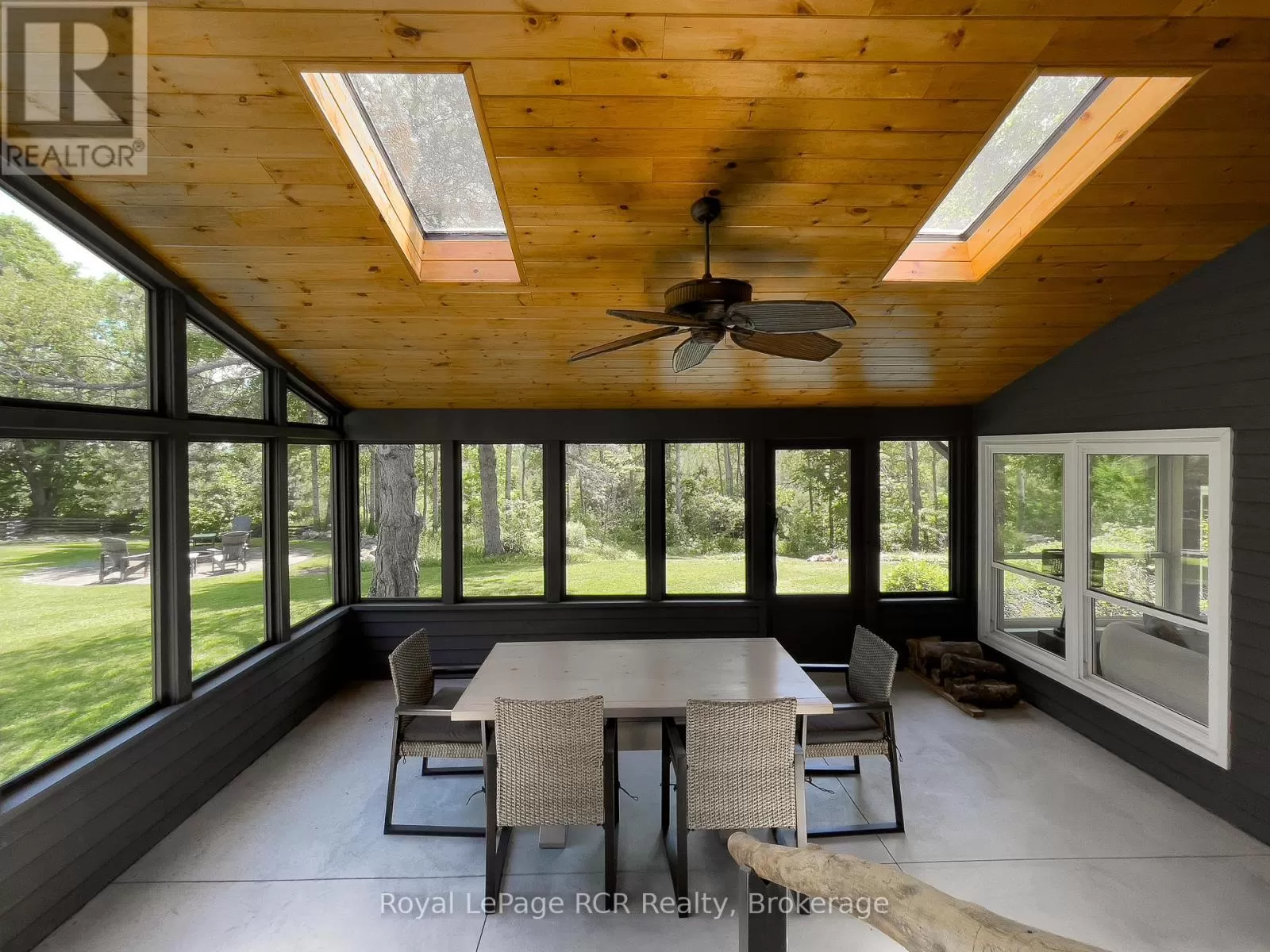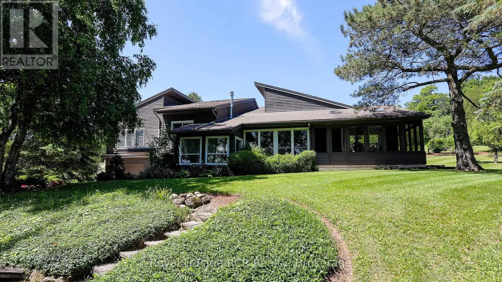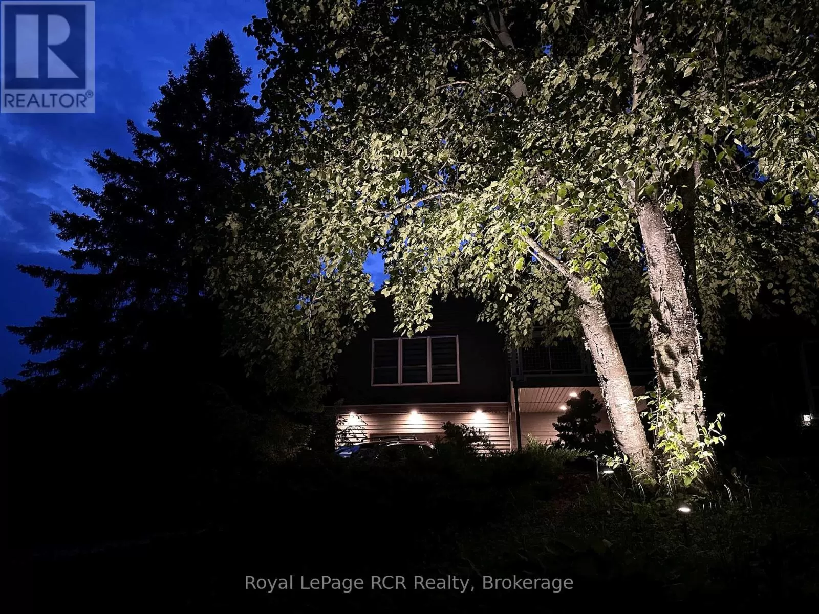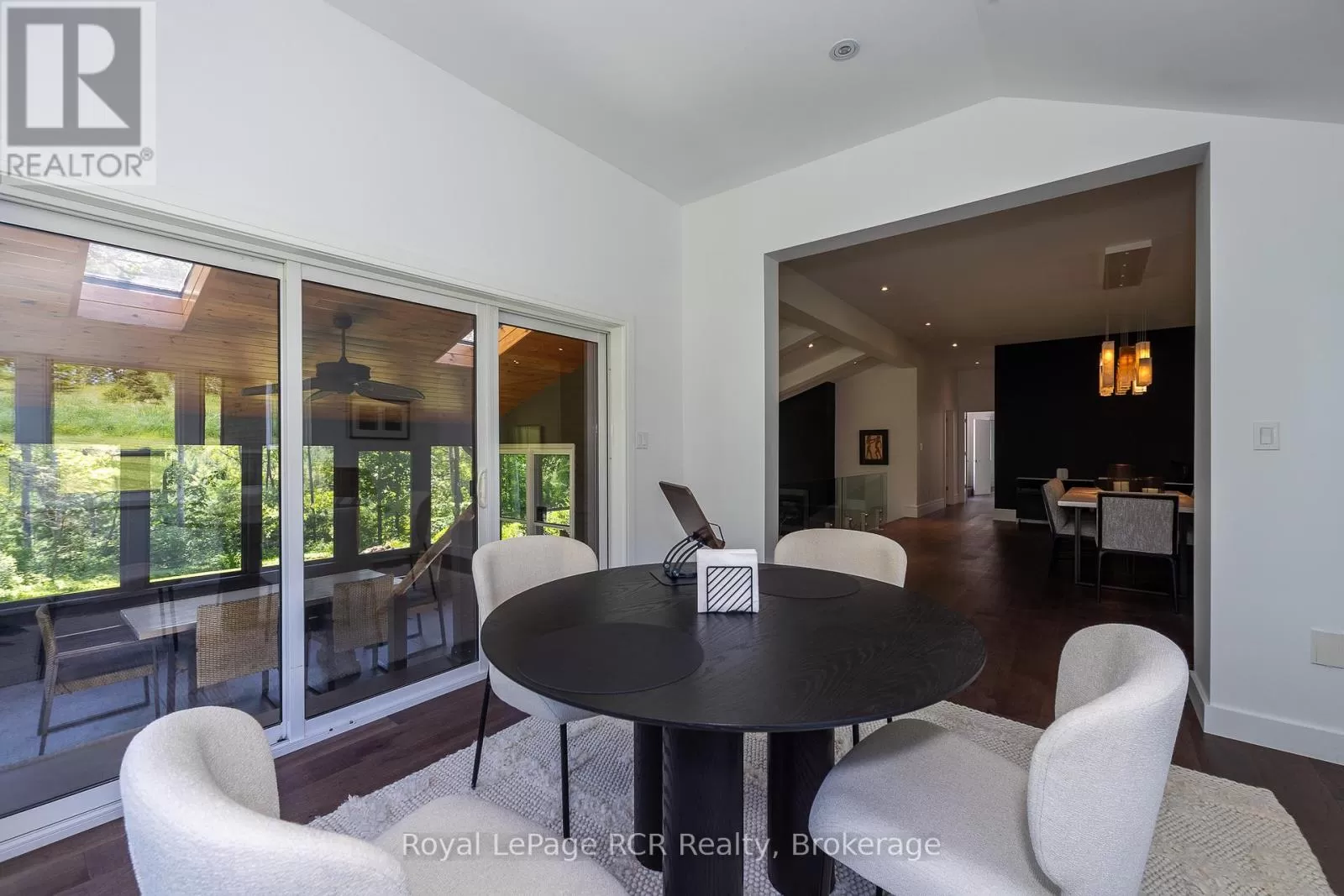 Grey Rd 12 between Traverston and Townsend Lake Rd Luxurious contemporary home set on 50 scenic acres of mixed forest, meadows, and manicured outdoor living spaces. The main level features a sunken living room with gas fireplace, open dining area, and a chef's kitchen with granite countertops, large island, abundant storage, and walk-out to a deck with natural gas BBQ. Adjacent are a bright dinette and screened porch for three-season outdoor dining and entertaining. The primary suite includes dual walk-through closets with built-in cabinetry and an ensuite bath with soaker tub, glass shower, and in-floor heating. Three additional bedrooms, including one with a sitting room and balcony, offer ample space for family and guests. The finished lower level provides a large family room, three-piece bath, laundry, storage rooms, and an attached garage with EV charging outlet and garden entrance to a two-bay drive shed. Modern features include ICF construction, air exchanger, UV water treatment, whole-home surge protection, motorized window shades, Starlink internet, and smart home systems. Enjoy over 4 km of private trails through hardwood forest, regenerating meadows, and orchard trees with sweeping countryside views. Conveniently located on a paved road with natural gas, minutes from Markdale shopping, dining, and hospital, and close to organic farms, the Bruce Trail, skiing, golf, conservation lands, and lakes, this is a four-season retreat in the heart of West Grey. (id:27476)
