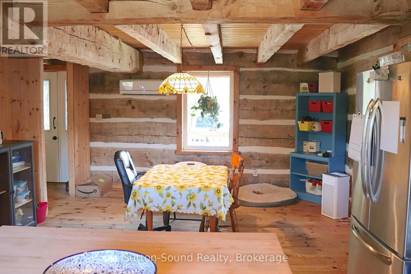 Cross Streets: Side Rd 9 WGR and Hwy 6. ** Directions: From Hwy 6, turn west on Side Rd 9, follow to Concession 2 WGR and turn south, follow to property on east side of the road, #234491. Welcome to your peaceful country retreat! This charming 3-bedroom, 3-bathroom log home sits on just under 2 acres of tranquility, offering the perfect balance of rustic charm and modern amenities. Whether you're enjoying the warmth of the woodstove on cozy evenings or relaxing on the covered porch, this home provides a serene escape from the hustle and bustle of everyday life. Step inside to find an inviting, open-concept living space exposed beam wood finishes, large windows that flood the rooms with light, and a spacious kitchen perfect for entertaining. With three generous bedrooms, including a master suite with a semi-private bath and its own balcony, perfect for that morning coffee or an evening sunset over the trees. Outside, the property continues to impress with a detached garage, providing plenty of space for vehicles, tools, and storage. The expansive grounds are ideal for outdoor activities, gardening, or simply soaking in the beauty of your surroundings. One of the standout features of this property is the income-producing solar system, making it not only eco-friendly but also more than offsets energy costs. If you're looking for a peaceful country setting with modern comforts and the added benefit of energy efficiency, this log home is a must-see!. (id:27476)