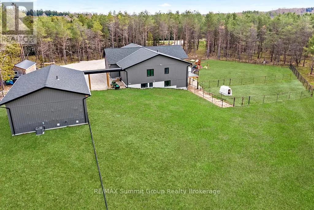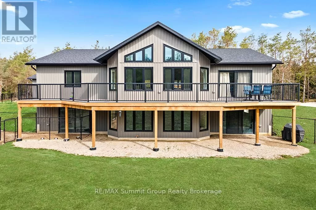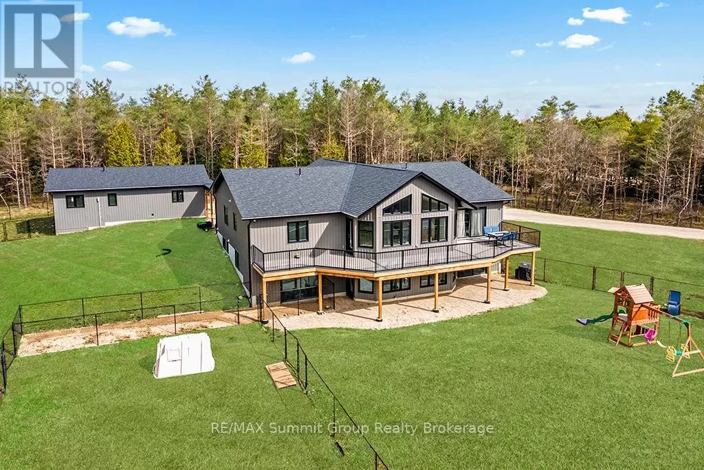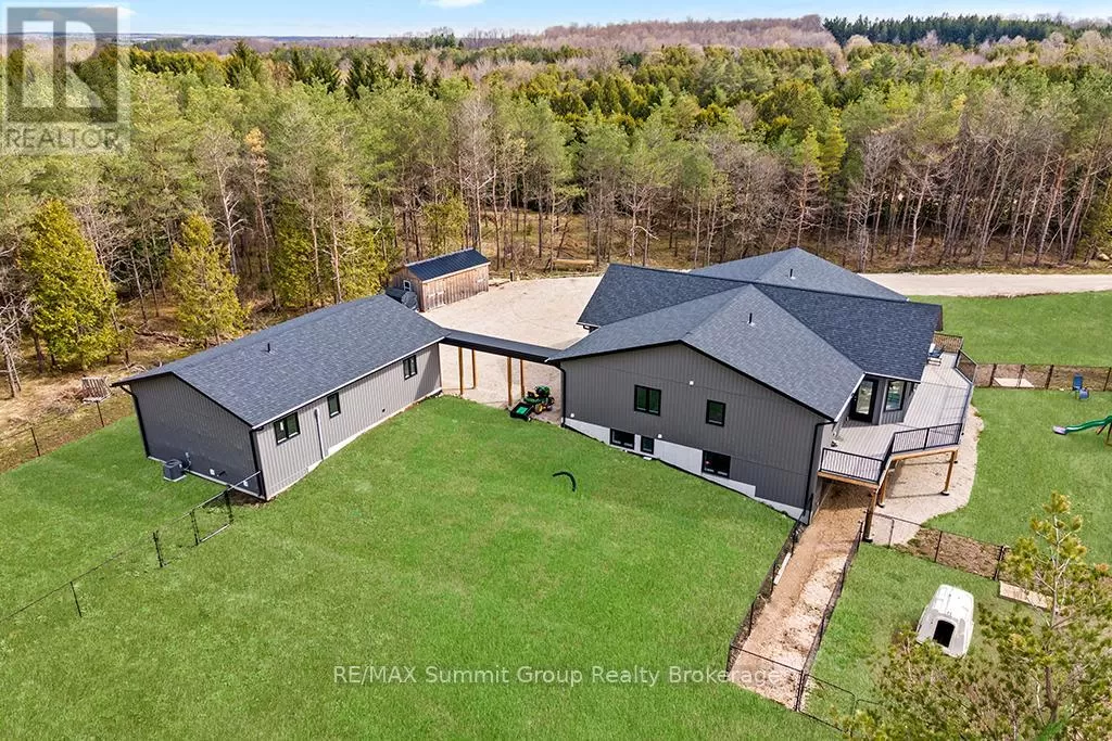 Cross Streets: West Back Line & Hamilton Lane. ** Directions: From Markdale go west on Grey 12, left/south onto West Back Line, right/west onto Hamilton Lane, fire # 615690 on the right. Follow driveway to the property on the left. Multi-generational living doesn't mean you have to live with each other. This property, on almost 5 acres, gives you two separate living spaces while still keeping everyone connected. The main house is bright and welcoming with large windows and a cathedral ceiling that fills the rooms with natural light. It includes five bedrooms, three full bathrooms, and a finished walkout lower level with a huge rec room, kitchenette/wet bar, four walkouts to the yard, and rough-ins for a fridge, stove, and shower. It's a versatile space, perfect for entertaining, hobbies, or giving teens and guests their own retreat. The kitchen was designed for gathering, with a 15-foot island, porcelain slab counters, deep drawers, a built-in spice rack, and a cooktop with downdraft ventilation. It flows easily into the dining and living areas, making family meals or get-togethers simple. From the primary bedroom, step directly onto the 55-foot deck that overlooks the property, while a spacious mudroom/laundry combo keeps day-to-day living organized. The fully equipped secondary unit is ideal for parents or grandparents, independent adult kids, a home office, or even rental income. Outside, you'll find a private setting that still keeps you close to everything, just minutes from Markdale and a short drive to Beaver Valley Ski Club. There's over half an acre cleared, multiple fenced areas for pets or play, and wide gates for access. Modern features like geothermal heating and cooling, ethernet hookups in the gym and office with excellent internet, and a commercial-grade hot water pressure tank add comfort and peace of mind. This property makes it possible to share life with family while still enjoying your own space. It's the perfect balance of connection and independence. (id:27476)