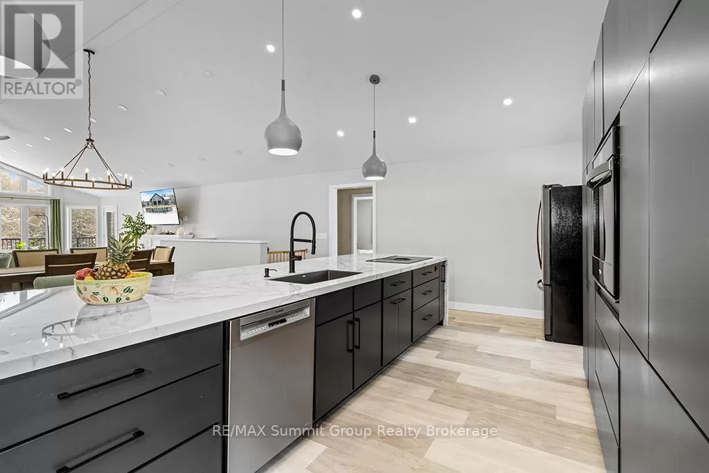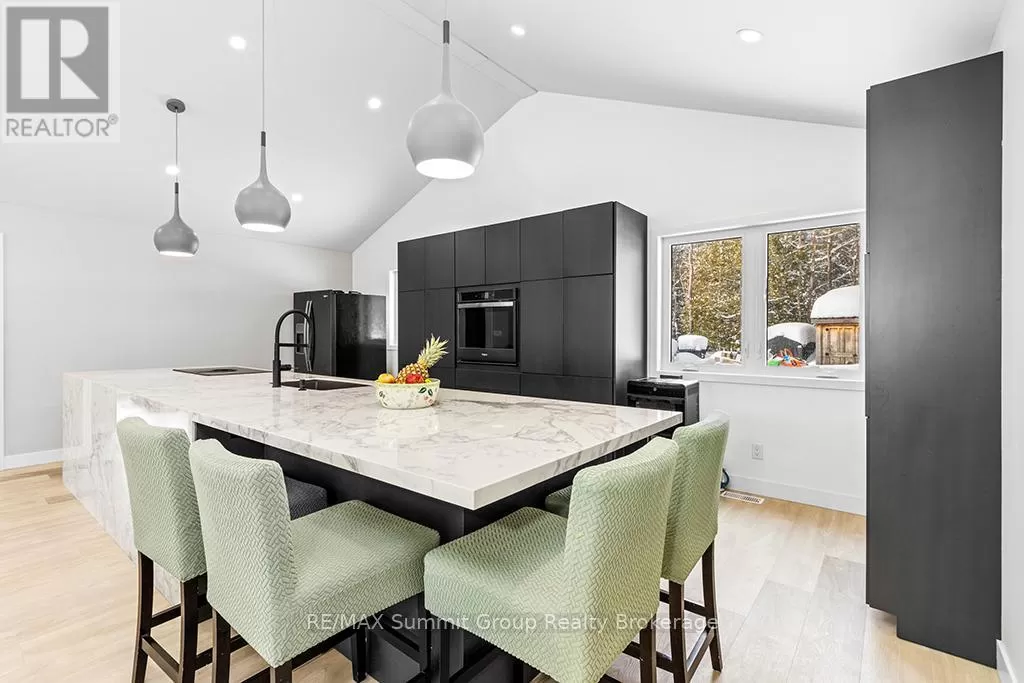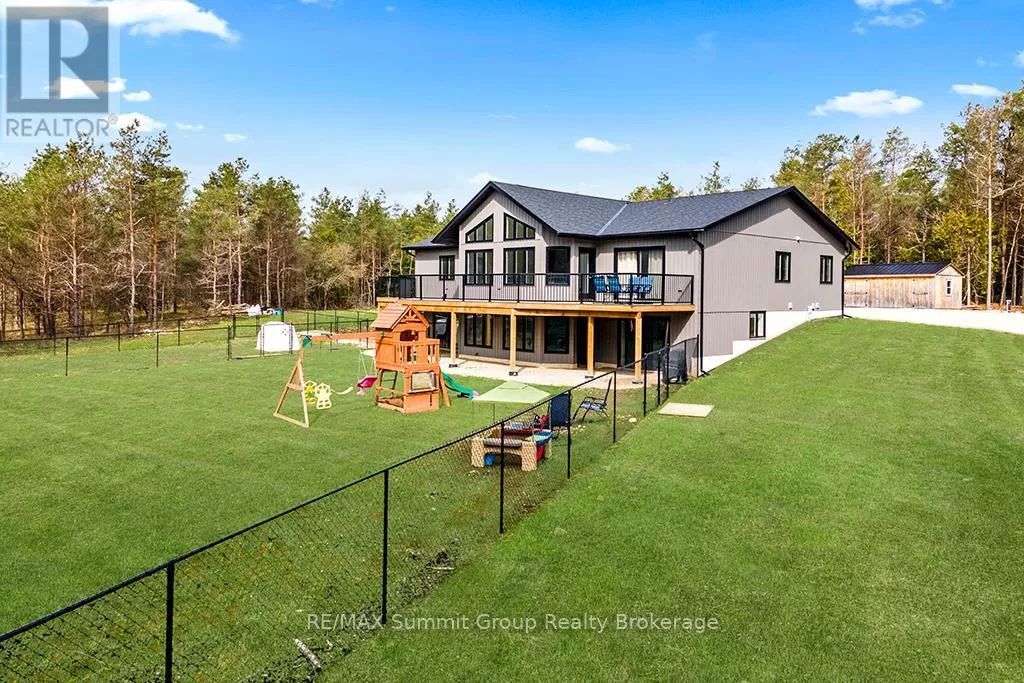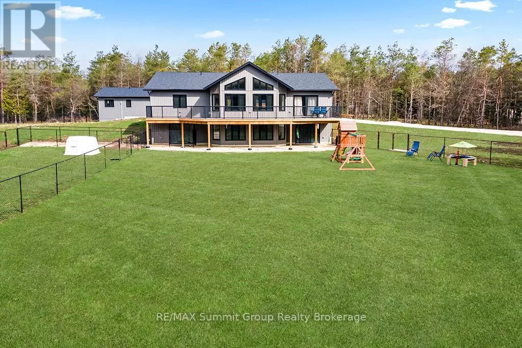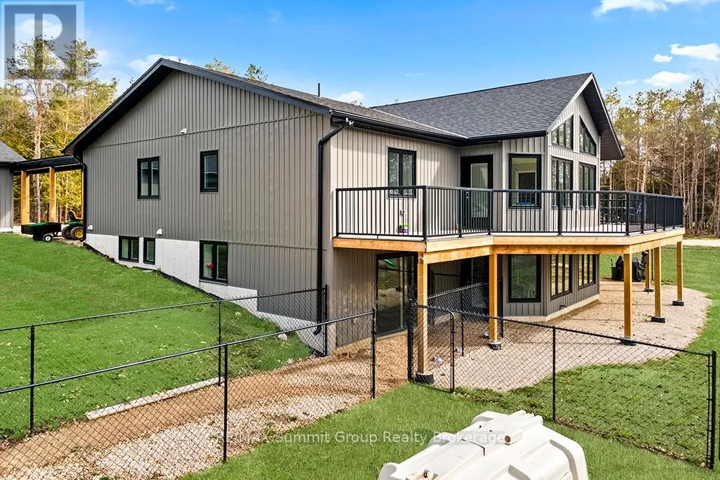 Cross Streets: West Back Line & Hamilton Lane. ** Directions: From Markdale go west on Grey 12, left/south onto West Back Line, right/west onto Hamilton Lane, fire # 615690 on the right. Follow driveway to the property on the left. Multi-generational living doesn't mean you have to live with each other. This property, on almost 5 acres, gives you two separate living spaces while still keeping everyone connected. The main house is bright and welcoming with large windows and a cathedral ceiling that fills the rooms with natural light. It includes five bedrooms, three full bathrooms, and a finished walkout lower level with a huge rec room, kitchenette/wet bar, four walkouts to the yard, and rough-ins for a fridge, stove, and shower. It's a versatile space, perfect for entertaining, hobbies, or giving teens and guests their own retreat. The kitchen was designed for gathering, with a 15-foot island, porcelain slab counters, deep drawers, a built-in spice rack, and a cooktop with downdraft ventilation. It flows easily into the dining and living areas, making family meals or get-togethers simple. From the primary bedroom, step directly onto the 55-foot deck that overlooks the property, while a spacious mudroom/laundry combo keeps day-to-day living organized. The fully equipped secondary unit is ideal for parents or grandparents, independent adult kids, a home office, or even rental income. Outside, you'll find a private setting that still keeps you close to everything, just minutes from Markdale and a short drive to Beaver Valley Ski Club. There's over half an acre cleared, multiple fenced areas for pets or play, and wide gates for access. Modern features like geothermal heating and cooling, ethernet hookups in the gym and office with excellent internet, and a commercial-grade hot water pressure tank add comfort and peace of mind. This property makes it possible to share life with family while still enjoying your own space. It's the perfect balance of connection and independence. (id:27476)