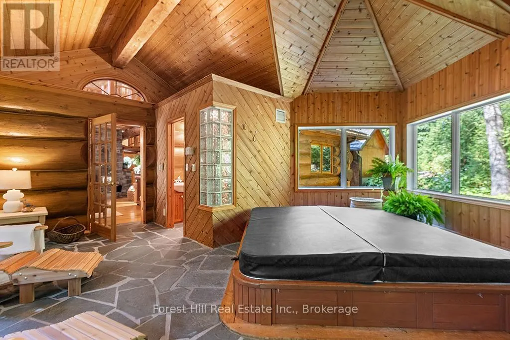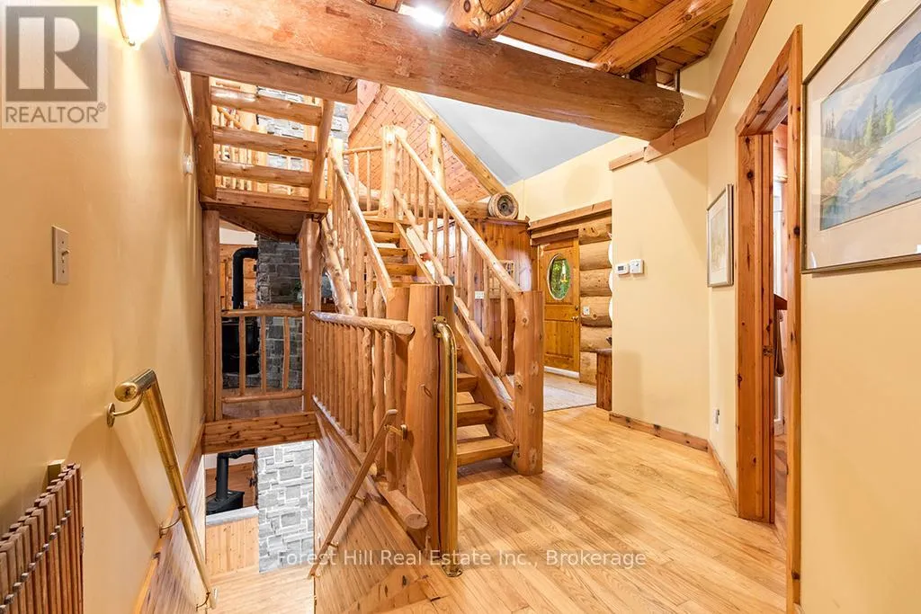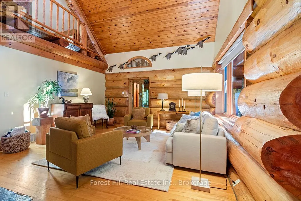 Cross Streets: Hwy 10 / Thistlewood. ** Directions: Hwy 10 to Thistlewood. West on Thistlewood to sign at 520251. Tucked at the end of a winding lane, this exceptional 20 acre woodland retreat offers privacy, timeless craftsmanship, and an enchanting natural setting. At its heart lies a striking log home, built in Scandinavian Scribe style where hand-hewn logs, vaulted ceilings, and a central woodstove create a warm yet refined modern cabin ambiance. The Great Room sets the stage for both intimate evenings and entertaining, while a versatile Family Loft above adds charm and flexibility. Whether used for games, guests, or transformed into a spacious bunk room, its catwalk to a private balcony makes it a memorable retreat in itself. After days spent exploring the regions renowned trails, lakes, and outdoor pursuits, relaxation awaits in the Spa Room designed with in-floor heating, its own ventilation system, and a hot tub facing a cozy propane stove. A screened porch offers a serene setting for morning coffee, a glass of wine, or quiet reflection surrounded by nature. Every detail reflects thoughtful design, from the generous Boot Room with garage access perfect for managing outdoor gear to the impressive detached workshop with propane heat, a garage, storage area, bathroom & an upper studio apartment ideal for friends, extended family or income generation. A dedicated tractor shed ensures space for all outdoor equipment. The land itself is a masterpiece where open clearings meet mature woodland & winding trails invite you to begin your day by taking the dog for a peaceful walk. As evening falls, stargaze by the fire pit, tend to flourishing gardens, or simply wander and enjoy your very own park-like setting. Perfectly situated, this property balances seclusion with convenience: only minutes from amenities in Markdale, 15 mins from Beaver Valley Ski Club, and surrounded by the 4-season attractions that make Grey County a premier lifestyle destination. More than a home, 520251 Thistlewood Rd embodies a way of life one of country living in comfort with a connection to the outdoors. (id:27476)
