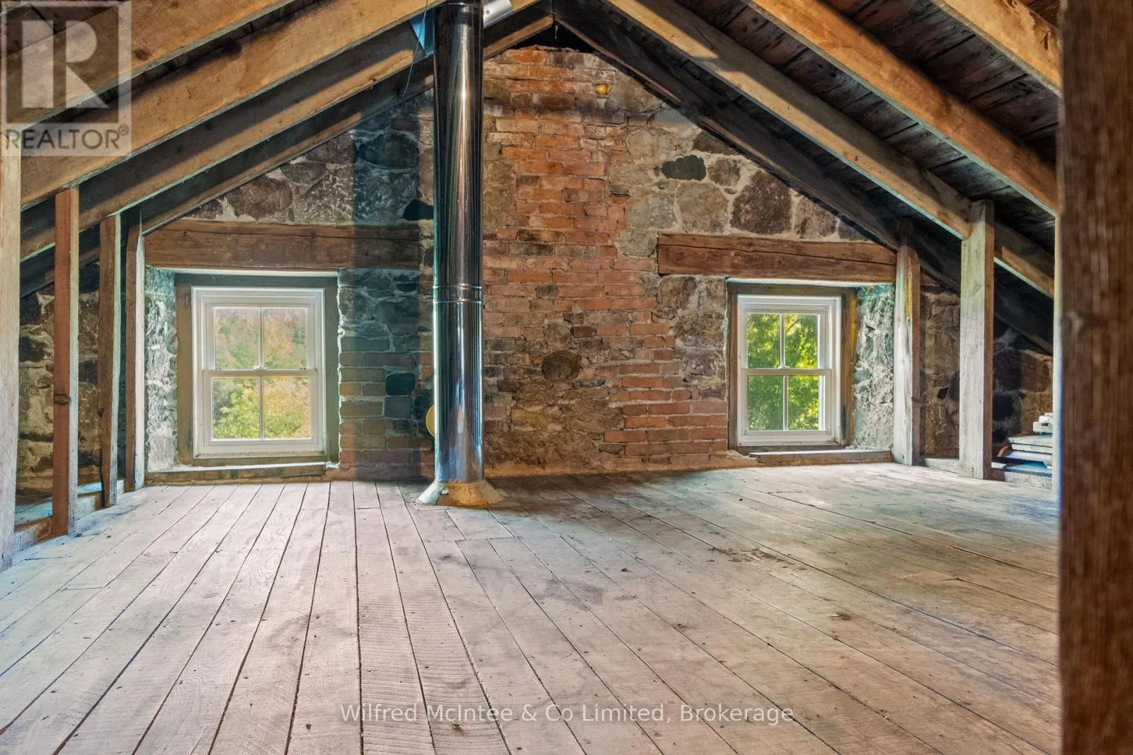 Cross Streets: MULOCK RD. ** Directions: 302148 Concession Rd 2 SDR, Hanover, ON N4N 3B8; Grey Rd 4 between hanover and Durham, turn South onto Mulock Rd to Con 2 SDR, turn right to sign on left. DRIVEWAY OFF CON 2, REAR LANE TO NORMANDY-BENTINCK TOWNLINE. An exceptional stone farmhouse set in the middle of 71.65 acres of rolling hills, mature forest and beautiful views. This functional estate includes 35 workable or cleared pasture acres, and 35 acres of woodland with ponds and trails. Ultimate privacy is assured via the long, tree-lined lane leading to the historic 1870s stone house. With its unmistakable character and modernized farmhouse charm boasting over 2200 sq.ft of space, 3 bedrooms and 2 full bathrooms with space for more. Perfectly blending history and modernity, featuring hardwood floors and an updated modern kitchen. The home retains its original trims and moldings, cozy certified woodstoves (plus the convenience of propane forced air furnace with a/c), a full walk-out lower level with a bathroom featuring in-floor radiant heat, and an inviting exposed stone bedroom or bonus family room with propane stove. The clean and prepared open attic (35'6x11'7) is ready for conversion into additional living space, a cozy bedroom suite or office- the inspiring canvas is ready. The property's crowning jewel is the original 54x53 bank barn. The upper barn space is ideal for storage but well enough maintained and preserved to set the stage for event hosting with carriage lights mounted on the beams and fairy lights strung along the rafters. While the lower level workshop/garage is perfect for multiple vehicles, equipment storage, or a clean slate for horse stable and tack room conversion. The truly inspiring aspect of this property's location is how it backs onto the desirable unassumed sand road providing direct access for activities like quiet walks, horseback riding, or cross-country skiing into the vast 428 acres of Allen Parks forested lands. With groomed trails and the most beautiful and bountiful natural trillium blooms in Ontario. Your search is over for an unique estate offering both historical charm and vast functional potential as a hobby or horse farm, rural retreat, event host, and private oasis. (id:27476)