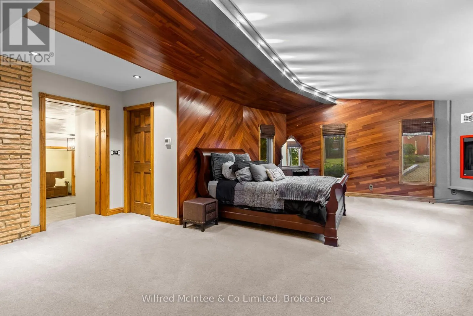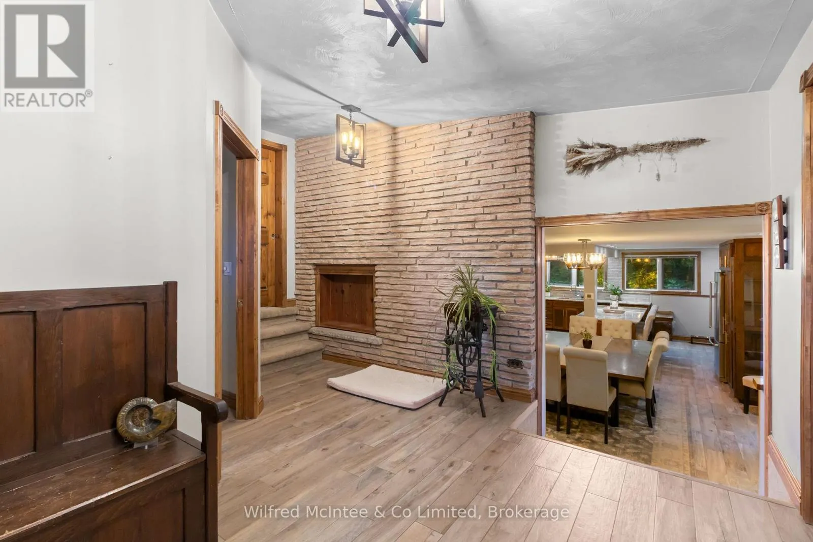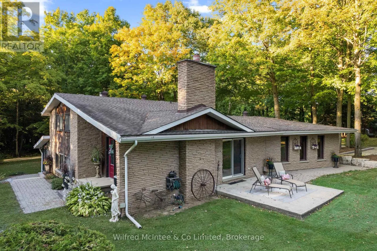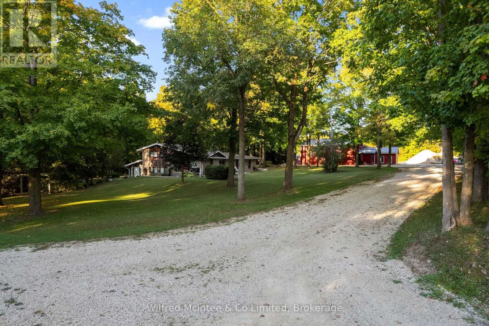 Cross Streets: Grey Rd 4. ** Directions: 193455 30TH SIDEROAD NDR, HANOVER ON, N4N 3B8; North off Grey Rd 4 between Hanover and Durham, Property on right hand side. Set on 8.9acres, this first time on market, one-of-a-kind property invites you to live, work, and play without compromise. Featuring a 4 bed, 2 bath 2800sqft home, 4784sqft commercial grade shop with offices, 850sqft outbuilding, & 320sqft cabin with bathroom overlooking the pond. With parking for over 20, this property is designed for convenience, gatherings, and the flexibility to expand your business. Step inside the imaculate mid century modern home and discover a space that balances warmth & function. Characterized by clean lines, open-concept layout, and a deep connection to nature through expansive windows and the integration of wood, stone, and brick accents. The foyer welcomes you, leading into a sun-filled, open-concept dining and kitchen area where custom cherry wood cabinetry, granite countertops, and built-in appliances combine elegance and practicality. Off the kitchen, a bright sunroom with heated floors and a wood stove frames stunning country views, the perfect spot for coffee at sunrise or a glass of wine at dusk. The living room, with its soaring 12ft ceilings and custom stone fireplace, leads to the primary suite, where 6 large windows overlook the landscaped yard. Upstairs, 3 bedrooms and a full bathroom with dual sinks offer plenty of space. The finished basement features a large rec room, custom cabinetry, laundry room, and a cold cellar. Just steps from the home is a 4,784sqft. heated shop; complete with in-floor heat, 3 overhead doors, 3 offices, parts room, 2pc bathroom, plus a 1 bed, 1 bath apartment. The property also includes a smaller heated outbuilding/garage, and beside the spring fed pond is a cabin. Surrounded by towering trees, and complete privacy, this is made for bonfires, paddle boating, and summer barbecues. At night, relax by the woodstove as you watch the glow of a private waterfall. This property isn't just a home, it's a lifestyle. A private country sanctuary where your business, family, and leisure can thrive together. (id:27476)