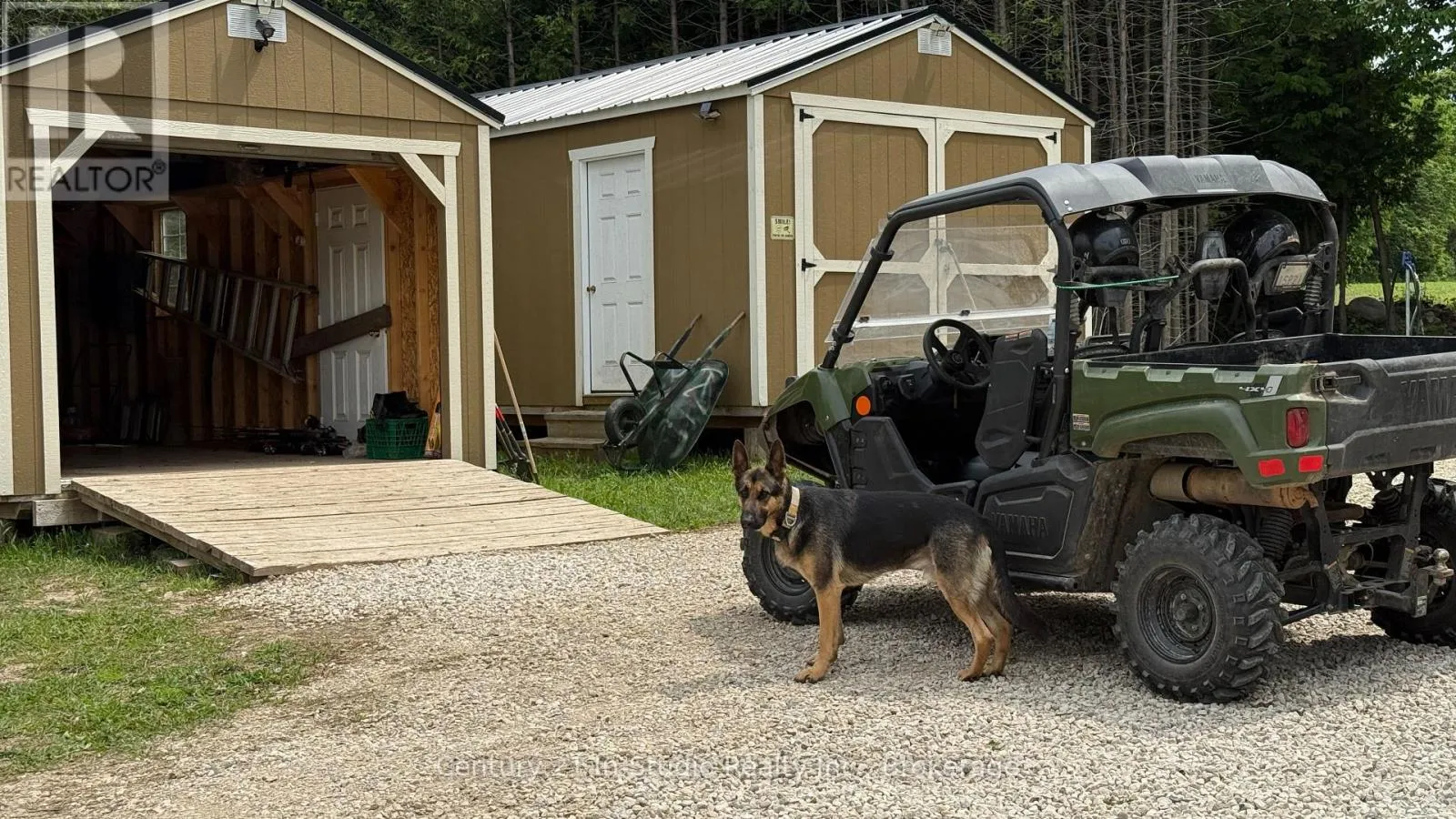 Cross Streets: Rocky Church Rd/ Highway 6. ** Directions: Highway 6 North from Durham approximately 7.5 km to Rocky Church RD. Turn left (west) look for the For Sale sig. The city's chaos screaming horns, packed streets, lights that never dim grinds you down. You dream of escape, a place to build a life that's yours. Seven kilometers north of Durham, Ontario, your 50-acre haven waits. You drive, urban sprawl fading in the rearview. The sound of wind-swept cedars welcome you as you pull onto your land. Boots hit soil, and silence wraps you like a warm blanket. This isn't just dirt, its the foundation for your dream home. A one-acre pond glints, inviting lazy fishing afternoons or quiet moments watching the sun dip low. A 210-foot zip line stretches across towering maples, daring you to soar imagine the wind, your kids laughter echoing. Trails twist through the woods, perfect for hikes with your dog bounding free or ATV rides to secret corners. Deer blinds hide in the trees, whispering of crisp fall hunts, while a campfire crackles in your mind, stars blazing above, untouched by city glow. This place is ready: a176-foot well pumps 100 gallons of clear water a minute; 200-amp hydro with three 40-amp outlets powers your vision. A four-season cabin with two bedrooms, a 3-piece bath welcomes you now, while two board-and-batten sheds (24x12, 30x14) and a 20x8x8 walk-in cooler handle your gear. (id:27476)
