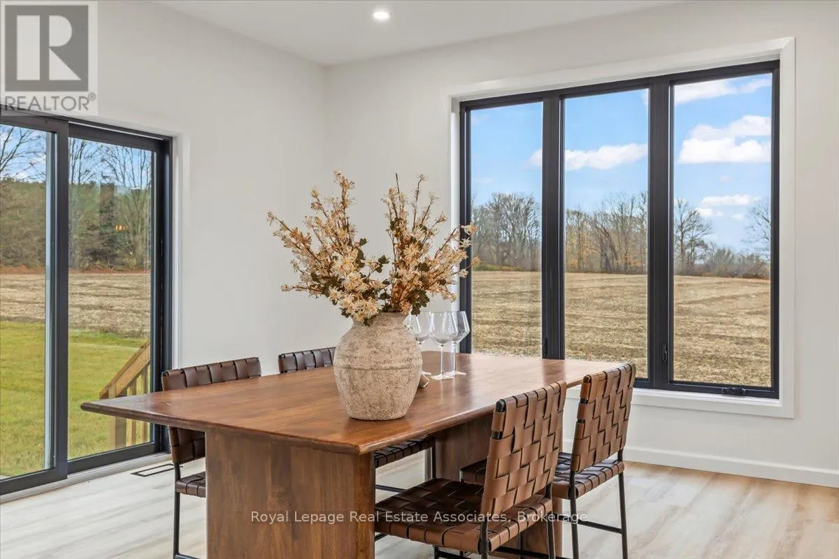 Cross Streets: Mulock Road and Concession 8. ** Directions: Mulock Road between Concession 8 and Concession 10, east side. Welcome to this stunning brand-new custom home located on 2.6 acres between Hanover and Durham. Offering over 3,000 square feet of thoughtfully designed living space, this modern 4-bedroom, 4-bath home is truly turn-key with every detail carefully considered.Step inside and be greeted by a bright, open-concept layout featuring a soaring cathedral ceiling and a striking fireplace in the living room. The main floor boasts luxury vinyl flooring and recessed lighting throughout. The contemporary kitchen includes stainless steel appliances, a large centre island, propane stove with pot filler, and ample counter space-perfect for family gatherings and entertaining. The adjoining dining area walks out to the backyard, ideal for enjoying the scenic countryside views.A large mudroom with built-in storage connects to the double car garage, and the main floor laundry adds convenience to everyday living. The primary suite offers his-and-her closets, a walkout to the backyard, and a luxurious ensuite with a glass shower and double-sink vanity.Upstairs, sleek glass railings lead to a spacious loft-an ideal office or family lounge. Three additional bedrooms complete the upper level, including one with a private 3-piece ensuite and another full 4-piece bath.The lower level offers a partially finished space with a 3-piece rough-in and cold room, ready for your personal touch. Outside, enjoy the expansive lot and the added bonus of a 40 x 60 detached shop with a 14 x 14 overhead door-perfect for hobbyists, storage, or a home business.A rare opportunity to own a new, modern country home that blends luxury, function, and space-just minutes to both Hanover and Durham. (id:27476)