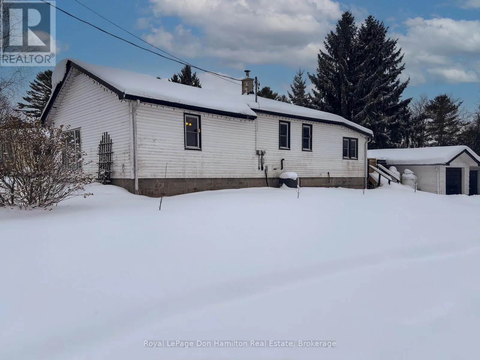 Cross Streets: Church St/George St. ** Directions: Turn right on Church Follow to #34. Welcome to 34 George St N in the quiet village of Elmwood - an affordable opportunity for first-time buyers who don't mind rolling up their sleeves. This detached bungalow sits on a deep, private lot and includes a spacious two-car garage, with one bay set up as a workshop. If you've been looking for a home you can personalize, update at your own pace, and build equity in, this is the one. Inside, you'll find a functional layout with a large living room, family room, separate dining area, two bedrooms, and a generous kitchen space. Some renovation projects have already been started, giving you a head start to finish the home in the style you love. This property also benefits from several meaningful upgrades, including a new breaker panel (2024), new hot water heater (2024), new pressure tank for the well (2024), septic pumped in 2023, and new asphalt shingles on the back porch and bedroom roof section (Summer 2025). Step outside to enjoy the expansive backyard, mature trees, outbuildings, and a raised deck overlooking the property, a perfect space for kids, pets, gardening, or outdoor projects. The detached garage/workshop is ideal for hobbyists, storage, or anyone needing extra space. Whether you're a first-time buyer looking for an affordable entry into homeownership or someone who sees the potential in creating a space uniquely your own, 34 George St N offers value, opportunity, and room to make it shine. Contact your realtor to make an appointment!! (id:27476)