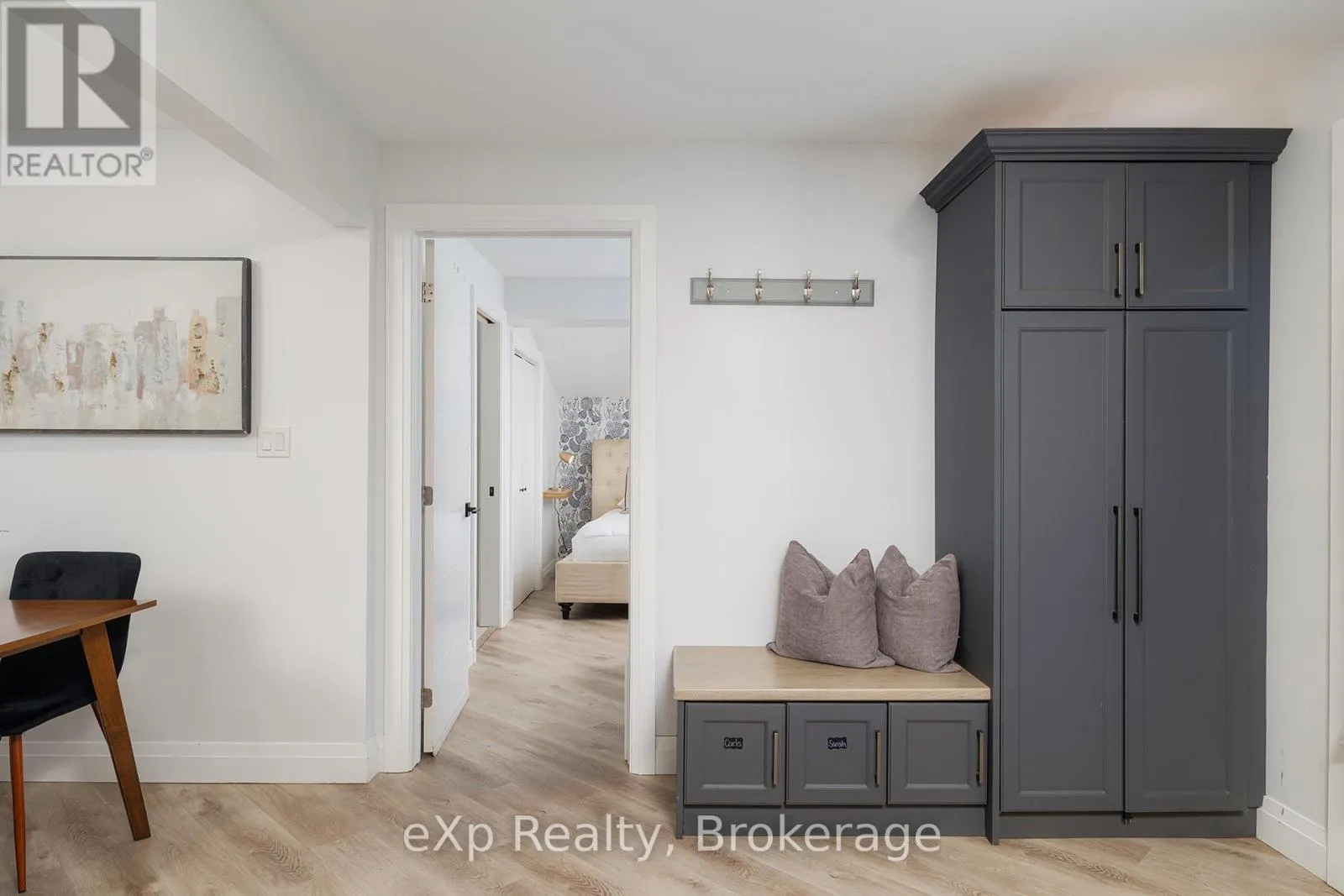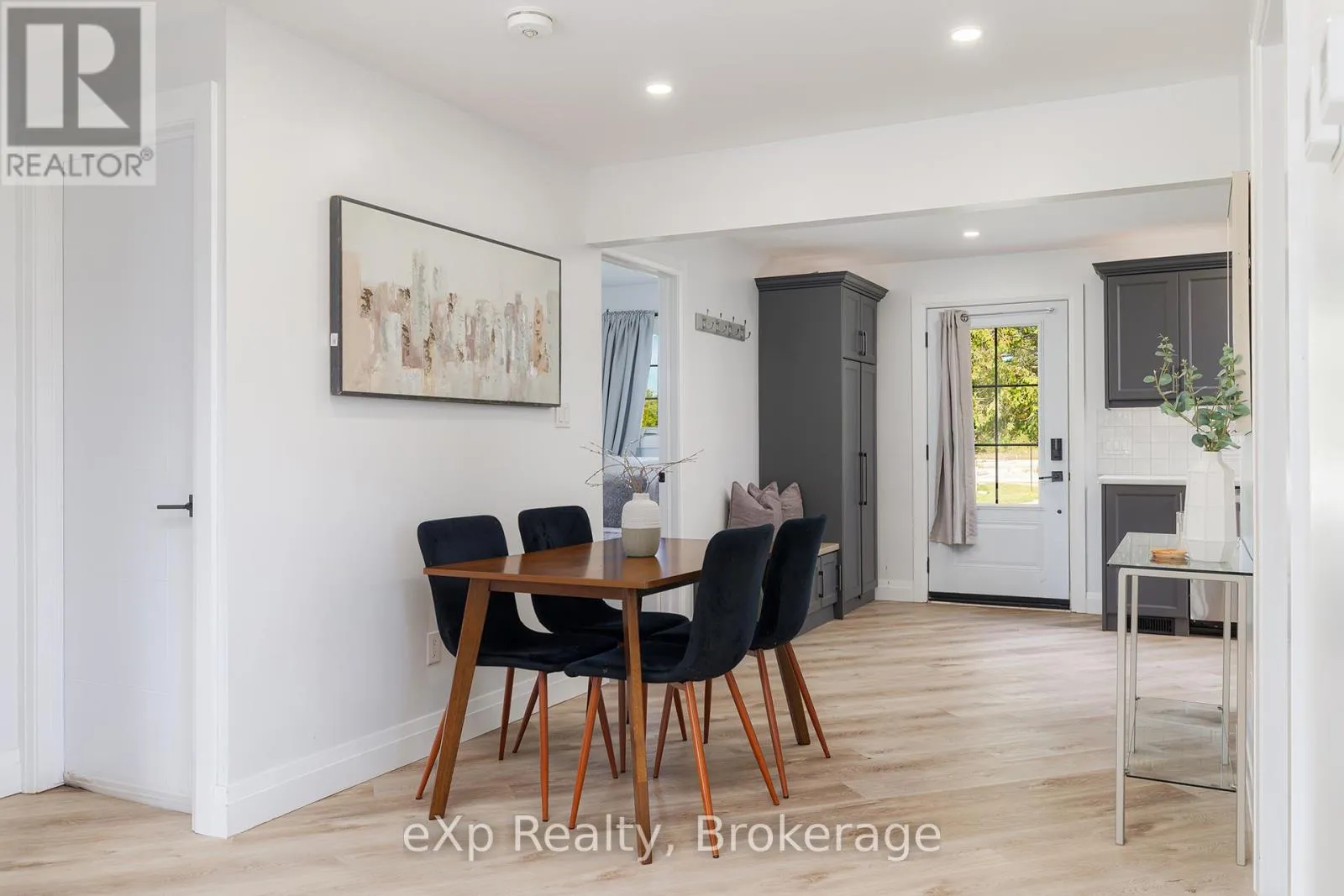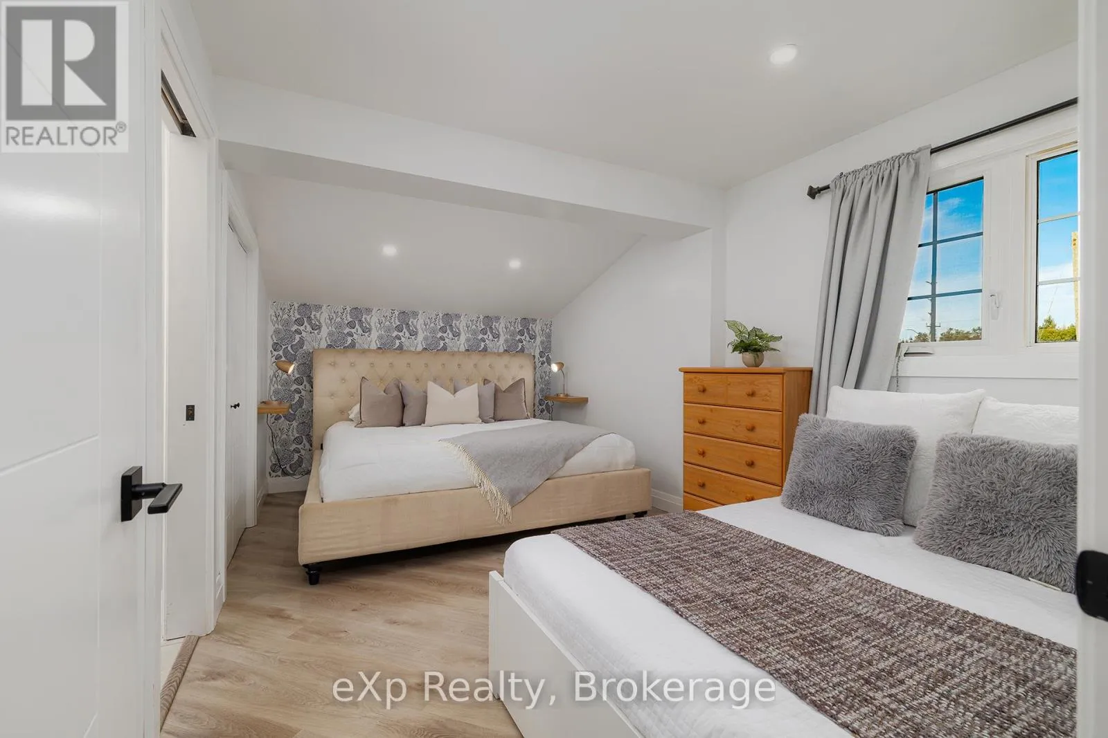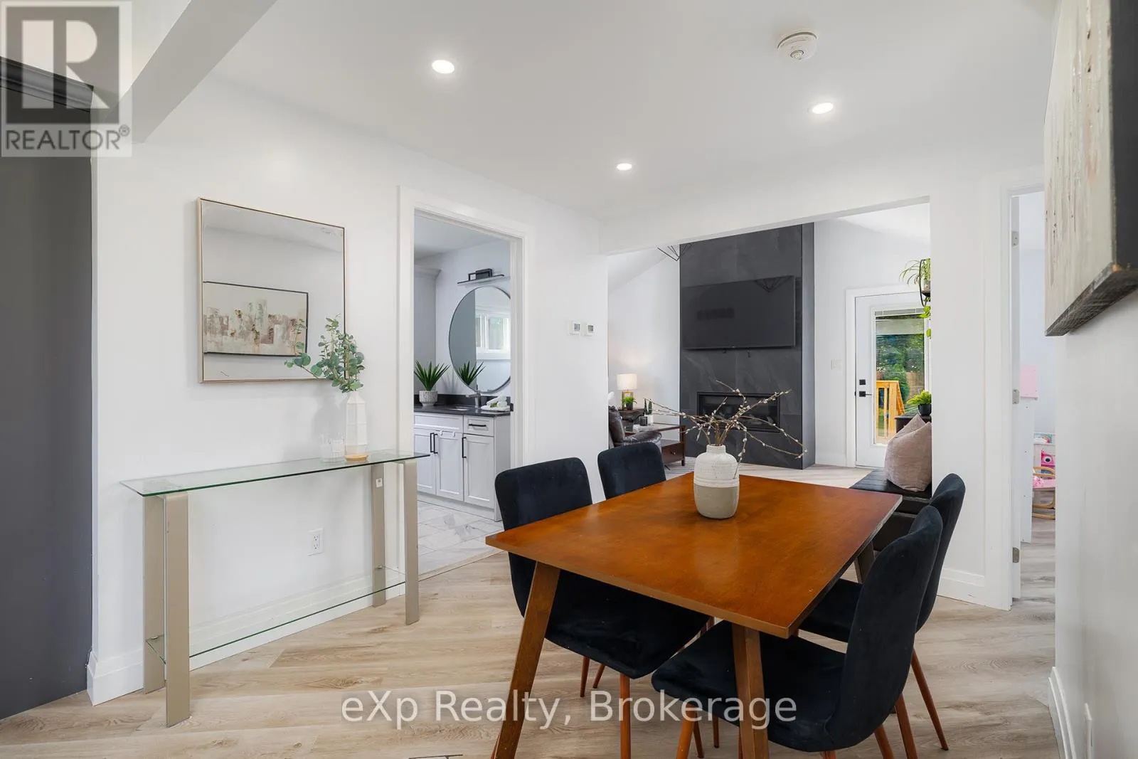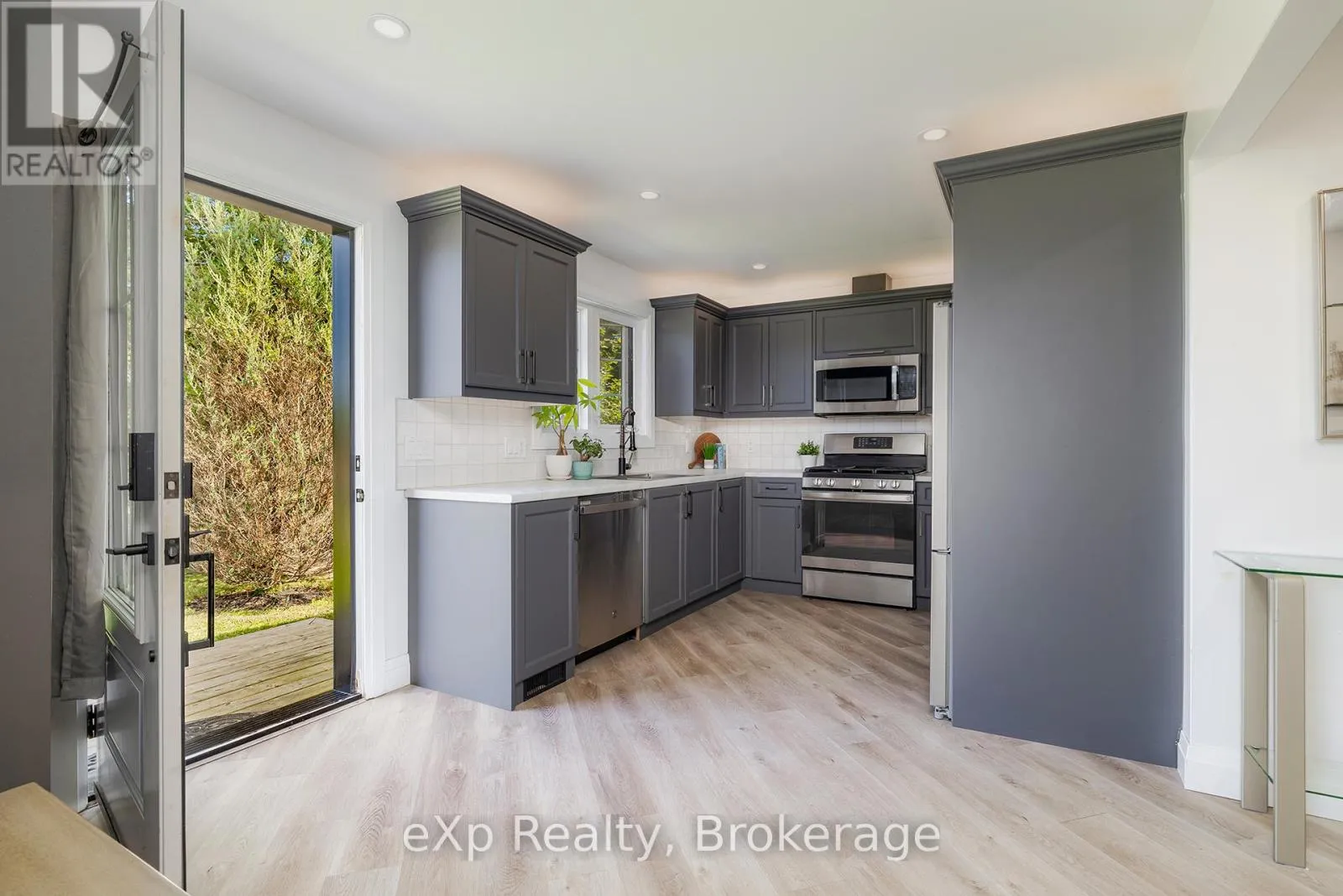 Grey Rd 4 / Grey Rd 28 Nestled on a generous.35 acre lot, this beautifully updated bungalow blends country-like surroundings with unbeatable convenience. Located on the outskirts yet within walking distance to walmart, restaurants and just a 5 minute drive to more major amenities, it offers the best of both worlds. Inside, a bright and airy layout welcomes you with vaulted ceilings in the living room and a striking floor-to-ceiling tiled gas fireplace as the centerpiece. Neutral tones flow seamlessly throughout, creating a calm and inviting atmosphere. The home features 2 bedrooms and 2 bathrooms, thoughtfully designed with a lovely sense of flow. Step outside to enjoy a large wooden deck, perfect for entertaining, overlooking a fully fenced yard that backs onto a tranquil farmer's field - a rare backdrop offering both privacy and charm. Enjoy ample parking for 8+ cars for all your family, friends, and recreational toys. With stylish updates, modern comfort, and a location that places everything you need within easy reach, this bungalow is an exceptional find for those seeking both serenity and convenience. (id:27476)
