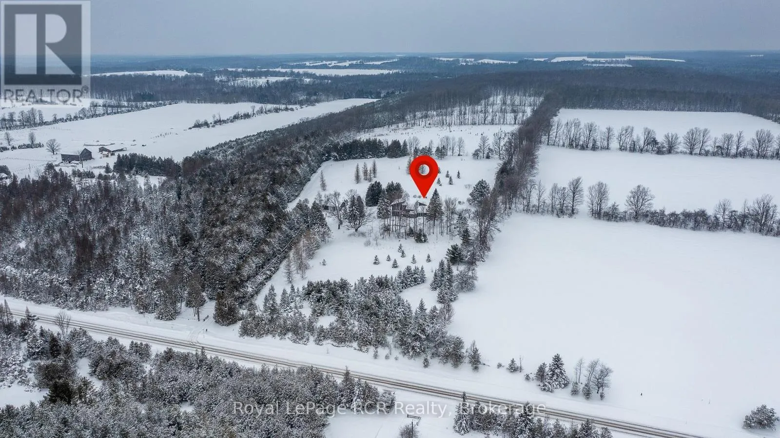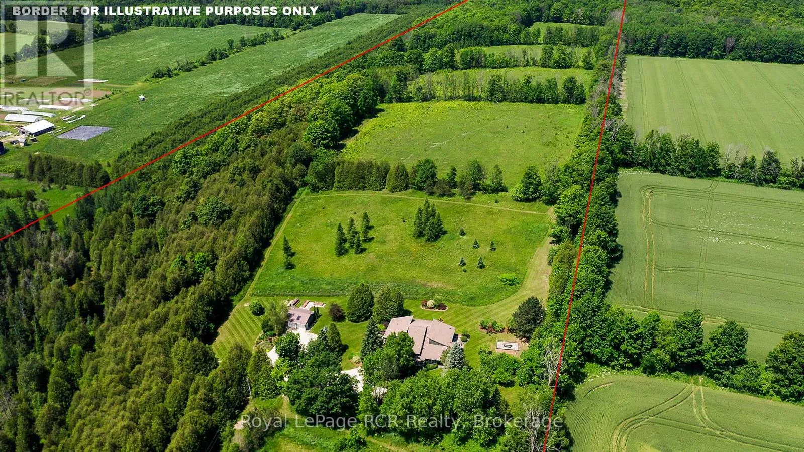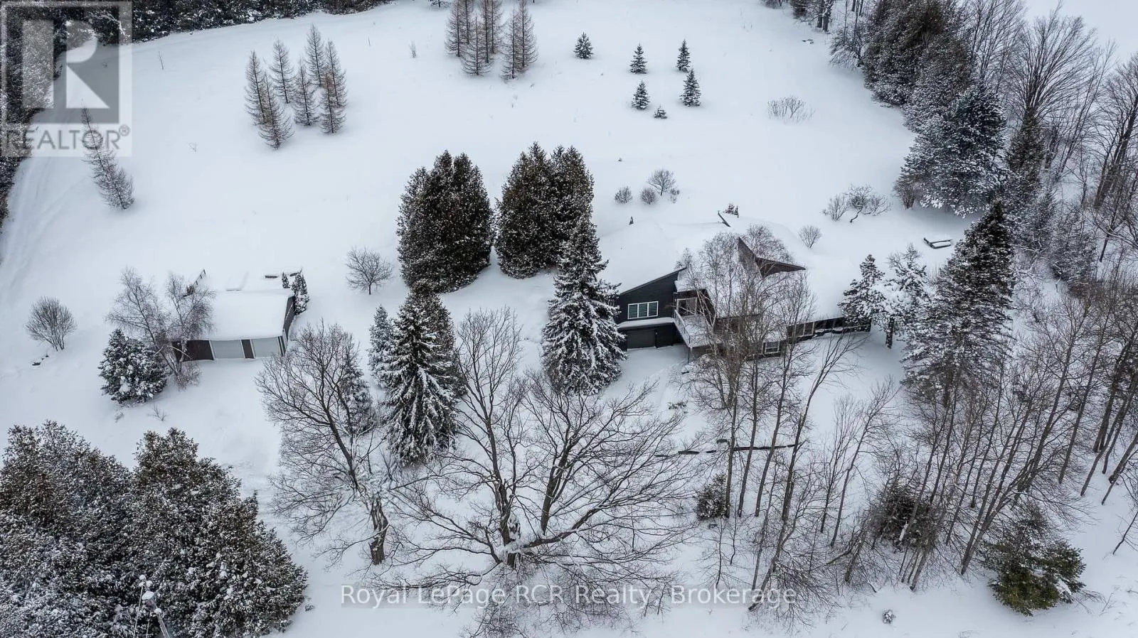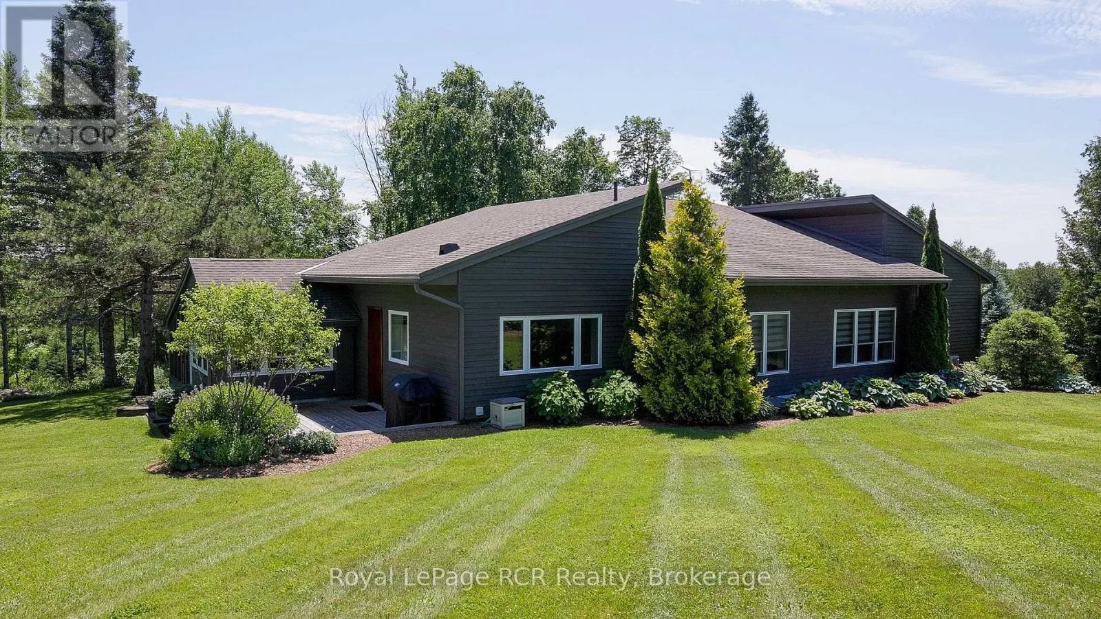 Grey Rd 12 between Traverston and Townsend Lake Rd Luxurious contemporary home set on 50 scenic acres of mixed forest, meadows, and manicured outdoor living spaces. The main level features a sunken living room with gas fireplace, open dining area, and a chef's kitchen with granite countertops, large island, abundant storage, and walk-out to a deck with natural gas BBQ. Adjacent are a bright dinette and screened porch for three-season outdoor dining and entertaining. The primary suite includes dual walk-through closets with built-in cabinetry and an ensuite bath with soaker tub, glass shower, and in-floor heating. Three additional bedrooms, including one with a sitting room and balcony, offer ample space for family and guests. The finished lower level provides a large family room, three-piece bath, laundry, storage rooms, and an attached garage with EV charging outlet and garden entrance to a two-bay drive shed. Modern features include ICF construction, air exchanger, UV water treatment, whole-home surge protection, motorized window shades, Starlink internet, and smart home systems. Enjoy over 4 km of private trails through hardwood forest, regenerating meadows, and orchard trees with sweeping countryside views. Conveniently located on a paved road with natural gas, minutes from Markdale shopping, dining, and hospital, and close to organic farms, the Bruce Trail, skiing, golf, conservation lands, and lakes, this is a four-season retreat in the heart of West Grey. (id:27476)