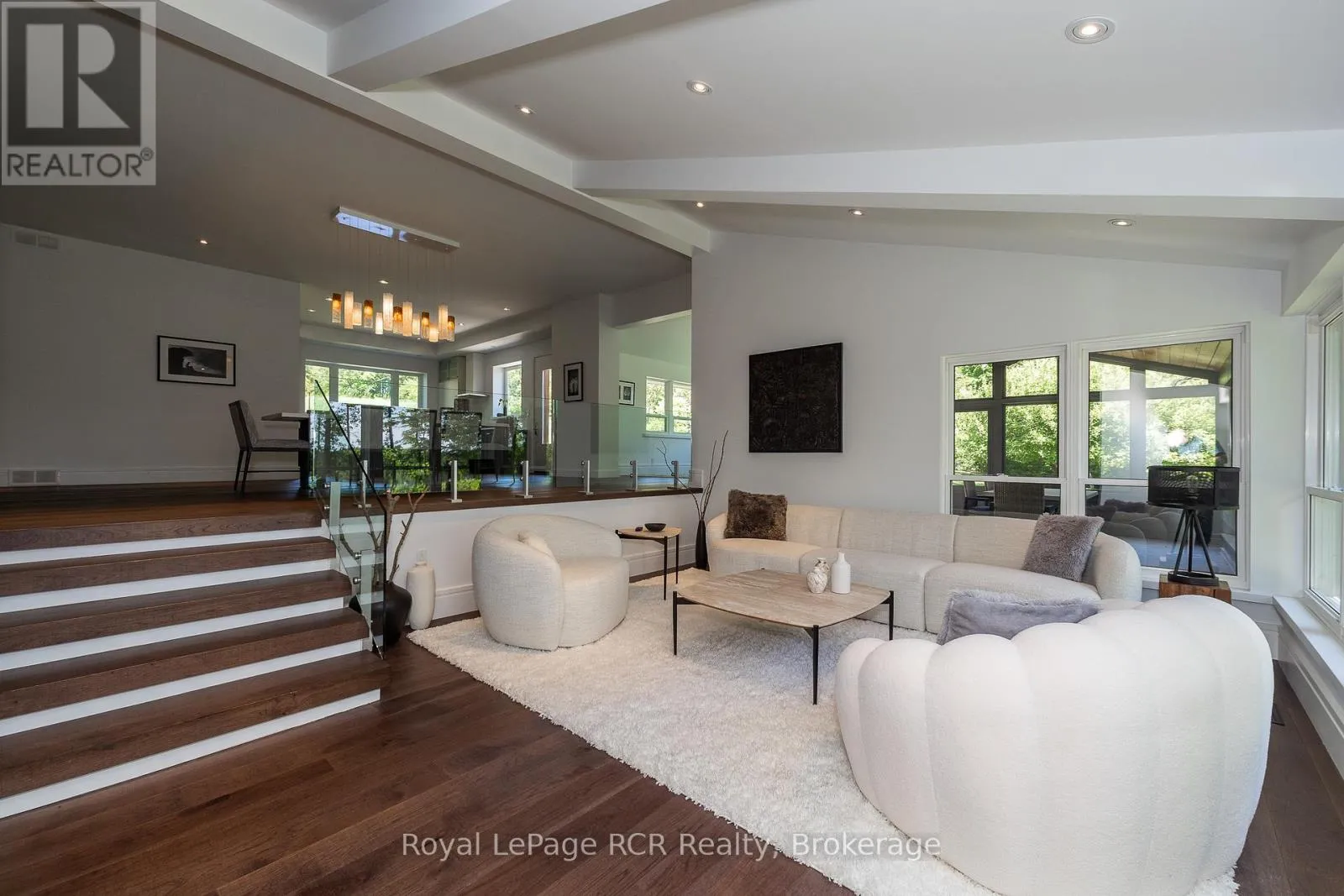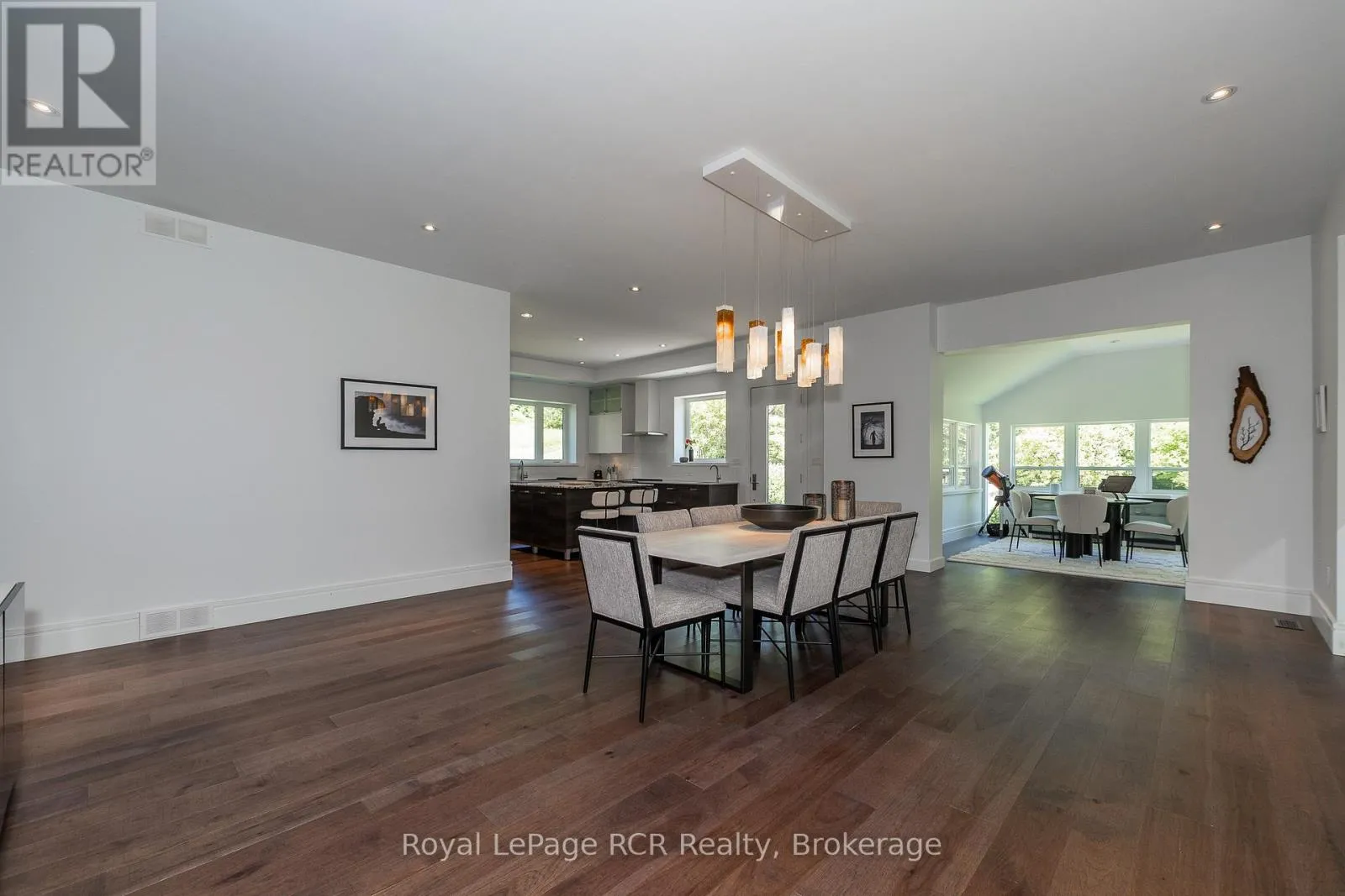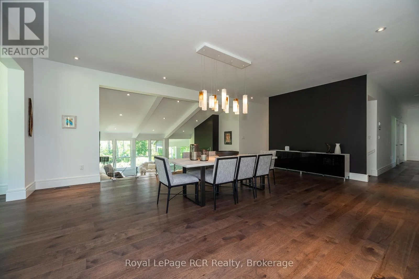 Grey Rd 12 between Traverston and Townsend Lake Rd Luxurious contemporary home set on 50 scenic acres of mixed forest, meadows, and manicured outdoor living spaces. The main level features a sunken living room with gas fireplace, open dining area, and a chef's kitchen with granite countertops, large island, abundant storage, and walk-out to a deck with natural gas BBQ. Adjacent are a bright dinette and screened porch for three-season outdoor dining and entertaining. The primary suite includes dual walk-through closets with built-in cabinetry and an ensuite bath with soaker tub, glass shower, and in-floor heating. Three additional bedrooms, including one with a sitting room and balcony, offer ample space for family and guests. The finished lower level provides a large family room, three-piece bath, laundry, storage rooms, and an attached garage with EV charging outlet and garden entrance to a two-bay drive shed. Modern features include ICF construction, air exchanger, UV water treatment, whole-home surge protection, motorized window shades, Starlink internet, and smart home systems. Enjoy over 4 km of private trails through hardwood forest, regenerating meadows, and orchard trees with sweeping countryside views. Conveniently located on a paved road with natural gas, minutes from Markdale shopping, dining, and hospital, and close to organic farms, the Bruce Trail, skiing, golf, conservation lands, and lakes, this is a four-season retreat in the heart of West Grey. (id:27476)