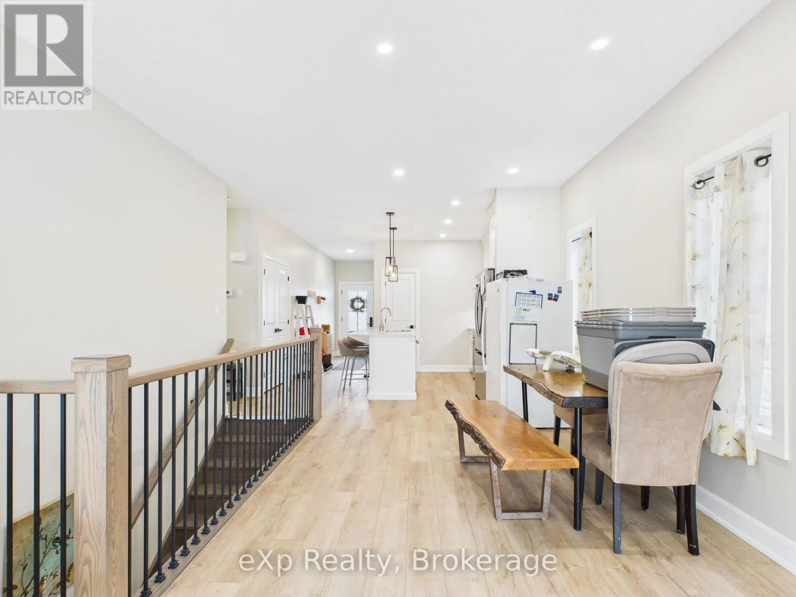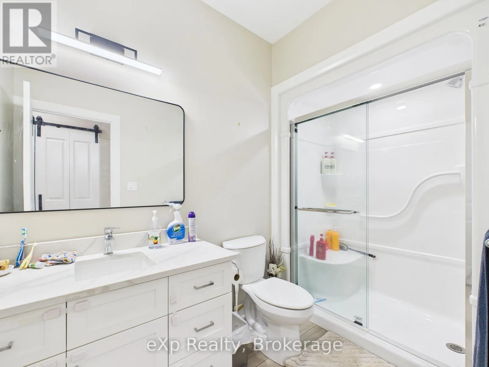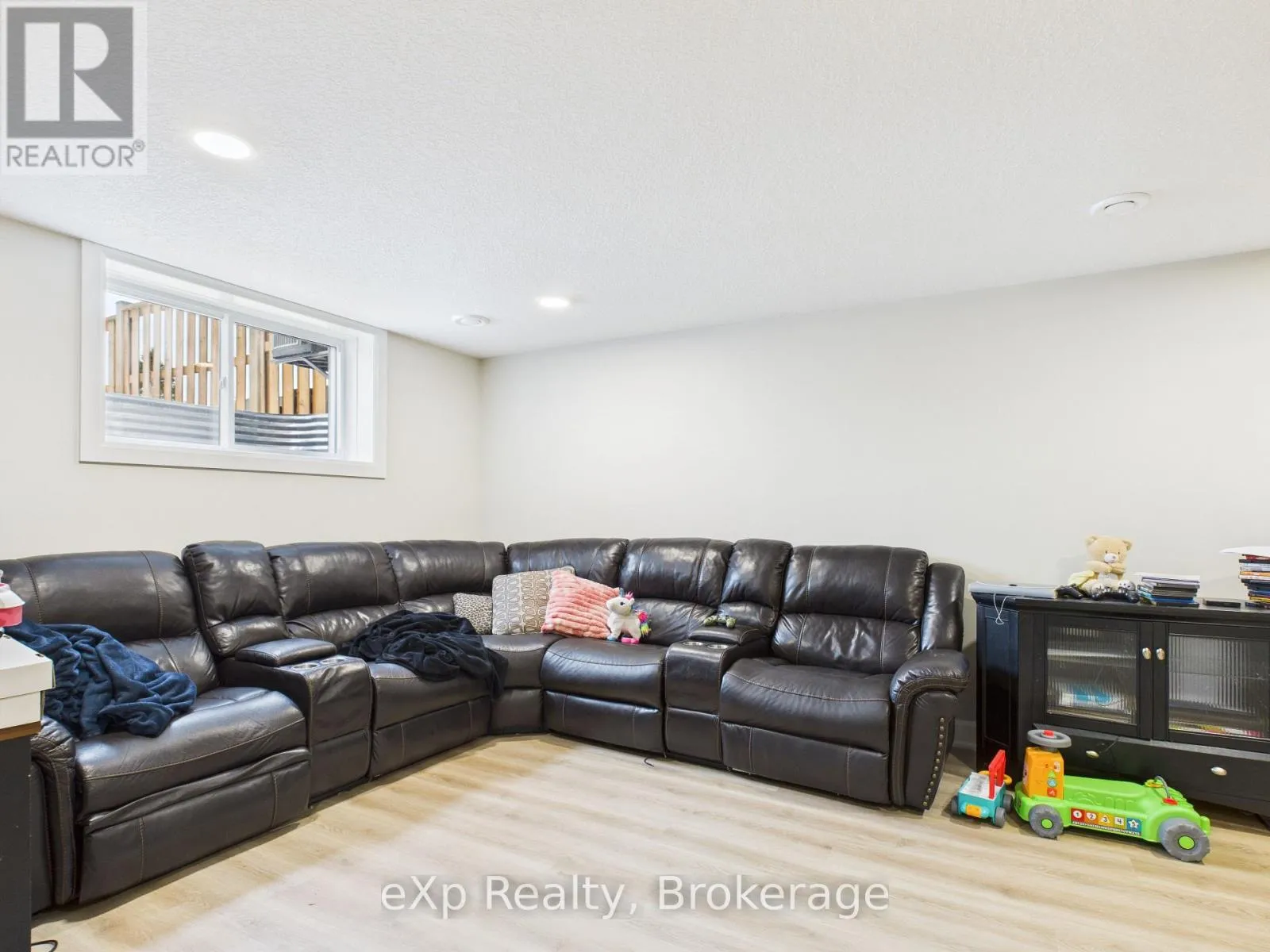 Cross Streets: Queen Street and Forler Street. ** Directions: From Jacob Street, head east onto Queen St., which turns into Grey Road 9. Semi-detached home by Candue Homes offering main-level living, single-car garage, and finished basement. Covered front porch entry leads to a bright, open-concept kitchen, dining, and living area. Kitchen features quartz countertops, island with bar seating, pantry, and appliances. Living room includes a fireplace and patio door walkout to a rear deck, ideal for outdoor entertaining-overlooking a fully fenced backyard with a 12' x 14' garden shed. Two bedrooms on the main level. Convenient 3-pc bath with quartz counters, laundry, and linen closet all on the same level. Vinyl flooring throughout, including the finished basement with rec room, 4-pc bath, two additional bedrooms, and good storage. Built in 2024 with Tarion Warranty. 2026 taxes have not yet been assessed and are expected to be finalized in July 2026. MPAC estimate is $3,345 for 2025. Easement is for entry for municipal drainage. (id:27476)