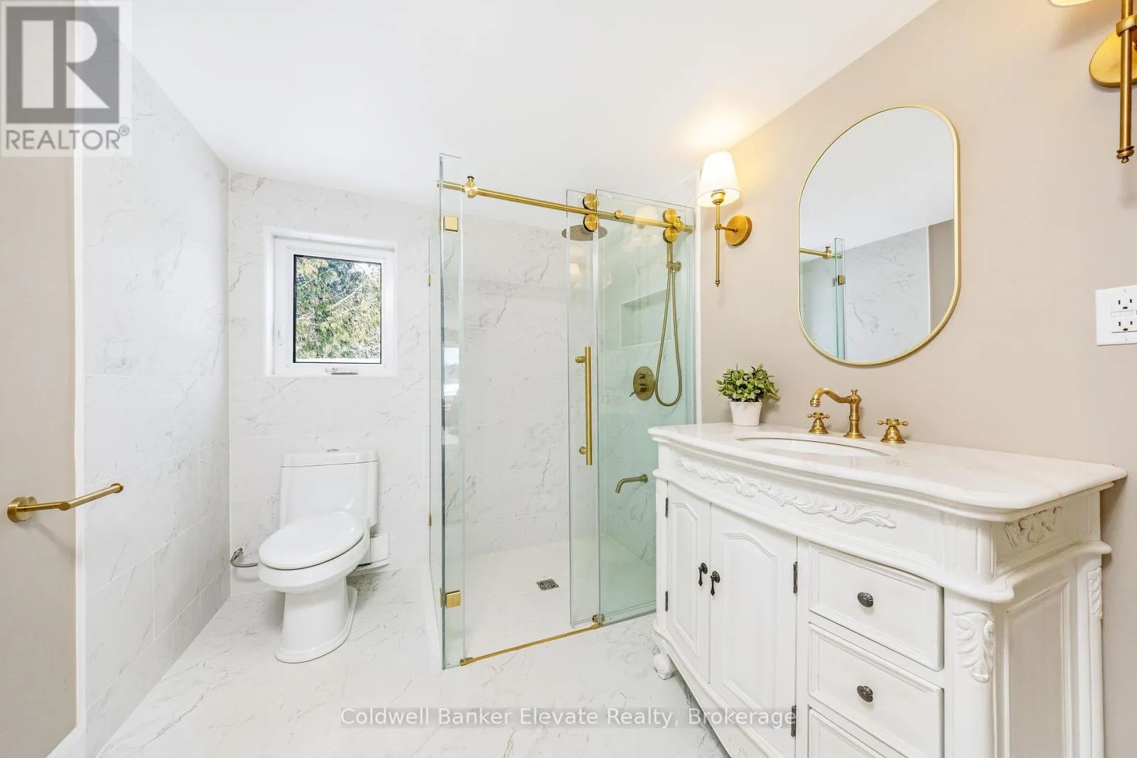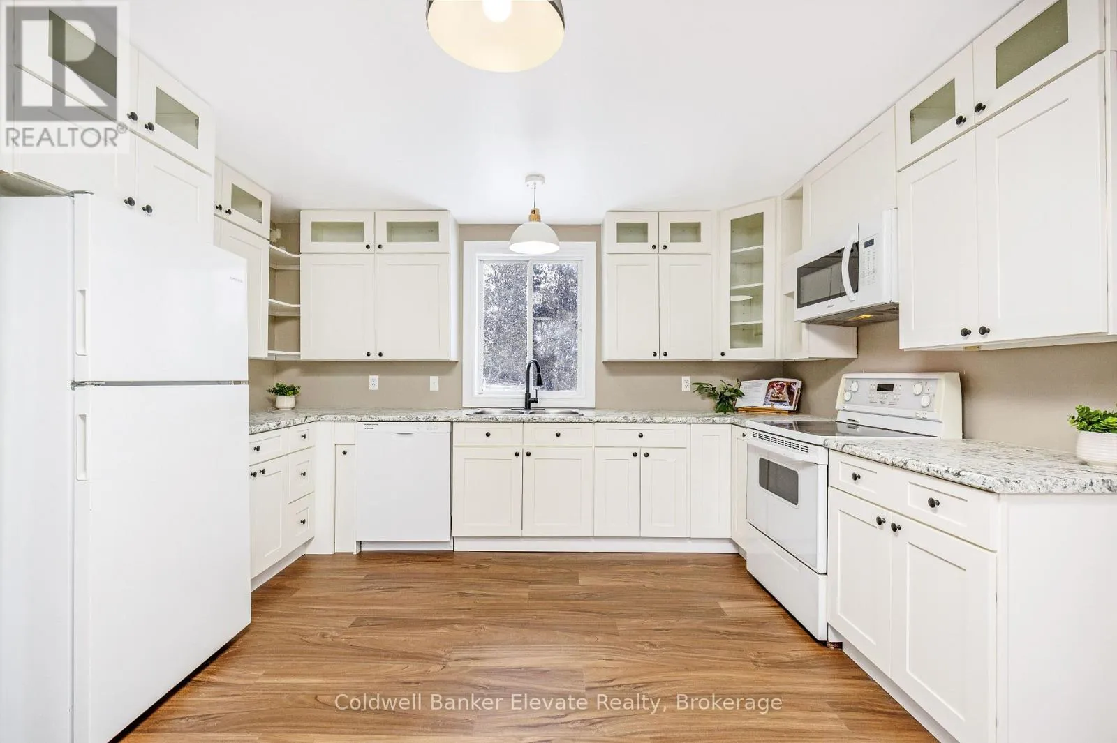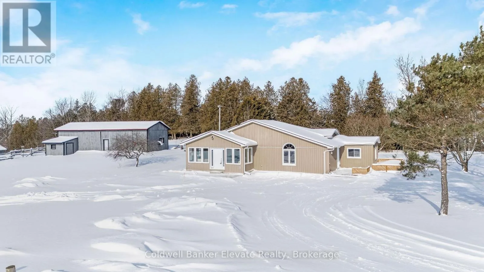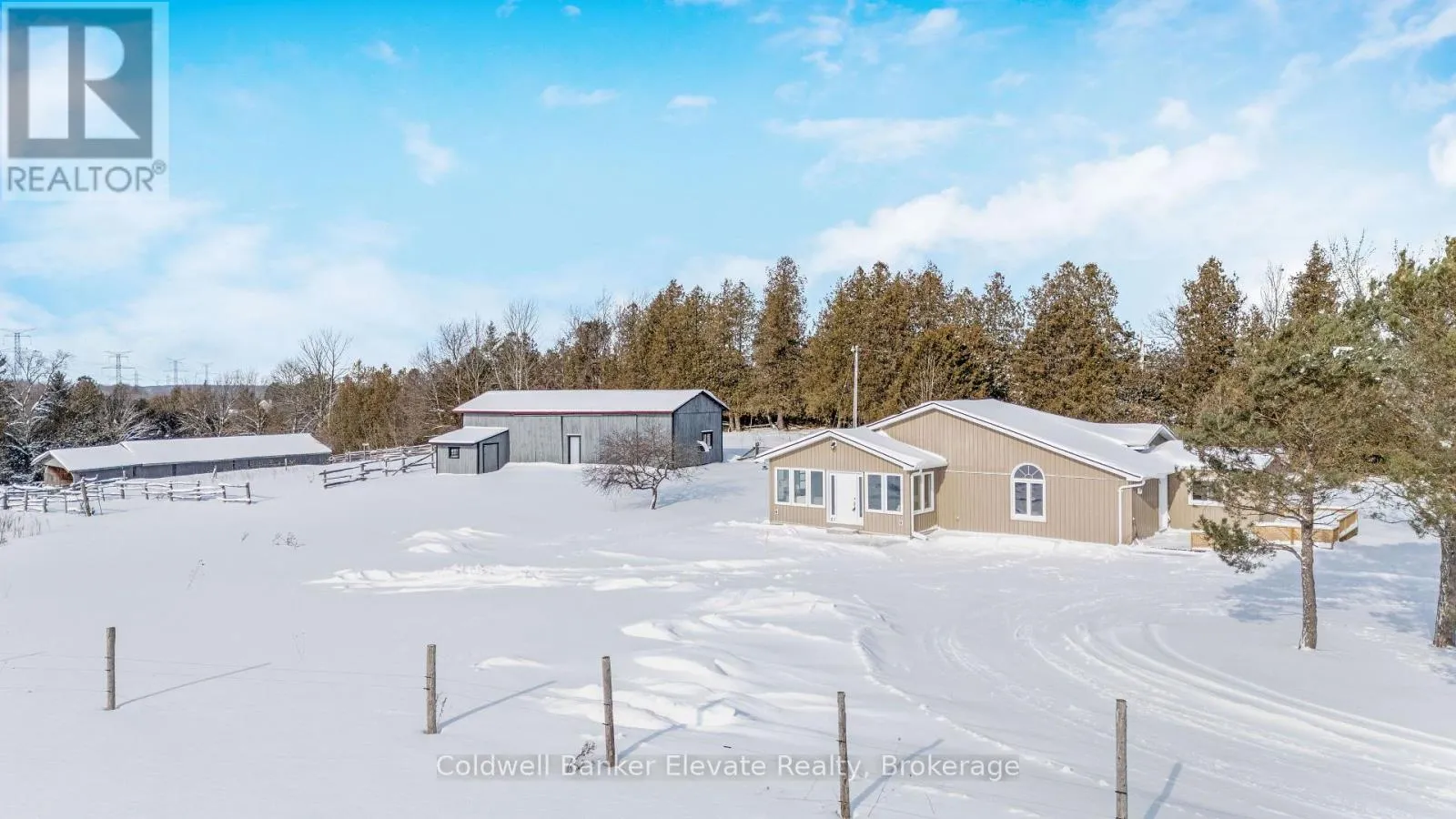 Cross Streets: Highway 6 and Varney Road. ** Directions: On South side of Varney Road, East of Hwy 6, 500 metres East of Concession Rd 2 WGR. Welcome to 262700 Varney Road, a special rural property set on approximately 45 acres in the heart of West Grey. Offering a mix of workable land, open pasture & wooded areas, this is a place where space, nature & opportunity come together. The bungalow welcomes you with a bright front entrance featuring new vinyl flooring & five windows overlooking the front yard. The living room offers new vinyl flooring, a semi flush mount ceiling fan, & side facing windows that bring in plenty of natural light. The dining room features new vinyl flooring, a semi flush mount fan & light, and a charming arched window overlooking the front of the home. The kitchen is both functional & inviting with new vinyl flooring, pendant lighting, shaker style cabinets with glass inserts, soft close slides & hinges, & a window overlooking the backyard. Appliances include a white Whirlpool stove, Samsung range hood & microwave, & white Amana fridge & dishwasher. Three main floor bedrooms provide comfortable living space. The primary bedroom features two single closets & one double closet, with windows overlooking the front & side yards. The second bedroom includes a double closet & side facing window, while the third bedroom also offers a side facing window. The 3 piece main floor bathroom is finished with ceramic tile flooring, pot lights, a wall sconces, a freestanding single sink vanity, & a standing shower with glass surround & brass hardware. Outside, the property shines. A gravel driveway leads to a large barn with workshop style space, along with multiple farm outbuildings. The backyard offers a poured concrete patio, electric fencing & an exterior round pen. Camp Creek flows through the land & is known to support trout, adding to the peaceful natural setting. Apple trees are scattered throughout & the Harrison loam soil is well suited for agricultural use. The property has historically supported horses, grass fed beef, sheep, donkey & cash cropping. (id:27476)