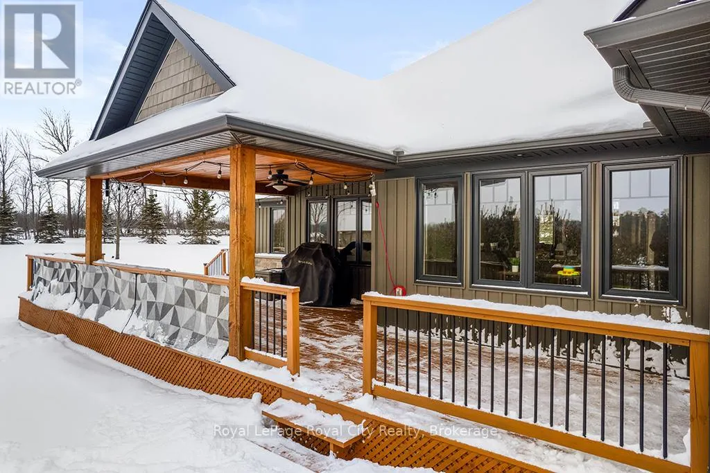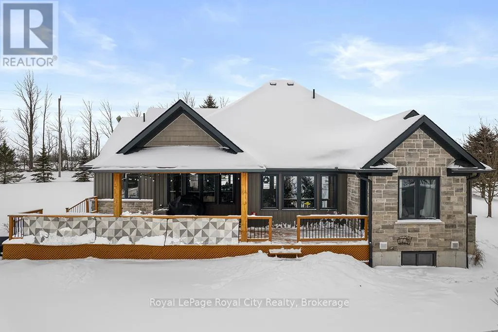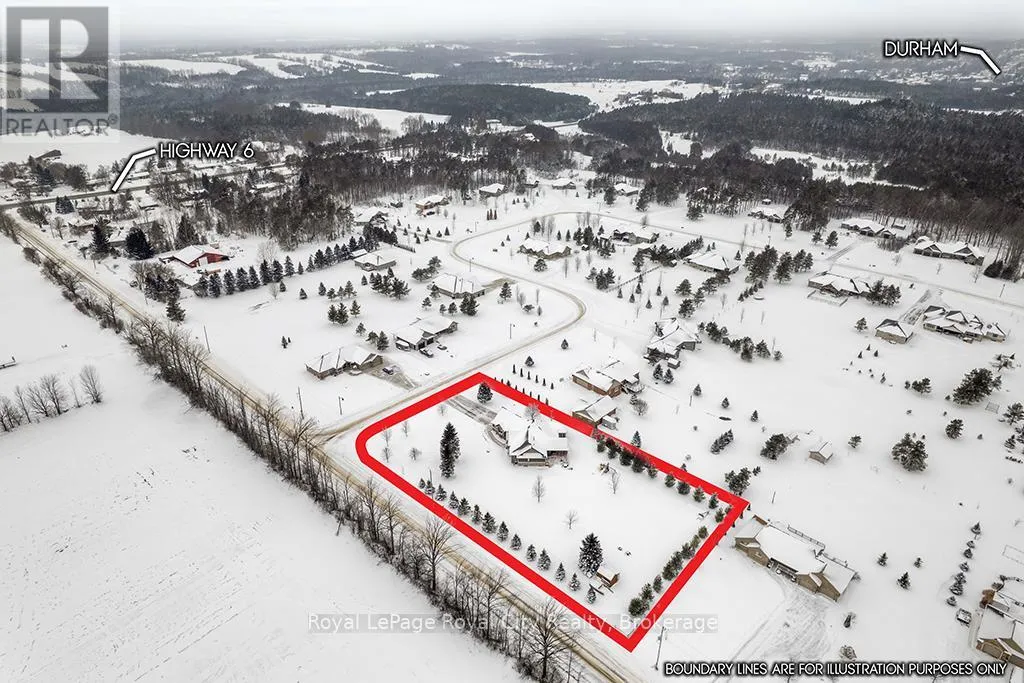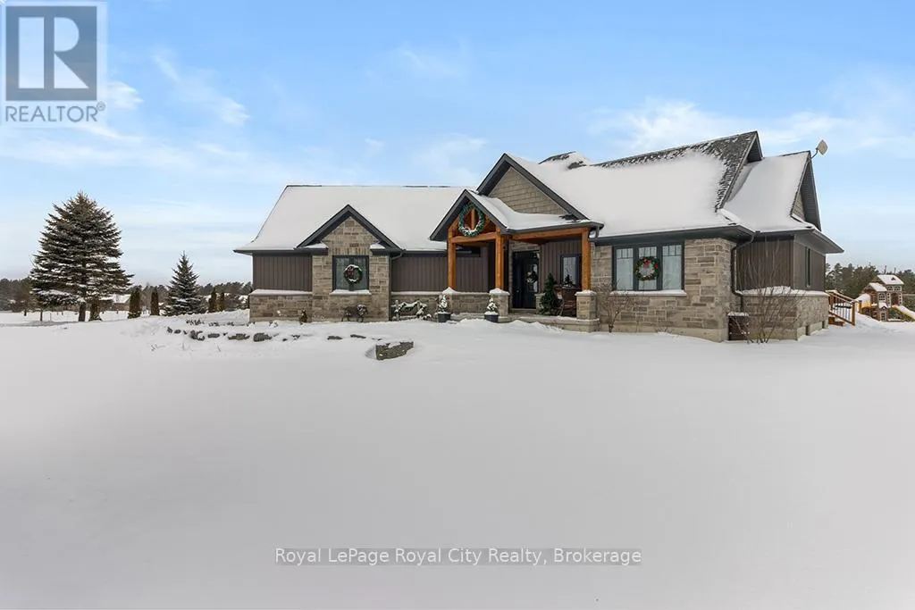 Cross Streets: Southgate Glenelg TL Rd. & Marshall Heights. ** Directions: Highway 6 to Southgate Glenelg Townline Road. Rustic Lodge Charm Meets Modern Living. Welcome to this striking custom-built bungalow, set on a picturesque 1.15-acre lot in the sought-after Marshall Heights subdivision, where peaceful country living blends seamlessly with a welcoming sense of community. Timber beams frame the inviting front porch and lead into a spacious foyer, setting the tone for a home designed for both everyday comfort and effortless entertaining. The great room is the heart of the home, anchored by a spectacular stone fireplace that creates the perfect backdrop for cozy evenings and memorable gatherings. The chef-inspired kitchen is a true showpiece, featuring an oversized island, beautifully crafted cabinetry and thoughtful details that make everything from casual breakfasts to holiday hosting a joy. Entertain with ease in the formal dining room or take the celebration outdoors to the expansive deck, complete with a partially covered area ideal for dining, relaxing, or watching sporting events. The private primary suite is tucked into its own wing offering a walk-in closet, spa-like ensuite and direct access to the deck. Two additional bedrooms and a full bath are thoughtfully placed in the opposite wing, providing comfort and privacy for family or guests. Practicality meets style with a powder room, main-floor laundry, and an oversized double garage with inside entry. The fully finished lower level expands your living space with three more generous bedrooms, a family room, full bathroom, ample storage and a cold cellar. Outside, the expansive beautifully landscaped yard offers endless possibilities. A large shed, RV/boat parking and plenty of room for a pool or future workshop make it ideal for hobbyists and outdoor enthusiasts alike. Perfectly located between Durham and Mount Forest, you'll enjoy easy access to year-round recreation including hiking, ATVing, skiing, and snowmobiling, all just minutes away. This is more than a home, iIt's the lifestyle you've been dreaming of. (id:27476)
