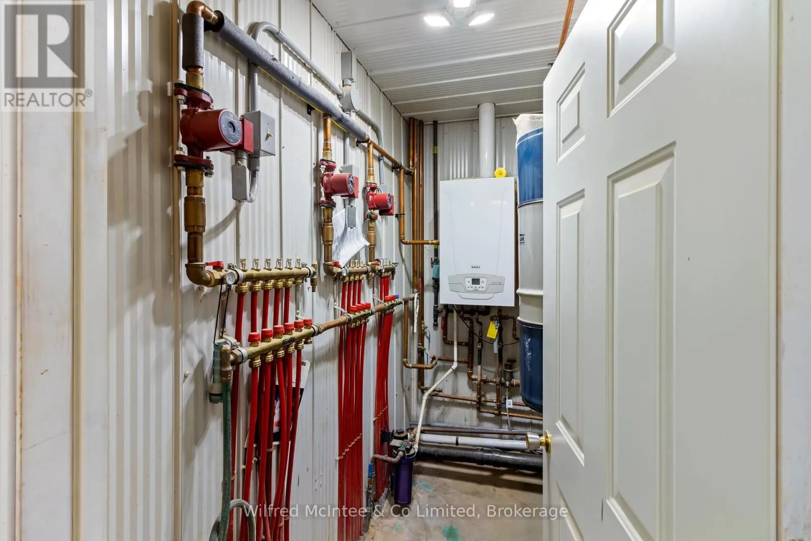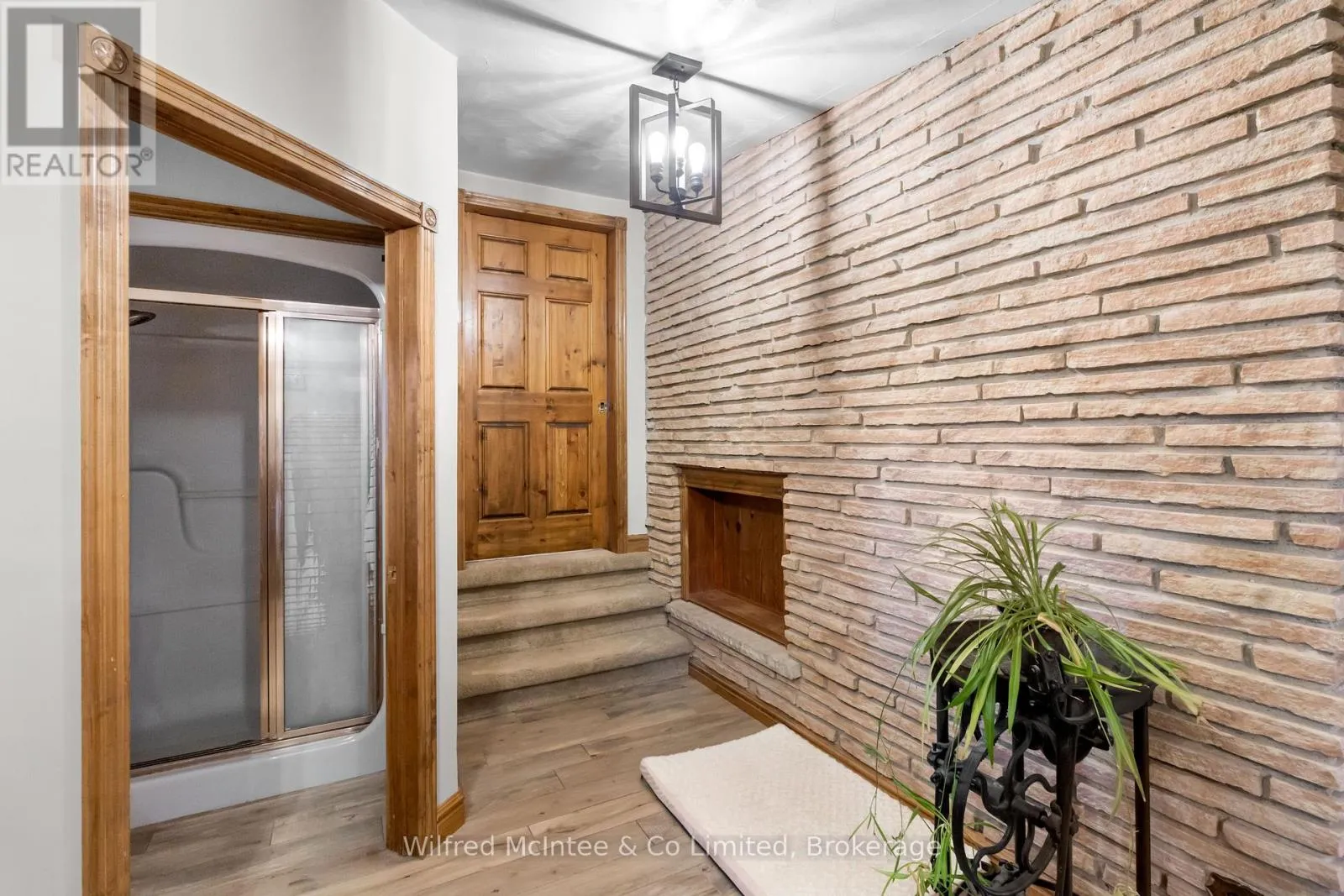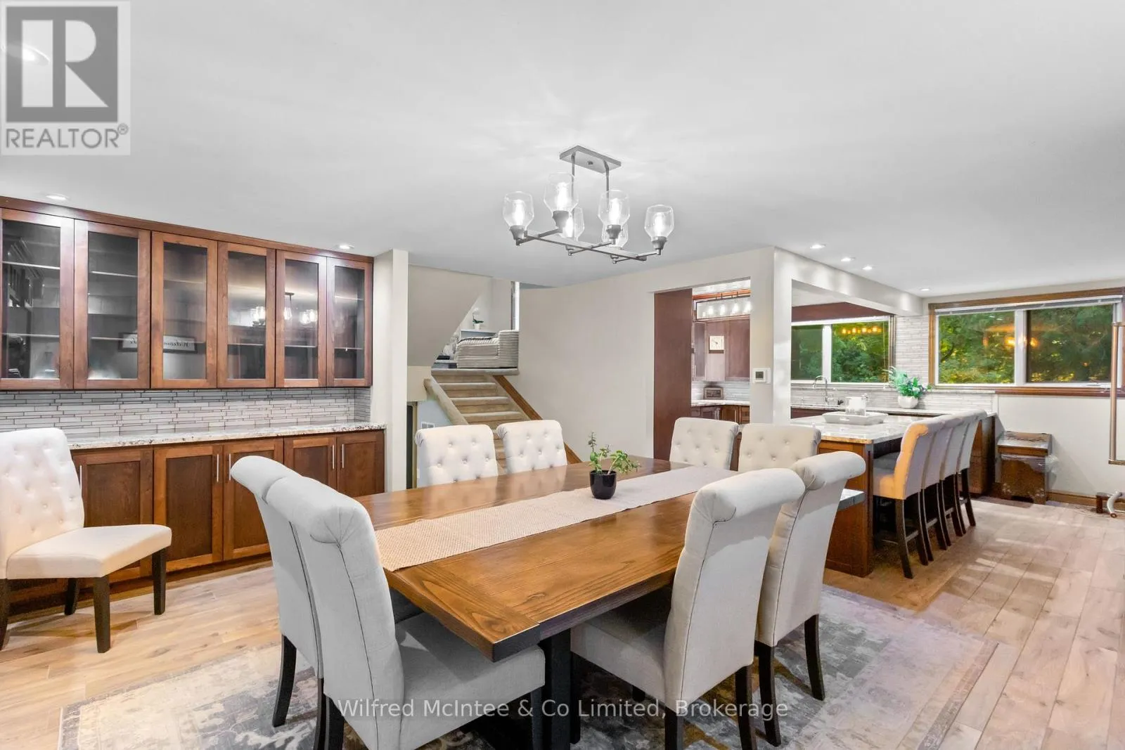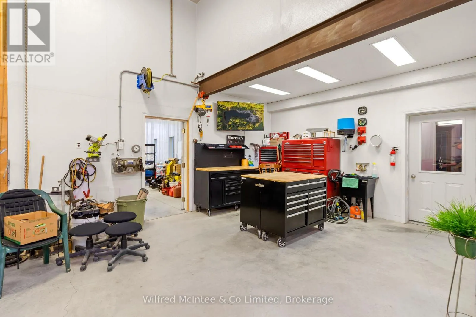 Cross Streets: Grey Rd 4. ** Directions: 193455 30TH SIDEROAD NDR, HANOVER ON, N4N 3B8; North off Grey Rd 4 between Hanover and Durham, Property on right hand side. Set on 8.9acres, this first time on market, one-of-a-kind property invites you to live, work, and play without compromise. Featuring a 4 bed, 2 bath 2800sqft home, 4784sqft commercial grade shop with offices, 850sqft outbuilding, & 320sqft cabin with bathroom overlooking the pond. With parking for over 20, this property is designed for convenience, gatherings, and the flexibility to expand your business. Step inside the imaculate mid century modern home and discover a space that balances warmth & function. Characterized by clean lines, open-concept layout, and a deep connection to nature through expansive windows and the integration of wood, stone, and brick accents. The foyer welcomes you, leading into a sun-filled, open-concept dining and kitchen area where custom cherry wood cabinetry, granite countertops, and built-in appliances combine elegance and practicality. Off the kitchen, a bright sunroom with heated floors and a wood stove frames stunning country views, the perfect spot for coffee at sunrise or a glass of wine at dusk. The living room, with its soaring 12ft ceilings and custom stone fireplace, leads to the primary suite, where 6 large windows overlook the landscaped yard. Upstairs, 3 bedrooms and a full bathroom with dual sinks offer plenty of space. The finished basement features a large rec room, custom cabinetry, laundry room, and a cold cellar. Just steps from the home is a 4,784sqft. heated shop; complete with in-floor heat, 3 overhead doors, 3 offices, parts room, 2pc bathroom, plus a 1 bed, 1 bath apartment. The property also includes a smaller heated outbuilding/garage, and beside the spring fed pond is a cabin. Surrounded by towering trees, and complete privacy, this is made for bonfires, paddle boating, and summer barbecues. At night, relax by the woodstove as you watch the glow of a private waterfall. This property isn't just a home, it's a lifestyle. A private country sanctuary where your business, family, and leisure can thrive together. (id:27476)