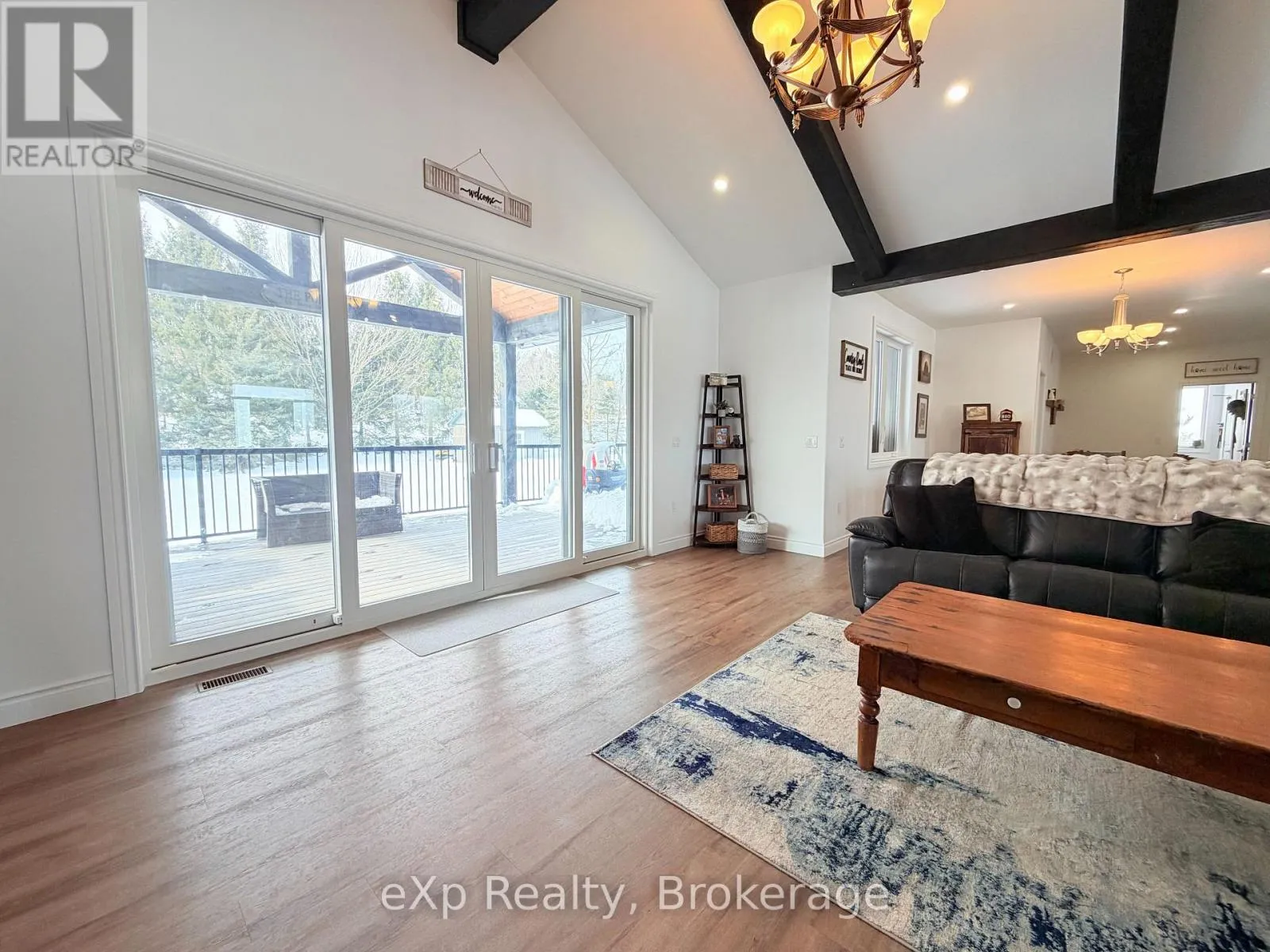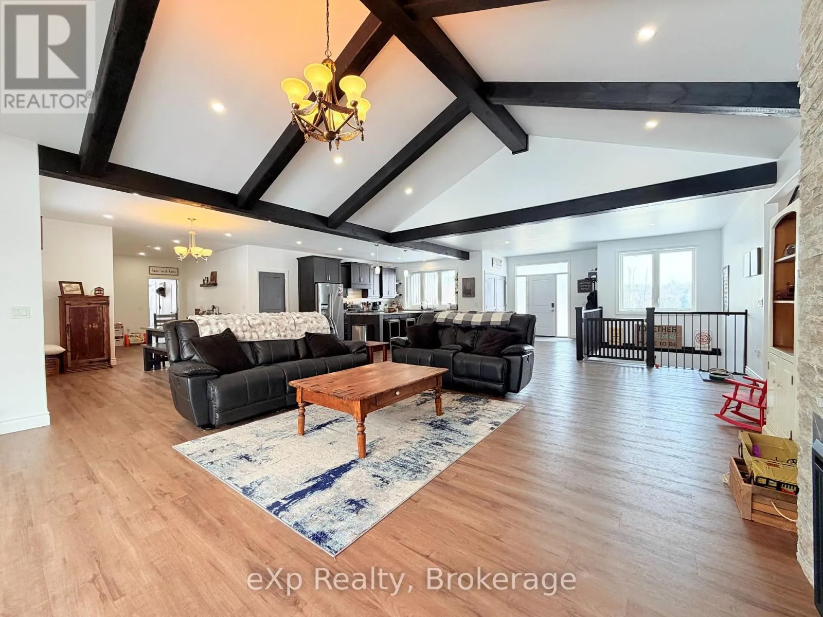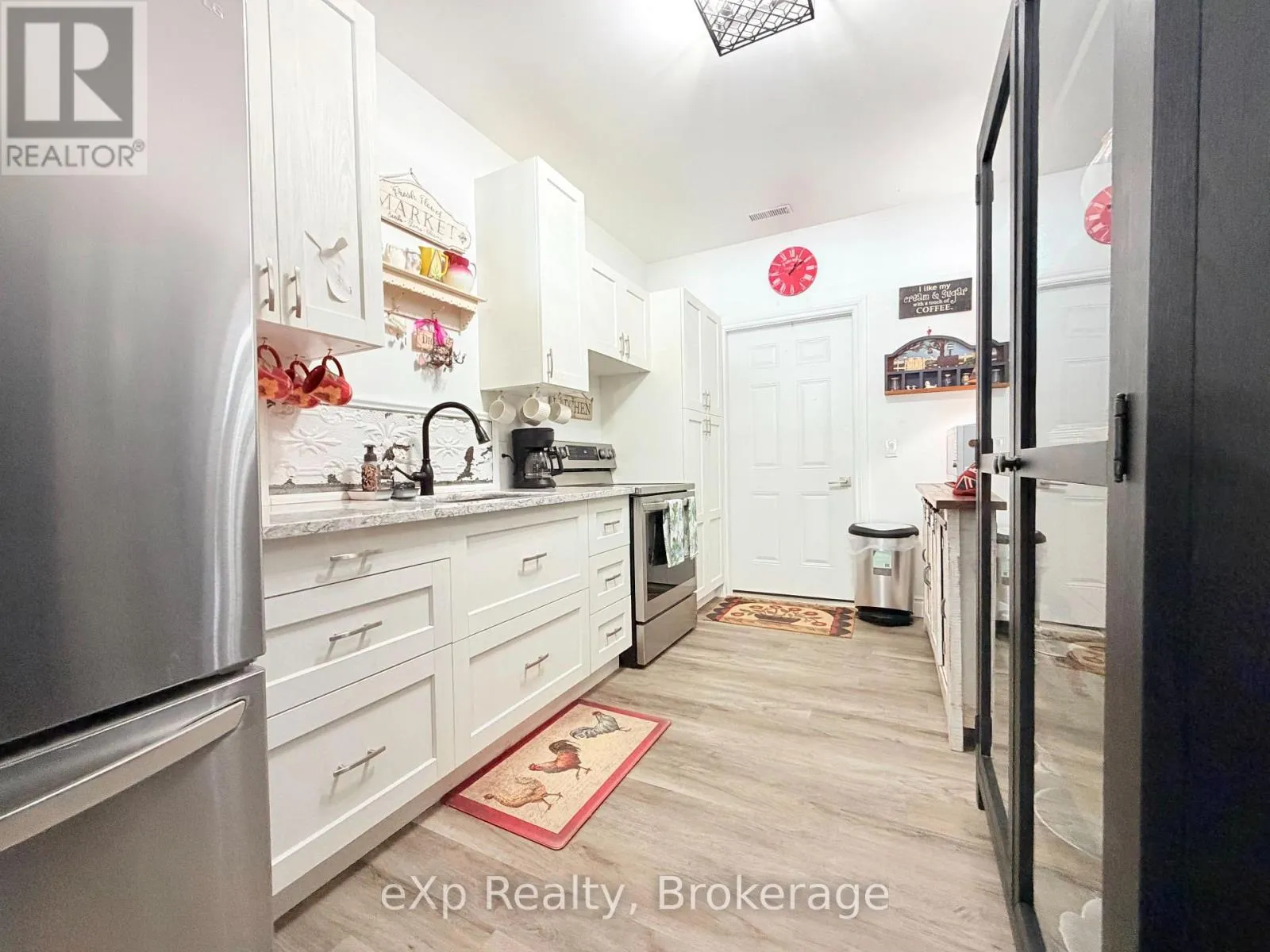 Cross Streets: Albert Street. ** Directions: South on Grey Road 3 into Ayton, turn left onto Victoria Street and then make a right onto Helena Street to #133. Welcome to 133 Helena Street in the charming town of Ayton - a thoughtfully designed custom-built home that offers exceptional space and seamless living. Step inside to an impressive oversized great room with sweeping views of the rear yard. The open-concept layout creates flow, connecting the stunning kitchen with stone countertops, a large island perfect for entertaining, and ample space for gatherings - large living area with oversized patio doors that open onto a covered porch. One wing of the home provides two generously sized bedrooms and a full bathroom, while the opposite wing is dedicated to a primary bedroom which includes a walk-through closet, a lovely ensuite bathroom, and direct access to the covered porch for ultimate privacy and convenience. The fully finished lower level delivers complete in-law opportunities, complete with a full kitchen, living room, dining area, and three additional bedrooms - plus convenient walk-up access to the oversized garage. Outside, enjoy a private yard with peaceful country views, all complemented by the small-town amenities Ayton has to offer. This home truly has it all-style, functionality, and room to grow. (id:27476)