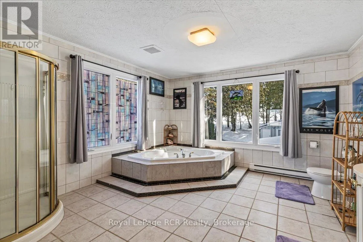 Cross Streets: 5th Sideroad NDR. ** Directions: From Hanover turn North at Canadian Tire - follow County Rd 28 - turns into 5th Sideroad NDR to Kingston Dr. on West side of road just past Concession 6. Picturesque Waterfront Perfection! Have you been dreaming of the perfect waterfront property where you and your family can make memories all year round? Welcome to your new home on the water-an inviting retreat that's ready for you to enjoy every season. As you approach, you'll notice a small, friendly community of neighbours. Down the driveway, a beautiful two-storey home greets you with a spacious foyer, a cozy living room with breathtaking lake views, and a grand fieldstone propane fireplace that's perfect for gatherings. The large eat-in kitchen has been updated and the dining area offers lovely views of the lake, while the main floor also features laundry, a powder room, and a family room with deck access and more lake views. Upstairs, you'll find three comfortable bedrooms, an office, and a well-appointed bathroom. The primary suite includes a generous walk-in closet and a luxurious five-piece ensuite. With both an attached and a detached garage/shop, handy storage sheds, roof replaced in 2024, a newer deck and dock, and some of the most stunning sunsets you'll ever see, this is truly a place to call home. Experience the peaceful, friendly atmosphere of Habermehl Lake and imagine all the wonderful moments you'll share with family and friends at this spectaular waterfront home. (id:27476)