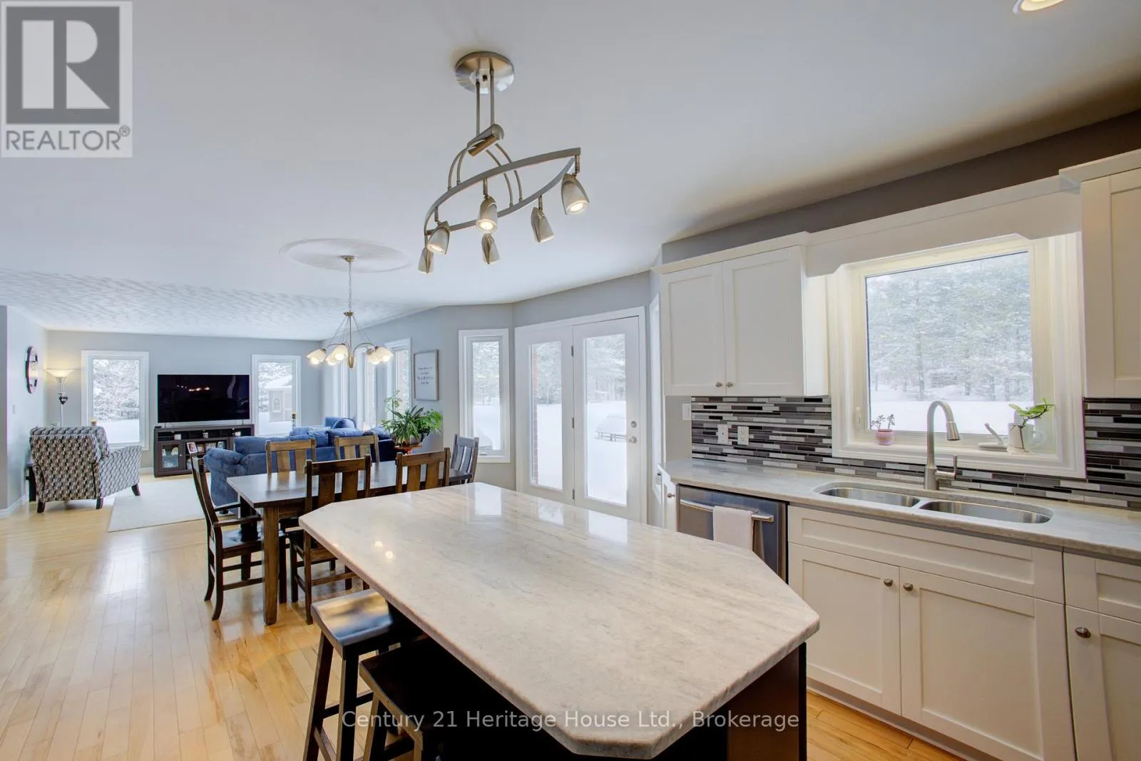 Cross Streets: Durham Road East & Concession 2. ** Directions: East from Garafraxa Street N onto Durham Rd E approximately 2.4 kms to property on the North side of the road. Welcome to 323237 Durham Road E, West Grey - This immaculately maintained family home offers the best of both worlds. Within walking distance to the Town of Durham and the Conservation Area, this family home sits on a very private 4-acre lot, with large front and back greenspace, as well as a mixed bush to roam. This stunning home is a must-see! The main floor boasts a large family kitchen with granite countertops and a large island, open-concept dining and living area, as well as a bonus room currently set up as a den but could be used as a formal dining area, playroom, or main floor bedroom for multi-generational living. Lots of natural light throughout, and main floor laundry with a 2-piece bath complete the main area, along with garage access. The 40 x 20 private stamped concrete patio is perfect for hosting and provides a tranquil view of the backyard. Upstairs, there are 4 spacious bedrooms, a full guest bath, and a primary suite featuring his-and-hers custom closets, as well as an updated en-suite bathroom. The fully finished lower level comes with a gas fireplace, providing additional comfort with extra living or recreational space and ample storage. A separate stairwell leading from the garage to the basement allows for easy access. This home also has a large attached double car garage and an oversized storage shed for all your storage needs. The paved driveway enhances the curb appeal of the home, with well-maintained and established flower beds.This home is walking distance to downtown amenities and is only steps away from the local conservation area/park with many trails at your convenience. This gorgeous property is ready for you to call it home. (id:27476)