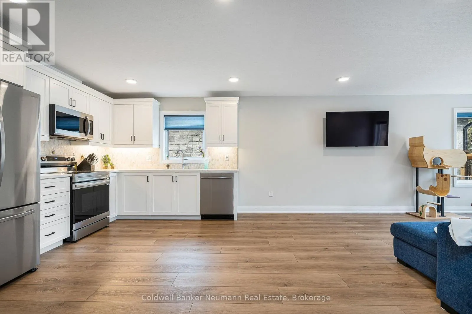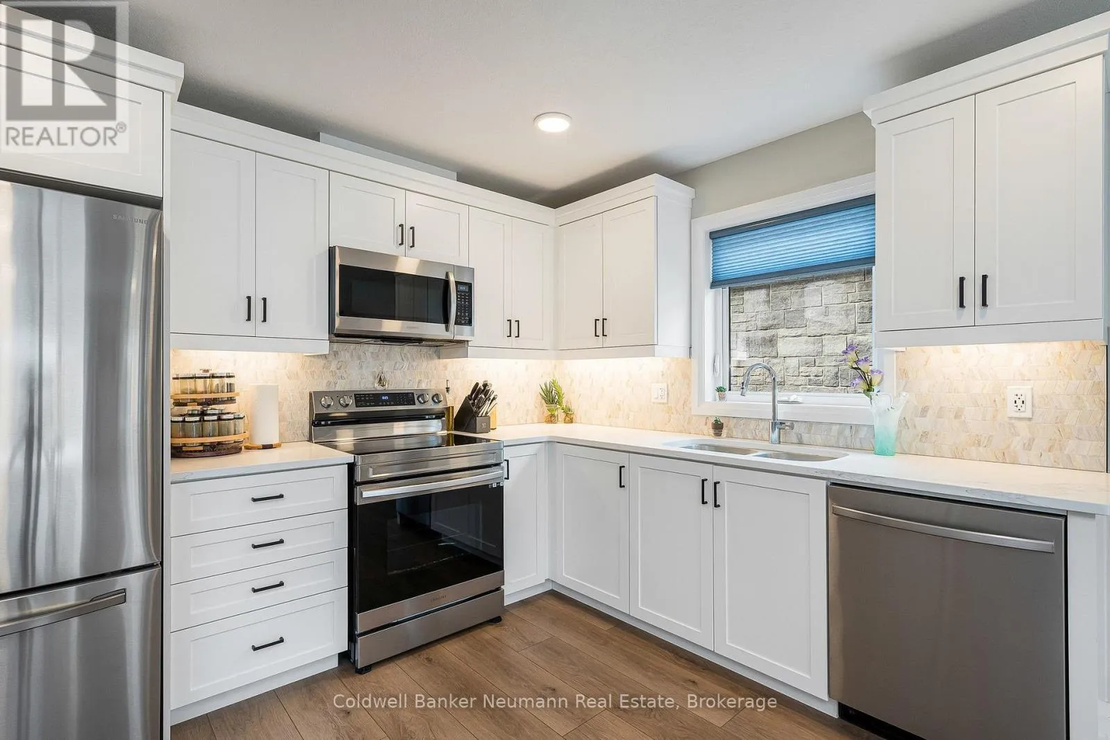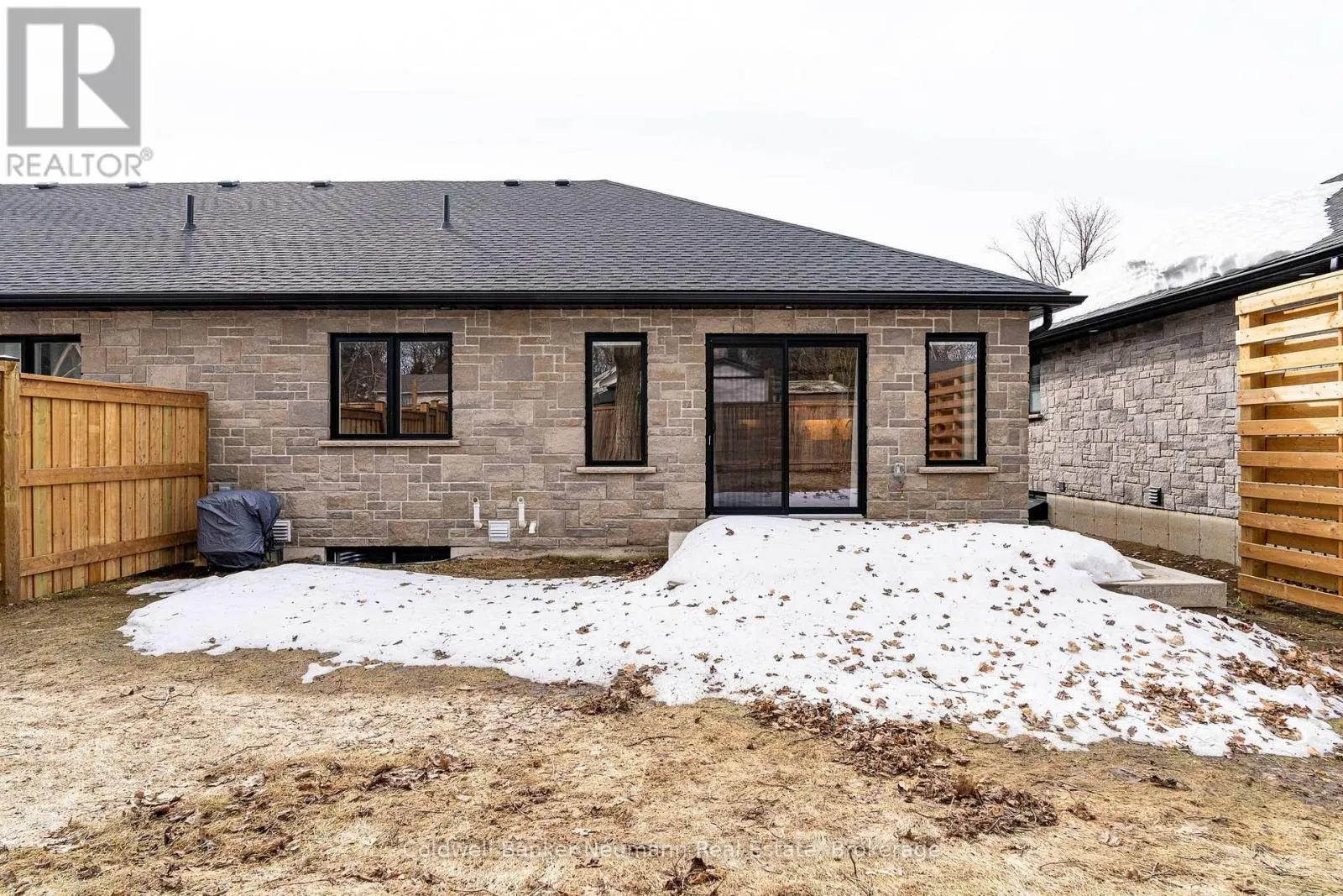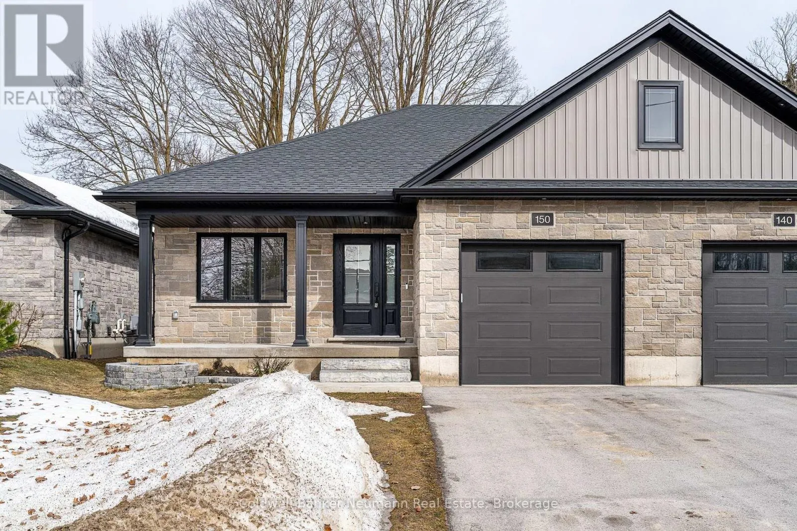 Cross Streets: William Street. ** Directions: Getting into Durham from HWY 6/Garafraxa St. N, head to Durham Rd W., turn left (west), property on right (north) side. A fabulous, nearly new, stone end unit bungalow in the quaint town of Durham! Built with generous room sizes, appealing finishes, and bright and open spaces, this one is sure to meet your checklist. The main floor features everything you need on a daily basis, with vinyl plank flooring throughout, modern flush-mount lighting and neutral colours. The main living area is airy, with an open concept eat-in kitchen area, featuring white cabinetry, dark hardware, custom backsplash, quartz countertops, stainless appliances, all overlooking the living room at the rear. The living space is sizeable, and features sliding doors to the partially-fenced rear yard and concrete patio area. There is a spacious main floor bedroom as you enter, with the larger, primary bedroom at the rear. A generous sized 3pc main bathroom, and a separate, handy main floor laundry closet with room for storage complete the main level. The basement is finished, with large rec room, large third bedroom and 4pc bath, all in neutral tones, with tons of supplementary storage space in both the utility area and a separate front room. Single car attached garage (with EV charging station), and parking for two cars in the driveway. Completely carpet free, ready to move into, with all newer mechanicals. Ideal for couples and young families, downsizers or empty nesters! If quiet, small-town living has been calling your name, but you'd like to be near some basic amenities, 150 Durham Road West may be what you've been looking for! (id:27476)