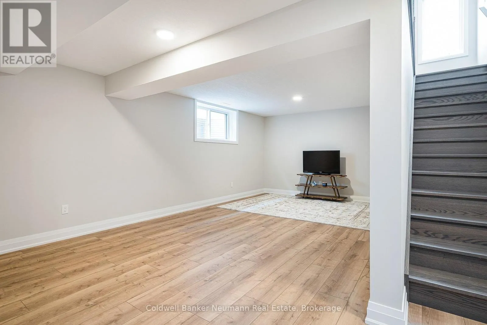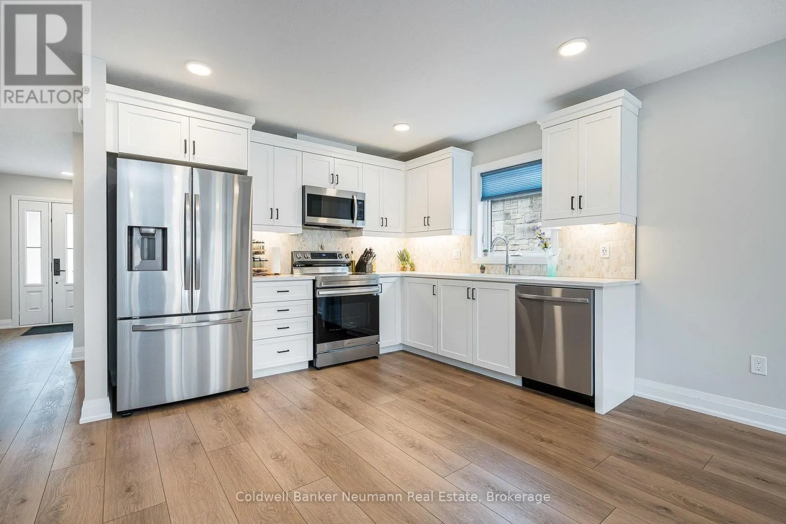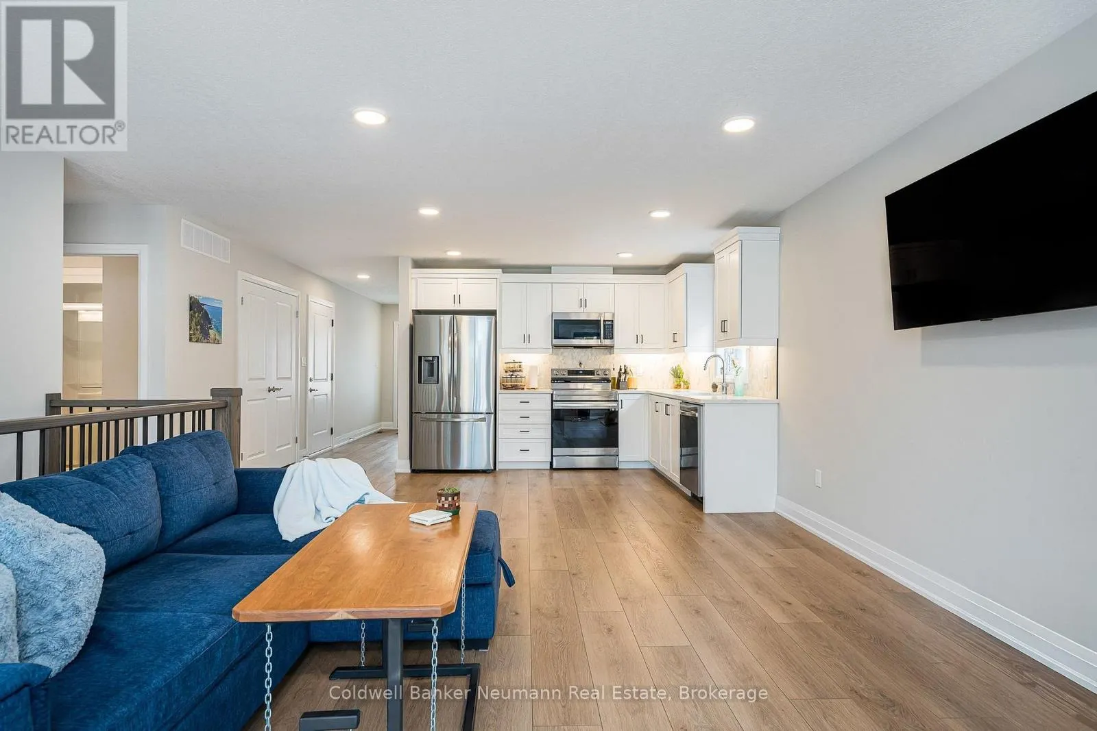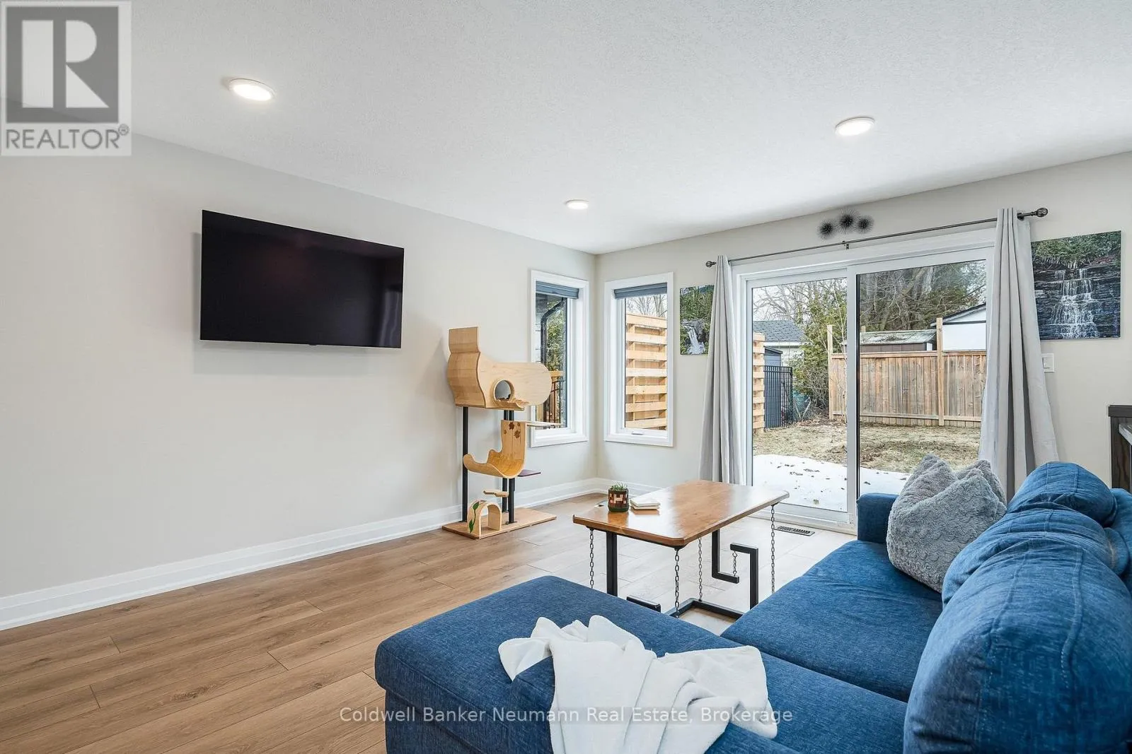 Cross Streets: William Street. ** Directions: Getting into Durham from HWY 6/Garafraxa St. N, head to Durham Rd W., turn left (west), property on right (north) side. A fabulous, nearly new, stone end unit bungalow in the quaint town of Durham! Built with generous room sizes, appealing finishes, and bright and open spaces, this one is sure to meet your checklist. The main floor features everything you need on a daily basis, with vinyl plank flooring throughout, modern flush-mount lighting and neutral colours. The main living area is airy, with an open concept eat-in kitchen area, featuring white cabinetry, dark hardware, custom backsplash, quartz countertops, stainless appliances, all overlooking the living room at the rear. The living space is sizeable, and features sliding doors to the partially-fenced rear yard and concrete patio area. There is a spacious main floor bedroom as you enter, with the larger, primary bedroom at the rear. A generous sized 3pc main bathroom, and a separate, handy main floor laundry closet with room for storage complete the main level. The basement is finished, with large rec room, large third bedroom and 4pc bath, all in neutral tones, with tons of supplementary storage space in both the utility area and a separate front room. Single car attached garage (with EV charging station), and parking for two cars in the driveway. Completely carpet free, ready to move into, with all newer mechanicals. Ideal for couples and young families, downsizers or empty nesters! If quiet, small-town living has been calling your name, but you'd like to be near some basic amenities, 150 Durham Road West may be what you've been looking for! (id:27476)