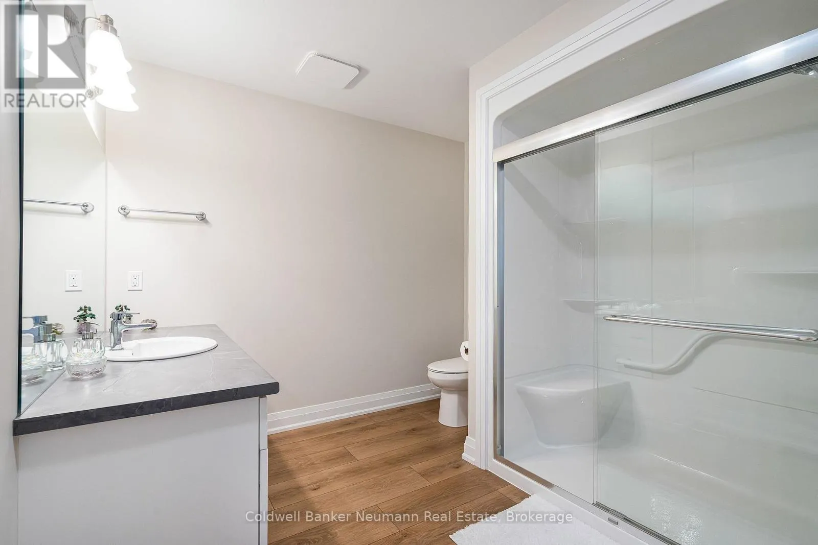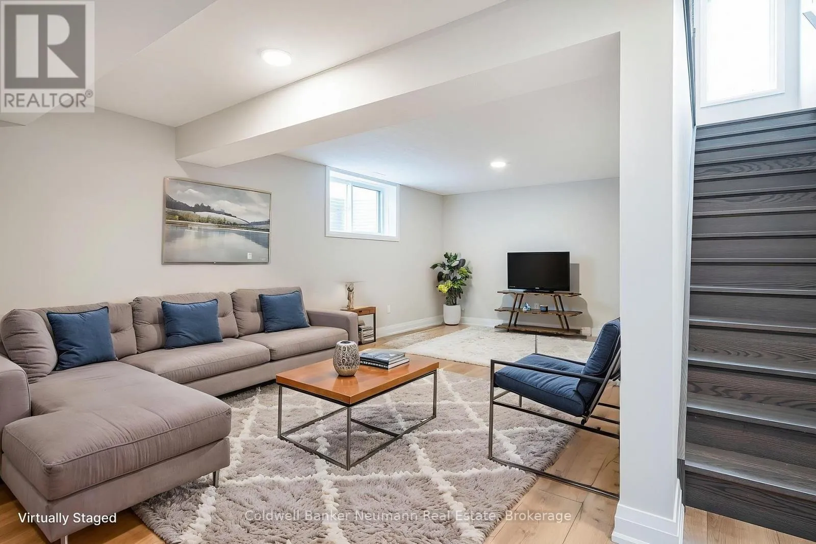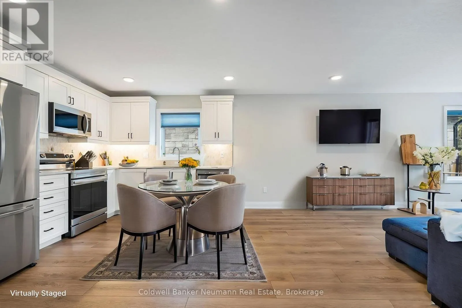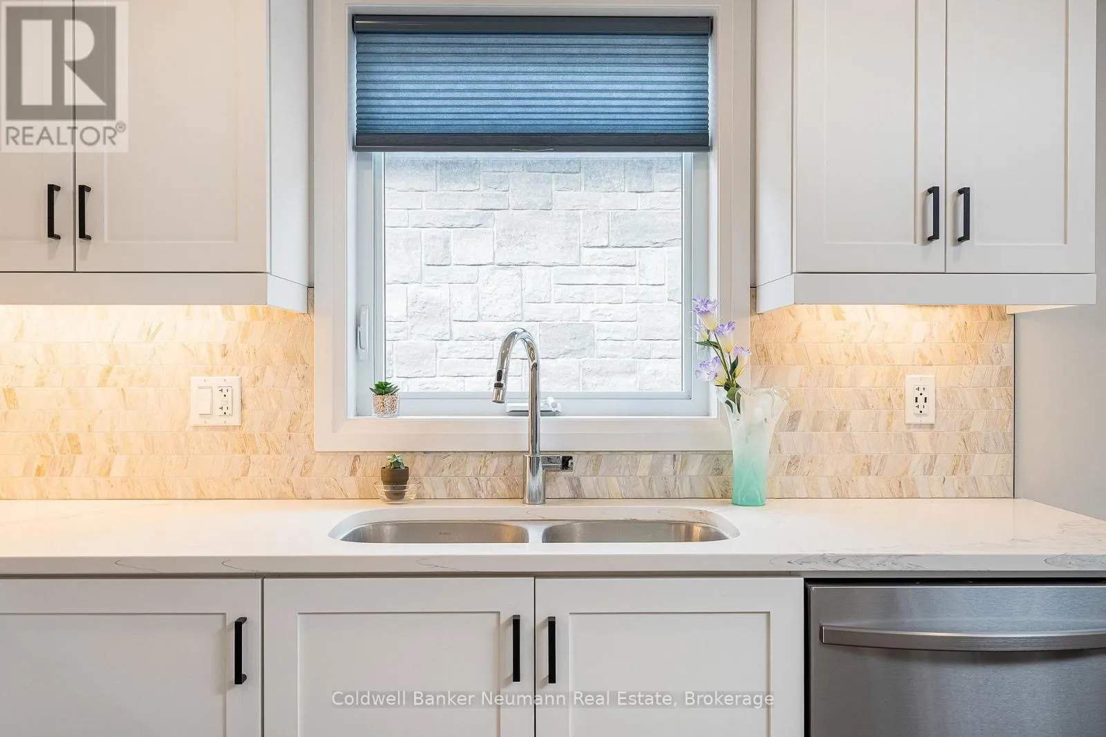 Cross Streets: William Street. ** Directions: Getting into Durham from HWY 6/Garafraxa St. N, head to Durham Rd W., turn left (west), property on right (north) side. A fabulous, nearly new, stone end unit bungalow in the quaint town of Durham! Built with generous room sizes, appealing finishes, and bright and open spaces, this one is sure to meet your checklist. The main floor features everything you need on a daily basis, with vinyl plank flooring throughout, modern flush-mount lighting and neutral colours. The main living area is airy, with an open concept eat-in kitchen area, featuring white cabinetry, dark hardware, custom backsplash, quartz countertops, stainless appliances, all overlooking the living room at the rear. The living space is sizeable, and features sliding doors to the partially-fenced rear yard and concrete patio area. There is a spacious main floor bedroom as you enter, with the larger, primary bedroom at the rear. A generous sized 3pc main bathroom, and a separate, handy main floor laundry closet with room for storage complete the main level. The basement is finished, with large rec room, large third bedroom and 4pc bath, all in neutral tones, with tons of supplementary storage space in both the utility area and a separate front room. Single car attached garage (with EV charging station), and parking for two cars in the driveway. Completely carpet free, ready to move into, with all newer mechanicals. Ideal for couples and young families, downsizers or empty nesters! If quiet, small-town living has been calling your name, but you'd like to be near some basic amenities, 150 Durham Road West may be what you've been looking for! (id:27476)