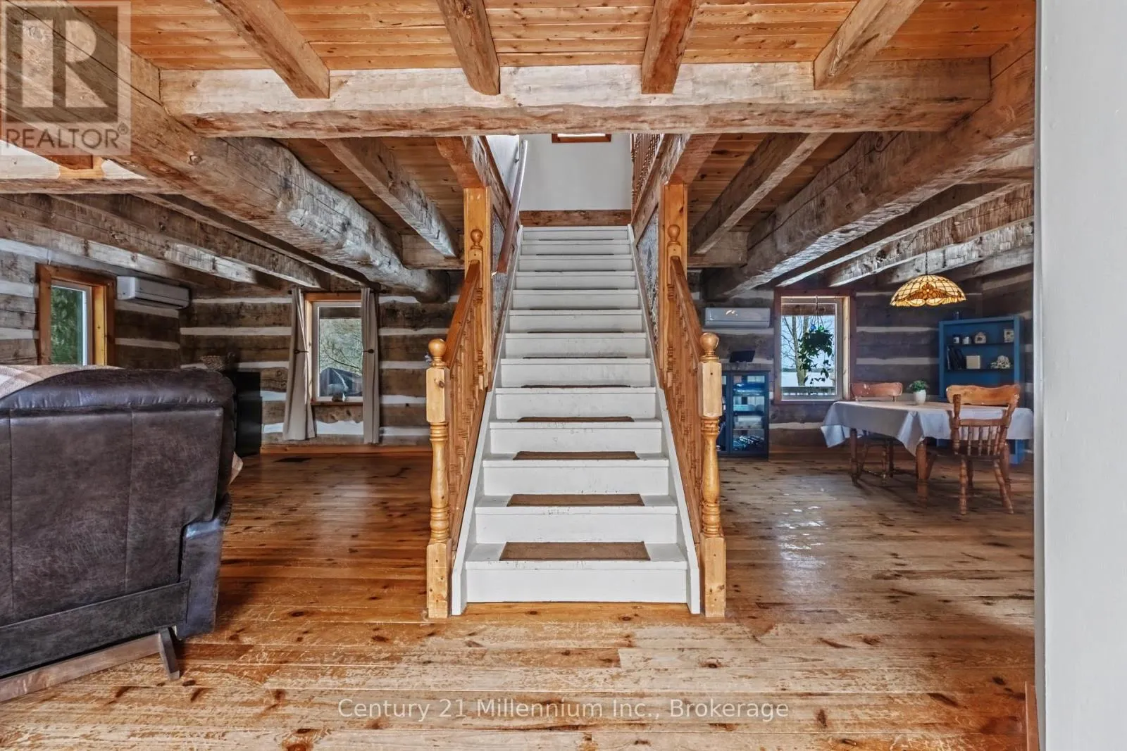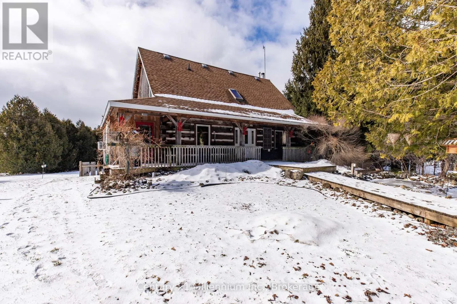 Cross Streets: Concession Rd 2 & 12th Sideroad WGR. ** Directions: From Grey Road 12, travel west to Highway 6 and continue straight onto 9th Sideroad. Turn south onto Concession 2 WGR and follow to the property located on the east side of the roadUse Waze instead of Google maps for best navigation results. Tranquil Log Home Retreat on 2 Private Acres in the Heart of West Grey. Tucked back from the road behind a beautifully treed frontage, this charming log home offers the rustic character and natural warmth that make country living so special. Set on a peaceful 2 acre parcel, the property blends privacy, nature, and comfort in an inviting rural setting. Inside, exposed beams, rich wood finishes, and the authentic craftsmanship of the log construction create a warm and welcoming atmosphere throughout the home. The upper level features 3 bedrooms, including a spacious primary retreat with a private balcony overlooking the serene property - an ideal spot to enjoy morning coffee or take in quiet sunset views. The walk-out lower level provides additional living space and is highlighted by a cozy wood stove, creating the perfect setting for relaxing evenings during the cooler months. Outdoors, perennial gardens, a decorative pond, and a fenced backyard area add charm and character to the landscape, while several outbuildings provide useful storage and versatility. The grounds offer a beautiful balance of open lawn and natural surroundings, creating a peaceful setting to enjoy the outdoors year-round. An added bonus is the transferable solar microFIT contract, offering value and supplemental income potential. Conveniently located just minutes from the shops, restaurants, and amenities of Durham, and within easy driving distance of Hanover, Markdale, and Owen Sound, this property offers an exceptional opportunity to experience the tranquility of Grey County countryside living without sacrificing convenience. (id:27476)