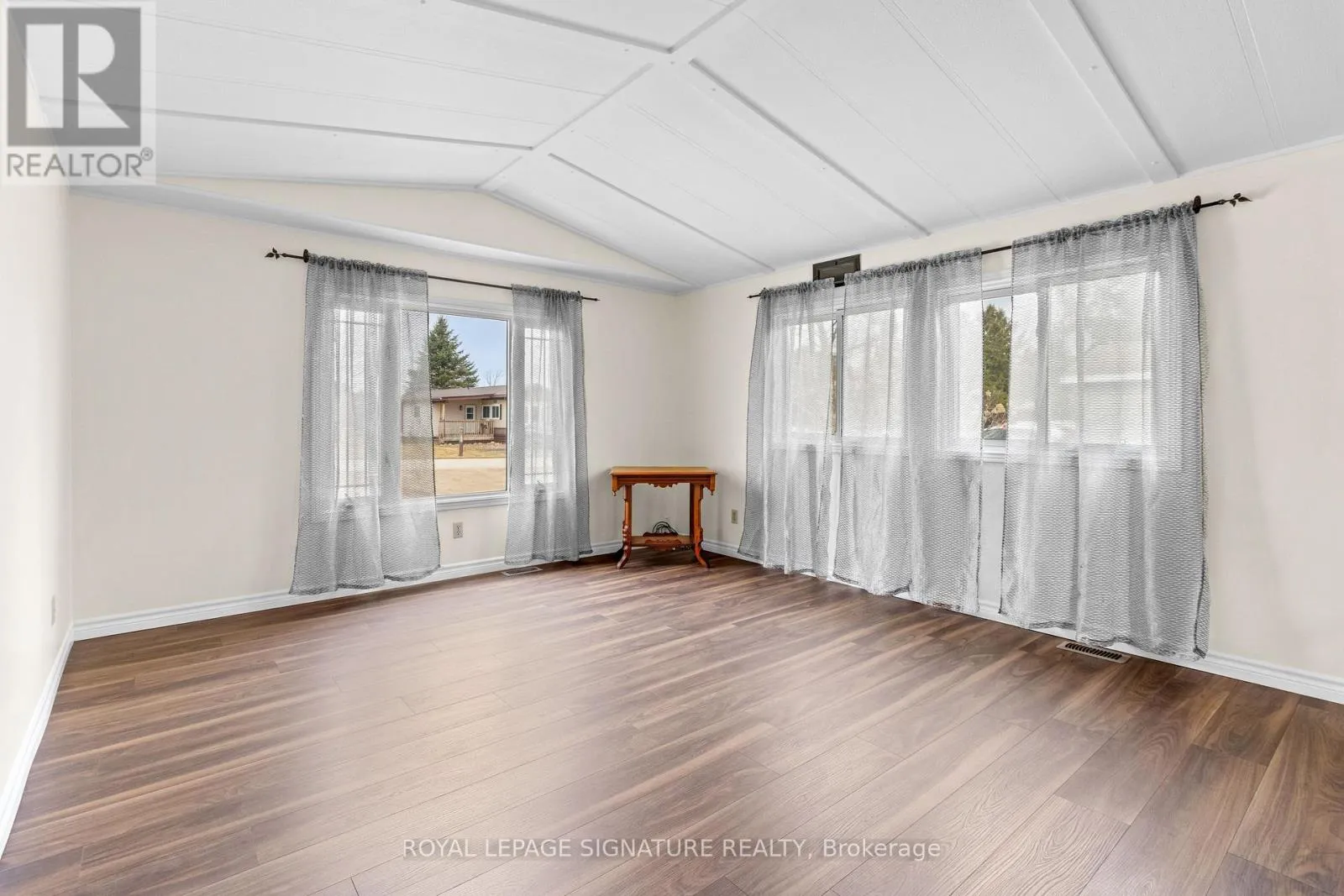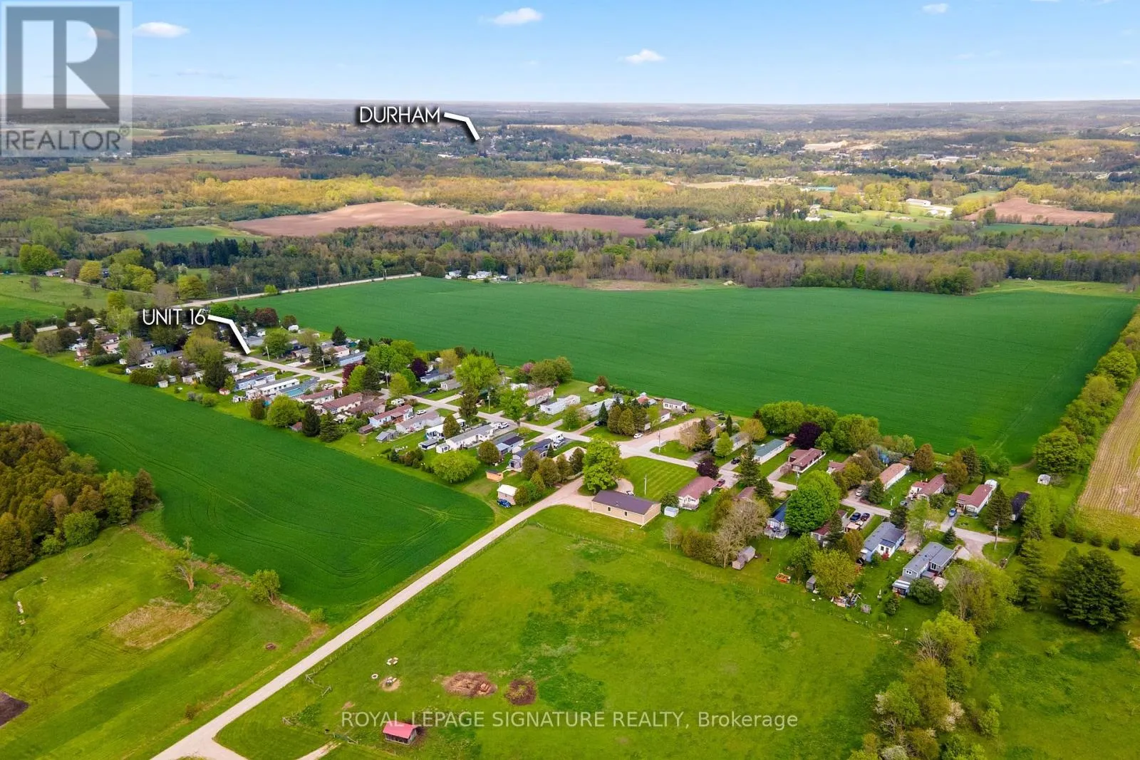 Douglas St & Concession Rd 2 Welcome Home to 302694 Unit 16 Douglas St, Durham. This 55+ community is located in a well-maintained, quiet community. If you are looking to downsize, this unit offers a peaceful retreat with all the essentials. This home is very unique with large windows flooding the open-concept living area with natural light, and a vaulted ceiling creates a warm and inviting atmosphere. The home has been updated with a brand new continuous floor throughout and fresh paint. This home is very well cared for and maintained. Upgrades: New waterproof continuous flooring 2026, AC/Furnace - new 2021, Roof - new 2020, Water Heater - new June 2019, Washer & Dryer- new 2019, Stove & Fridge - new 2018, Exhaust fan - new 2024, Living room windows - new 2018, all other - new 2024. Monthly Fee ($690/mth + HST) Includes - Land Lease Fee: The cost for renting the lot on which the home is situated. Taxes: Property taxes related to the land. Water: Water supply and testing (often noted as tested daily for quality). Septic/Waste Water: Sewage disposal services. Garbage Collection: Access to a communal garbage bin. Recycling: Bi-weekly recycling pick-up. Mail: On-site mail delivery to group box. (id:27476)