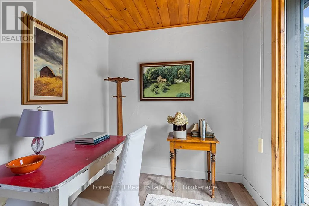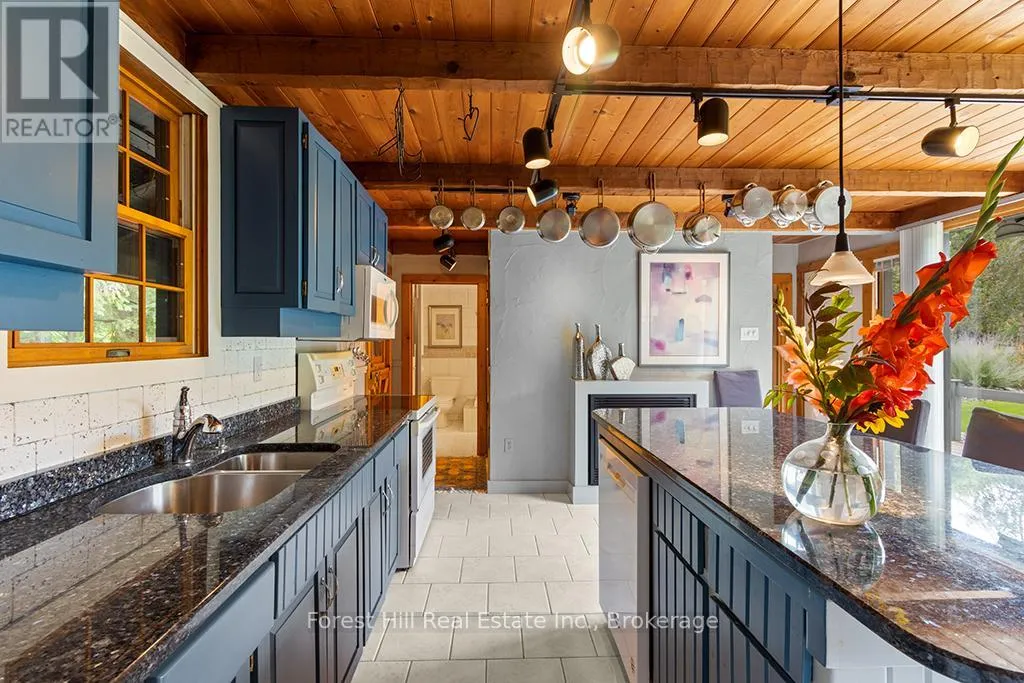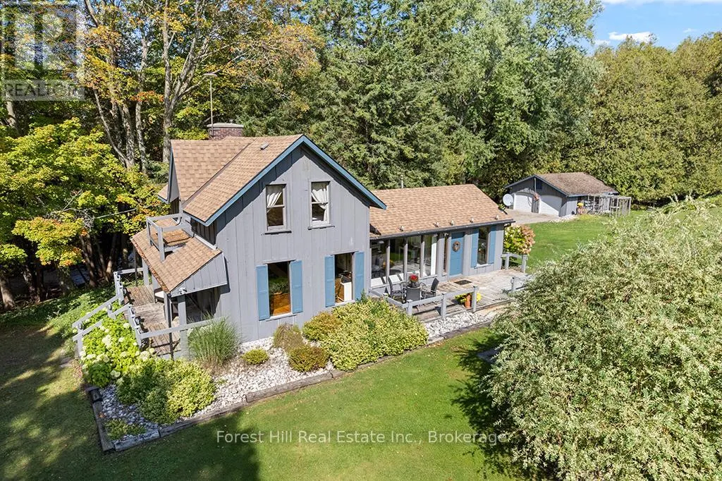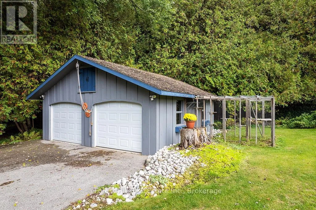 Cross Streets: Grey Rd 4 / Concession 2. ** Directions: East from Hwy 6 on Grey Rd 4 to sign on south side of road just past Concession 2. Set on 23.1 acres with Bell Creek winding through the property, this charming 1890 home offers a rare blend of heritage character, privacy and everyday convenience just 3 km from Durham. Surrounded by nature, the property features approximately 2 acres of lawn and gardens with raised beds, mature trees, and established walking trails through peaceful woodland. Two decks overlook the gardens and forest, creating the perfect setting to relax and unwind with the gentle sound of the creek in the background. Inside, the bright country kitchen is the heart of the home, complete with an generous island, oversized windows, a fireplace, and walkout to the deck. A cozy living room and dedicated office nook add to the home's comfortable and functional layout. Upstairs, you'll find two well-sized bedrooms, while the lower level offers a clean, dry space with laundry, utilities, and workshop potential. The detached double garage provides excellent storage and includes a heated area ideal for small animals, hobbies or projects. This property strikes the perfect balance - private and peaceful, yet close to everything. Enjoy easy access to shopping, schools, healthcare, and recreation in nearby Durham while 4 seasons of outdoor activities including hiking, paddling, skiing, snowmobiling, and golf are nearby. With creek frontage, useable acreage and close proximity to essential amenities, this property offers small-town living with the space and privacy of a peaceful retreat. (id:27476)