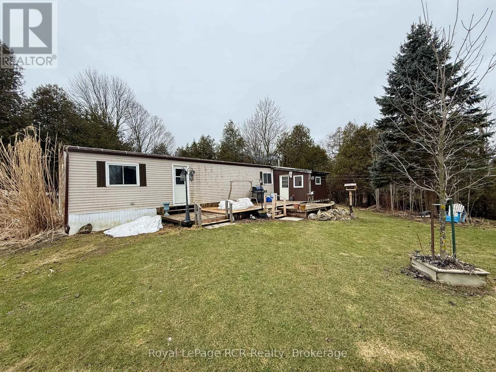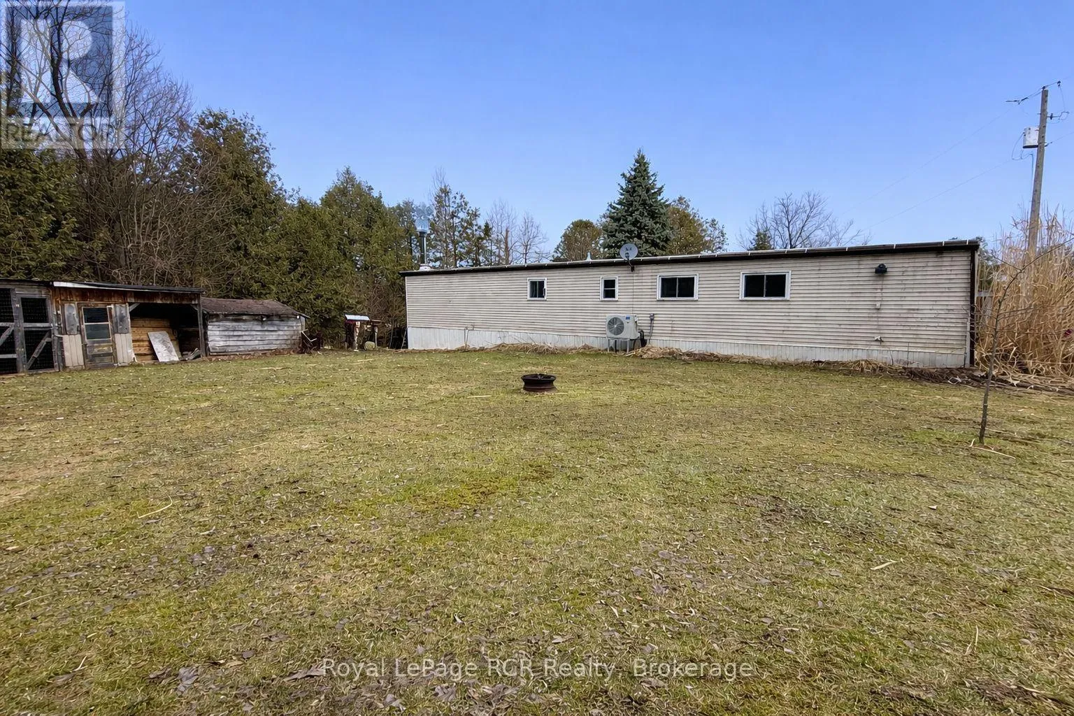 Cross Streets: Concession 10 NDR and Sideroad 5 NDR. ** Directions: Just east of Elmwood on Concession 10 NDR, just east of Sideroad 5 NDR. This 2.67 acre parcel is situated east of Elmwood, offering a rare lot size for the immediate area. The lot is predominantly level and features a creek traversing the rear portion of the acreage. The property currently accommodates a mobile home but presents a viable footprint for a new residential build. The existing residence features an open-concept kitchen and living area, configured with three bedrooms and one 4pc. bathroom with integrated laundry facilities. The eat-in kitchen has been updated with modern cabinetry. Mechanical and structural improvements include a high-efficiency electric heat pump with a heat coil for dual f/a heating and central air conditioning, a newer water heater, updated flooring, and exterior decking. The roof has also been recently treated with a protective coating. This property serves as either a move-in-ready entry-level residence or a strategic building site for those seeking rural utility with proximity to Hanover and Walkerton. Shop air compressor and tools are negotiable. (id:27476)