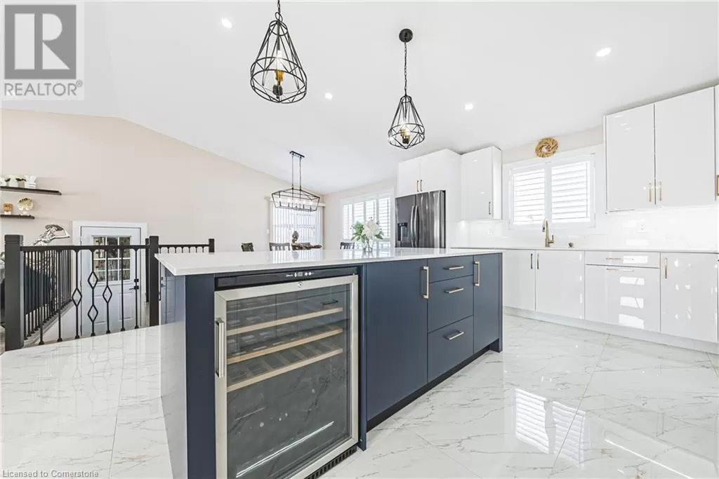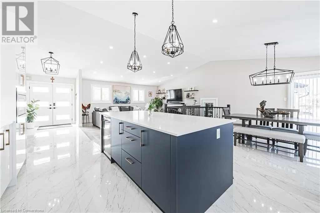 Abingdon Road & Penny Lane Welcome to this beautifully renovated bungalow nestled on a peaceful court, offering the perfect blend of country tranquility and urban sophistication. Situated on a sprawling 1.15-acre lot, this home boasts a modern design with an inviting open-concept layout, ideal for both relaxation and entertaining. Step inside to discover a bright and airy living space, highlighted by a large kitchen island, sleek finishes, and stylish fixtures. The main floor features three spacious bedrooms and two full bathrooms, providing comfort and convenience for the whole family. Downstairs, the fully finished basement offers additional living space with two more bedrooms, a cozy family room, a dedicated office space, and another full bathroomâperfect for guests or extended family. Outside, enjoy the best of both worlds with a heated 2-car garage, a large built storage shed, and a chicken coop providing fresh eggs daily. The property also features a picturesque small pond, adding to the serene outdoor setting. Located just minutes from urban amenities yet surrounded by nature, this one-of-a-kind home is a rare find. Donât miss your chance to experience modern country living at its finest! (id:27476)