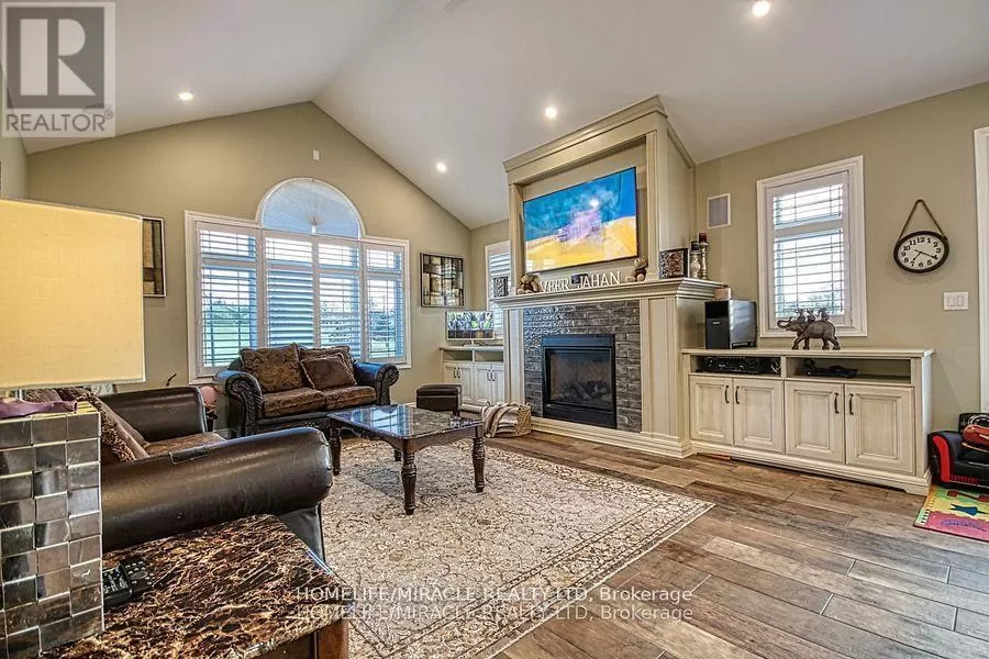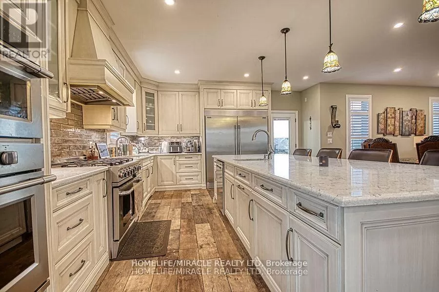 Saint Anns RD & Attema Cres Impeccable + Immaculate! Must Be Enjoyed + Admired! Dream Home On Acre Lot In A Dream Location. Custom Built Gem 4 Yr Young. Stone, Stucco + Brick Eterior. Nearly 7000 Sqft Of Exquisite Finishes, 3 + 1 Bdrms + 3 Full Bathrms + 2 Inlaw Suites beautifully finished with separate kitchens and bathrooms. Cathedral Ceilings, Vicostone Quartz Counters throughout, Hardwood + Porcelain Floors. Bright Enchanting Kitchen W/Walkout To Roofed Balcony. Massive Master + Epic Ensuite. Live In Luxury The Sophisticated Interior Will Take Your Breath Away with/ Finishes That Include, LED Pot Lights, Coffered Ceilings, Upgraded Tall Doors, California Window Shutters, Hunter Douglas Silhouette Blinds & A Mix of Stone & Maple Hardwood Flrs! The Custom Kitchen Overlooking The Breakfast & Family room is Elevated with/ a Lg Centre Island, Granite Counters, Fridgair Professional Grade Appliances & Soft Closing Drawers. The Cozy Family Rm is Adorned w/ A Custom Gas Fireplace & Beautiful Mantle. (id:27476)