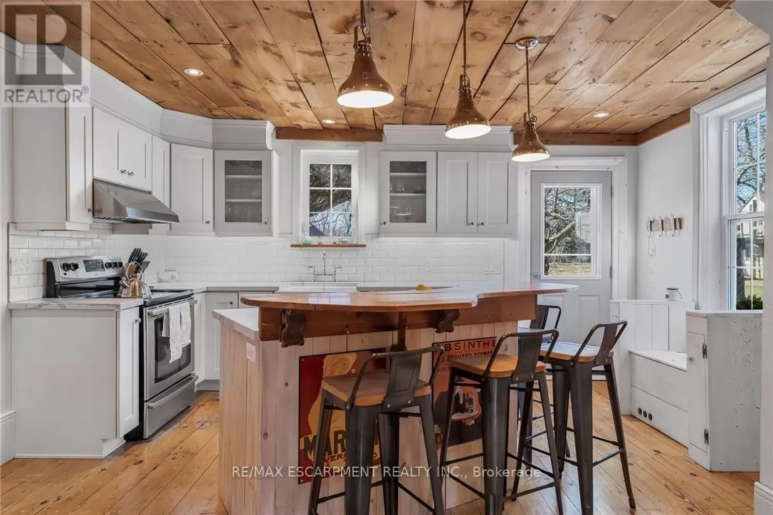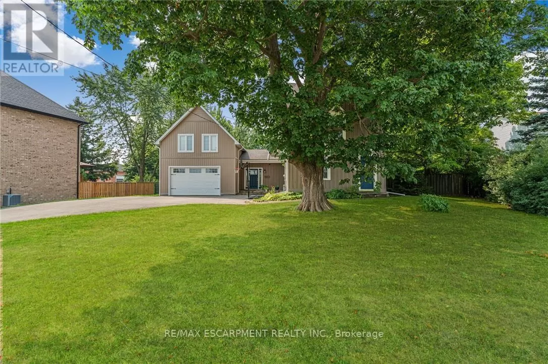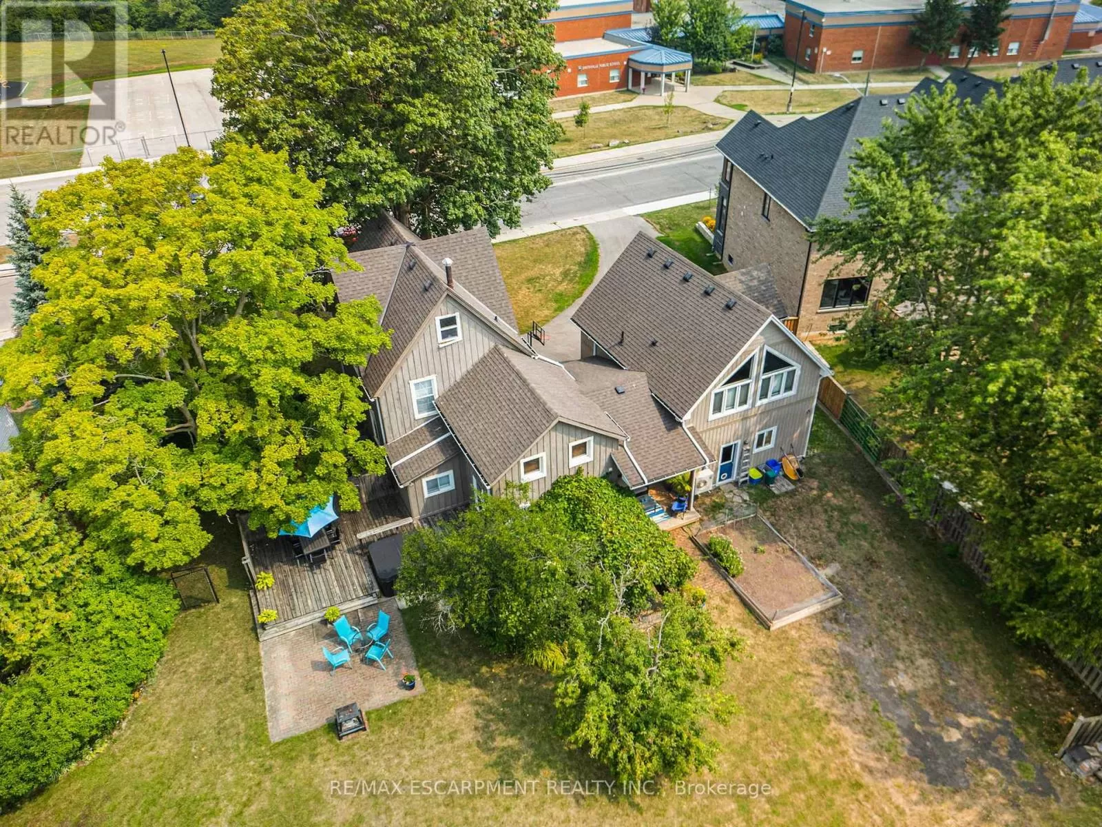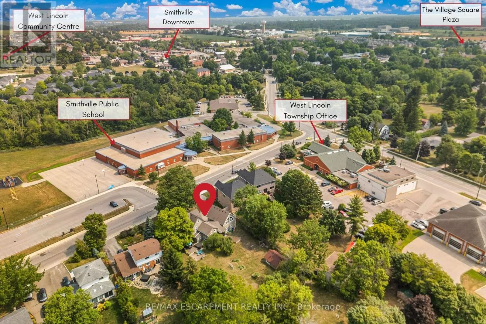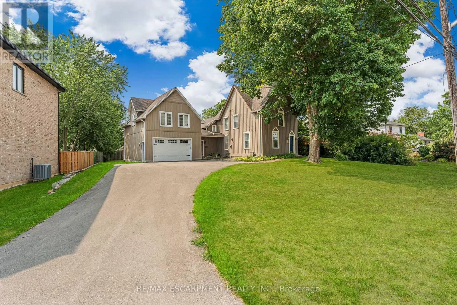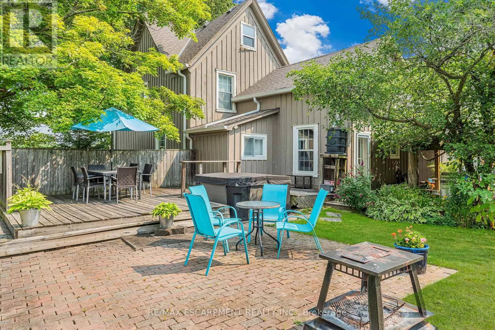 Cross Streets: Canborough Street. ** Directions: Canborough Street to Colver Street. Welcome to this beautiful 2,703 square foot rustic farmhouse built in 1880. Situated on just over half an acre, this property offers one of the largest Smithville town lots on municipal services! An addition was constructed in 2015 to add a mudroom w/ heated floor, a 1.5 car heated garage & a bonus family room above the garage w/ a 3pc bathroom. This loft could function as an office or be converted into an in-law suite! The kitchen was renovated in a classic style w/ Martha Stewart cabinetry, quartz countertops, a kitchen island & pine board ceiling. Original wood plank flooring carries throughout the main home structure, w/ 12 baseboards & wood trim throughout. A grand dining room connects seamlessly to the living room & provides the perfect entertainment space. The main floor bathroom was renovated w/ a marble shower, vinyl flooring & quartz countertop. The primary bedroom boasts a vaulted ceiling w/ wood beams & ensuite privilege to a 4pc bathroom w/ an antique clawfoot tub/shower. The front staircase leads to 2 additional bedrooms & a storage closet w/ access to a large attic space for additional storage. This extra large rear yard includes two separate decks for enjoyment, as well as a hot tub & pergola covered in vines for a cool shaded area to sit in summer. The playground structure & 2 additional outbuildings provide ample storage for equipment & a workshop area w/ hydro. Updates include shingles (17), furnace/AC/HEPA filter (22), sump pump (22), eavestroughs/downspouts (23). (id:27476)