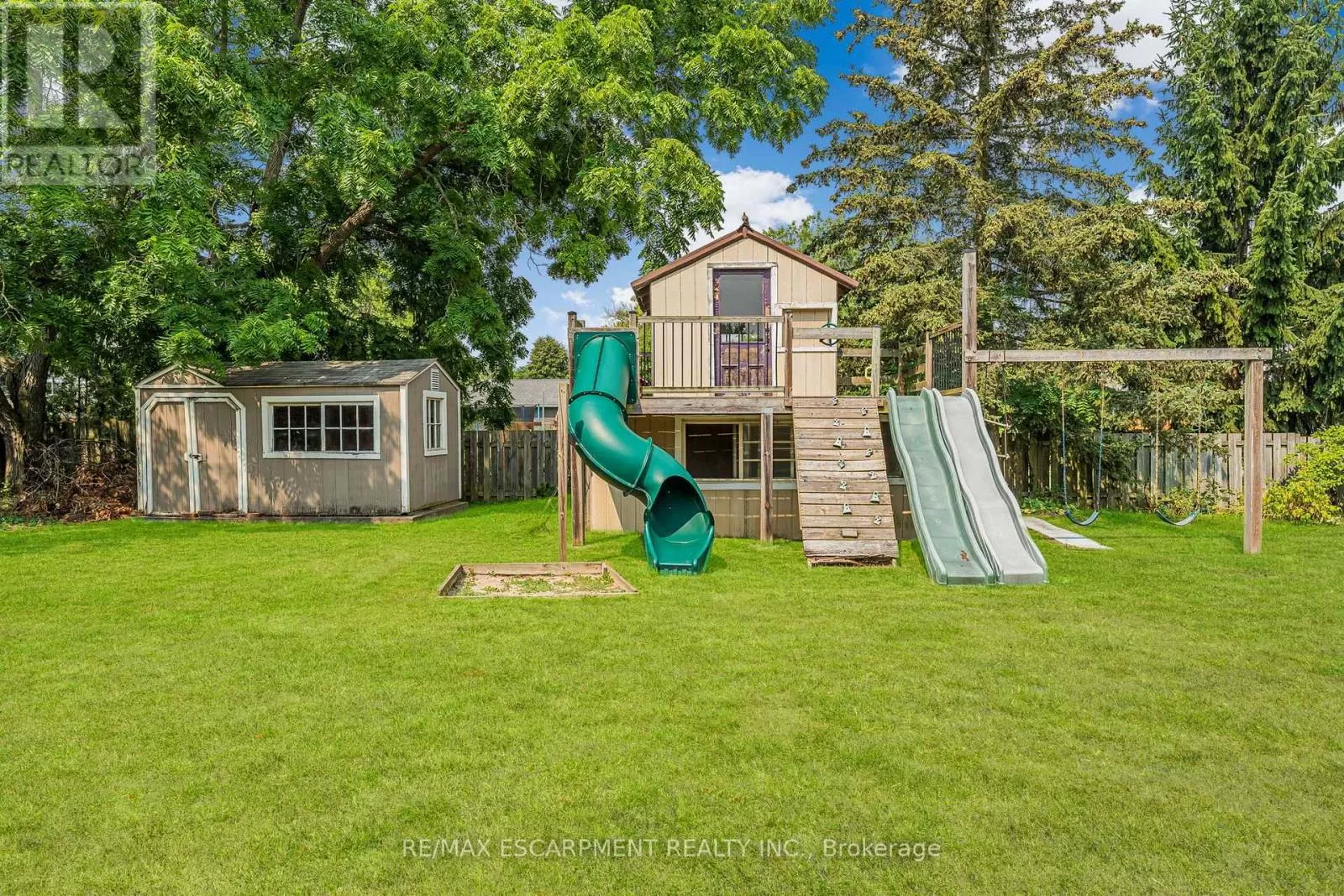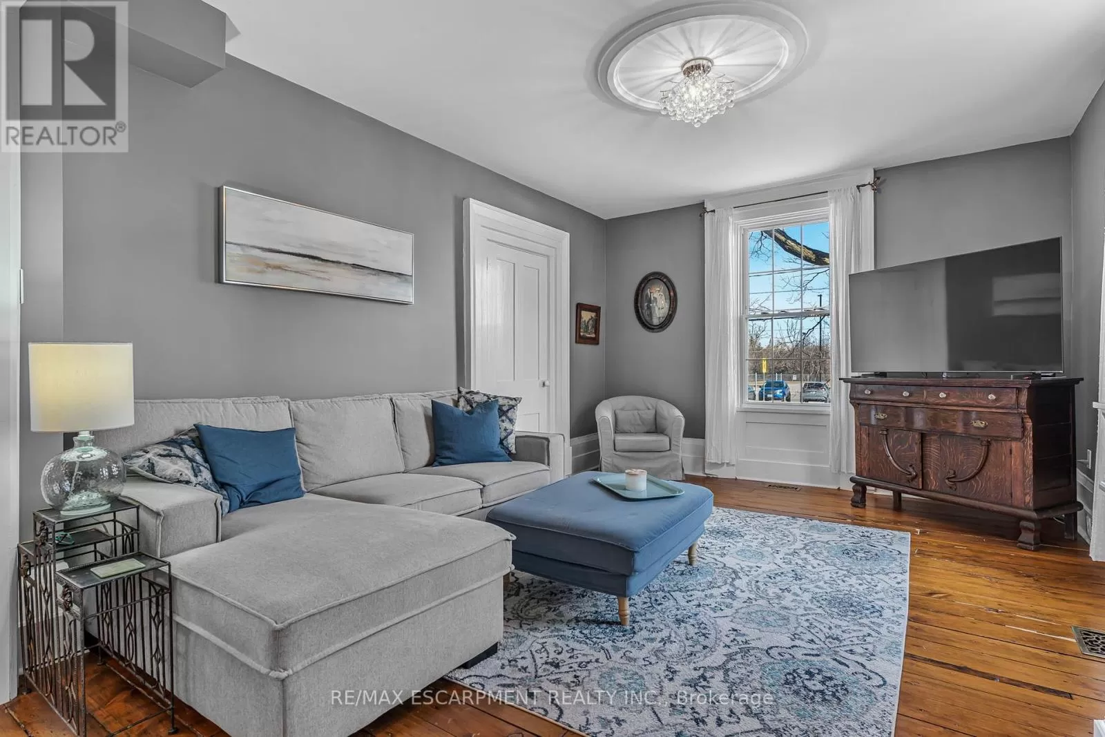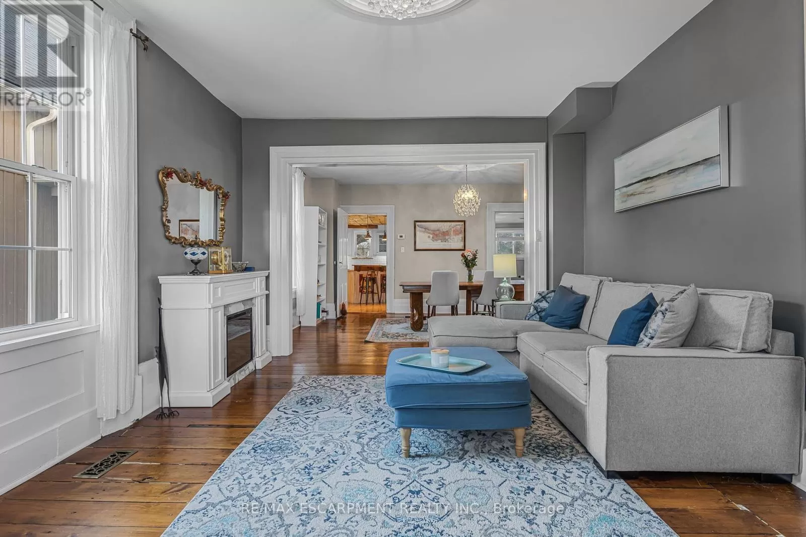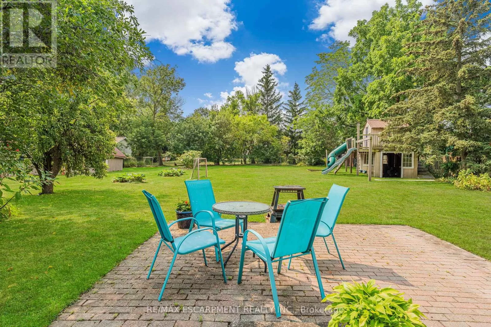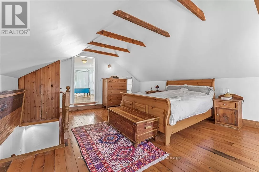 Cross Streets: Canborough Street. ** Directions: Canborough Street to Colver Street. Welcome to this beautiful 2,703 square foot rustic farmhouse built in 1880. Situated on just over half an acre, this property offers one of the largest Smithville town lots on municipal services! An addition was constructed in 2015 to add a mudroom w/ heated floor, a 1.5 car heated garage & a bonus family room above the garage w/ a 3pc bathroom. This loft could function as an office or be converted into an in-law suite! The kitchen was renovated in a classic style w/ Martha Stewart cabinetry, quartz countertops, a kitchen island & pine board ceiling. Original wood plank flooring carries throughout the main home structure, w/ 12 baseboards & wood trim throughout. A grand dining room connects seamlessly to the living room & provides the perfect entertainment space. The main floor bathroom was renovated w/ a marble shower, vinyl flooring & quartz countertop. The primary bedroom boasts a vaulted ceiling w/ wood beams & ensuite privilege to a 4pc bathroom w/ an antique clawfoot tub/shower. The front staircase leads to 2 additional bedrooms & a storage closet w/ access to a large attic space for additional storage. This extra large rear yard includes two separate decks for enjoyment, as well as a hot tub & pergola covered in vines for a cool shaded area to sit in summer. The playground structure & 2 additional outbuildings provide ample storage for equipment & a workshop area w/ hydro. Updates include shingles (17), furnace/AC/HEPA filter (22), sump pump (22), eavestroughs/downspouts (23). (id:27476)