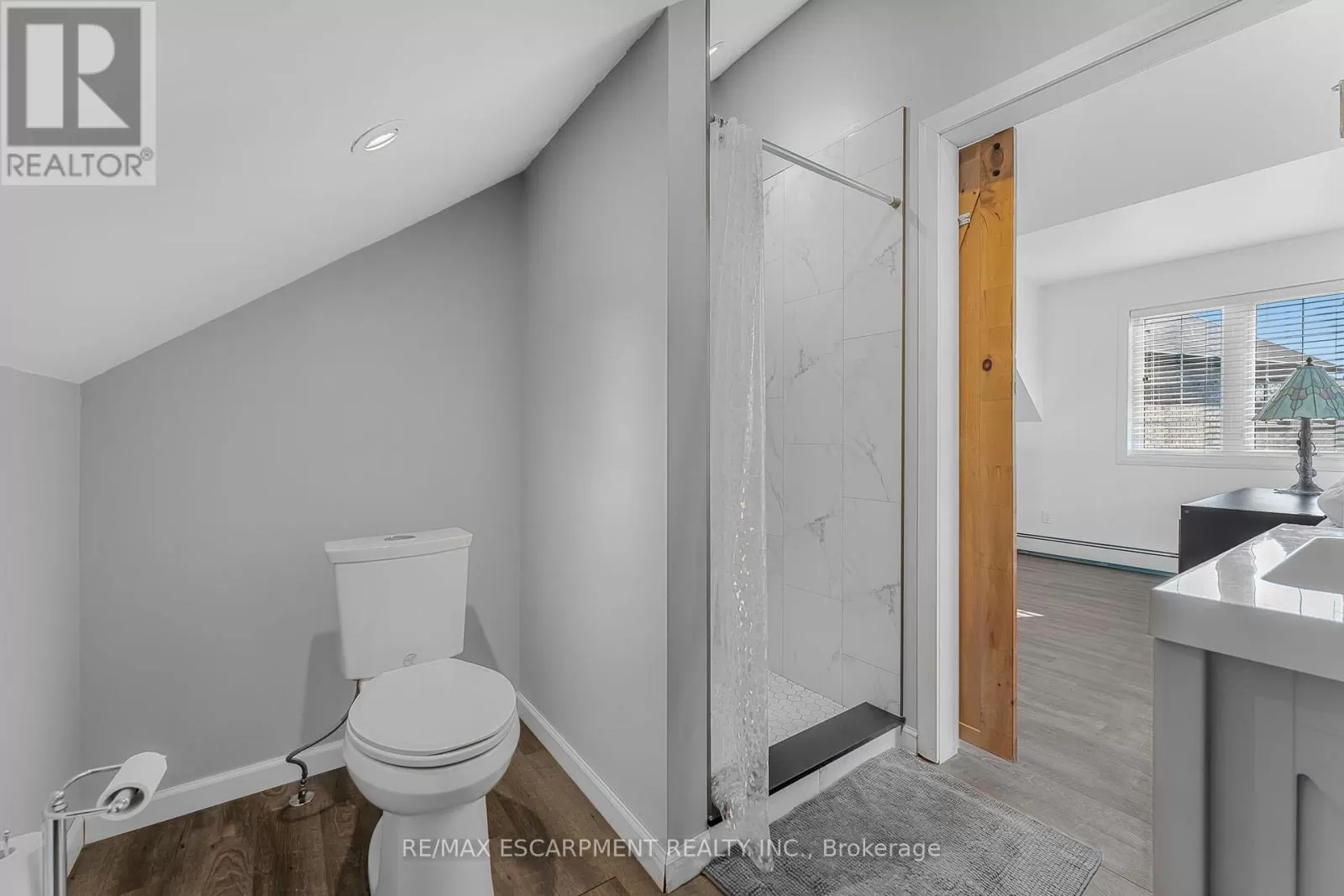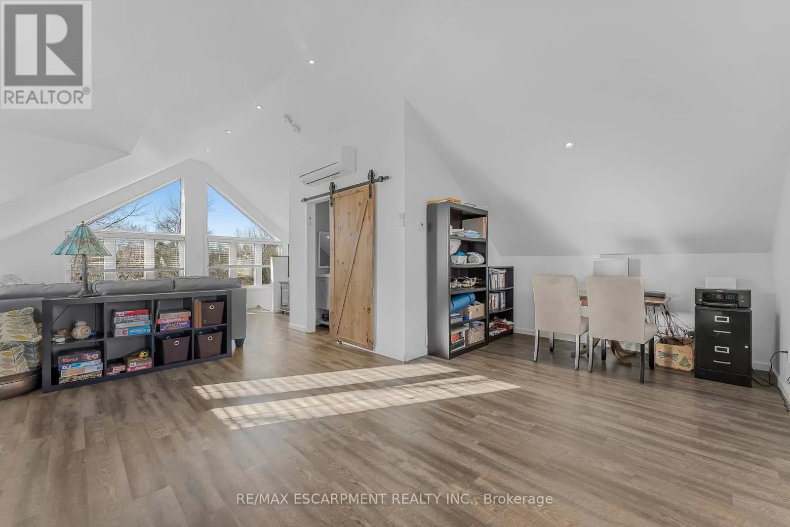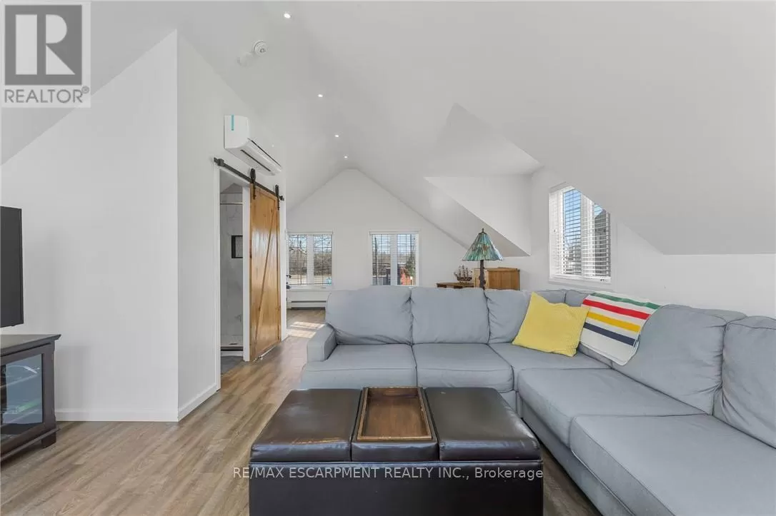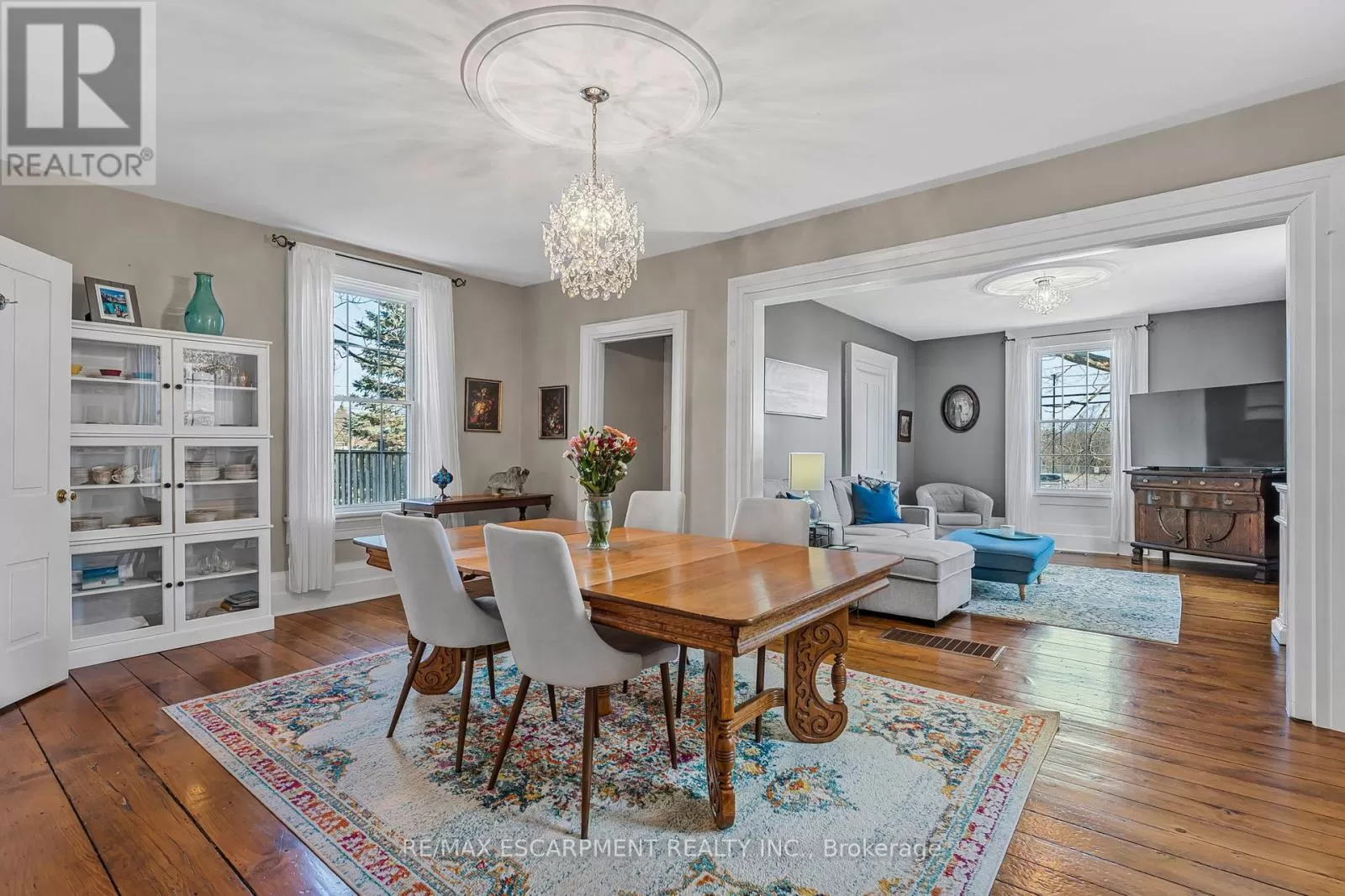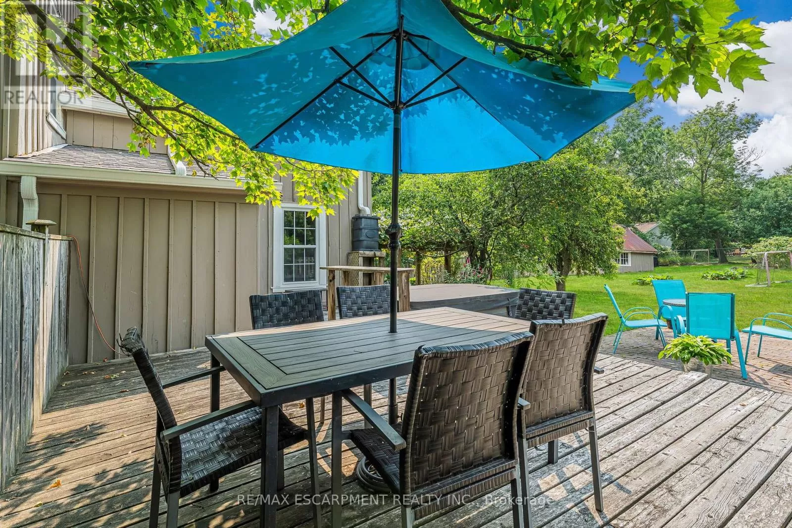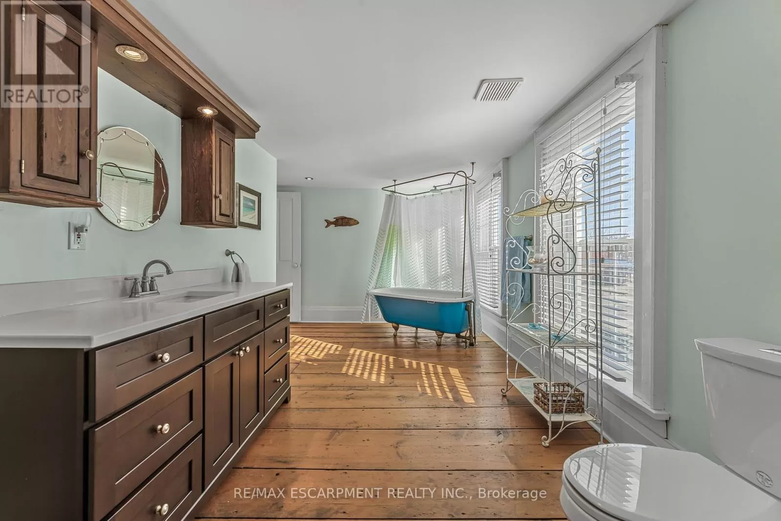 Cross Streets: Canborough Street. ** Directions: Canborough Street to Colver Street. Welcome to this beautiful 2,703 square foot rustic farmhouse built in 1880. Situated on just over half an acre, this property offers one of the largest Smithville town lots on municipal services! An addition was constructed in 2015 to add a mudroom w/ heated floor, a 1.5 car heated garage & a bonus family room above the garage w/ a 3pc bathroom. This loft could function as an office or be converted into an in-law suite! The kitchen was renovated in a classic style w/ Martha Stewart cabinetry, quartz countertops, a kitchen island & pine board ceiling. Original wood plank flooring carries throughout the main home structure, w/ 12 baseboards & wood trim throughout. A grand dining room connects seamlessly to the living room & provides the perfect entertainment space. The main floor bathroom was renovated w/ a marble shower, vinyl flooring & quartz countertop. The primary bedroom boasts a vaulted ceiling w/ wood beams & ensuite privilege to a 4pc bathroom w/ an antique clawfoot tub/shower. The front staircase leads to 2 additional bedrooms & a storage closet w/ access to a large attic space for additional storage. This extra large rear yard includes two separate decks for enjoyment, as well as a hot tub & pergola covered in vines for a cool shaded area to sit in summer. The playground structure & 2 additional outbuildings provide ample storage for equipment & a workshop area w/ hydro. Updates include shingles (17), furnace/AC/HEPA filter (22), sump pump (22), eavestroughs/downspouts (23). (id:27476)