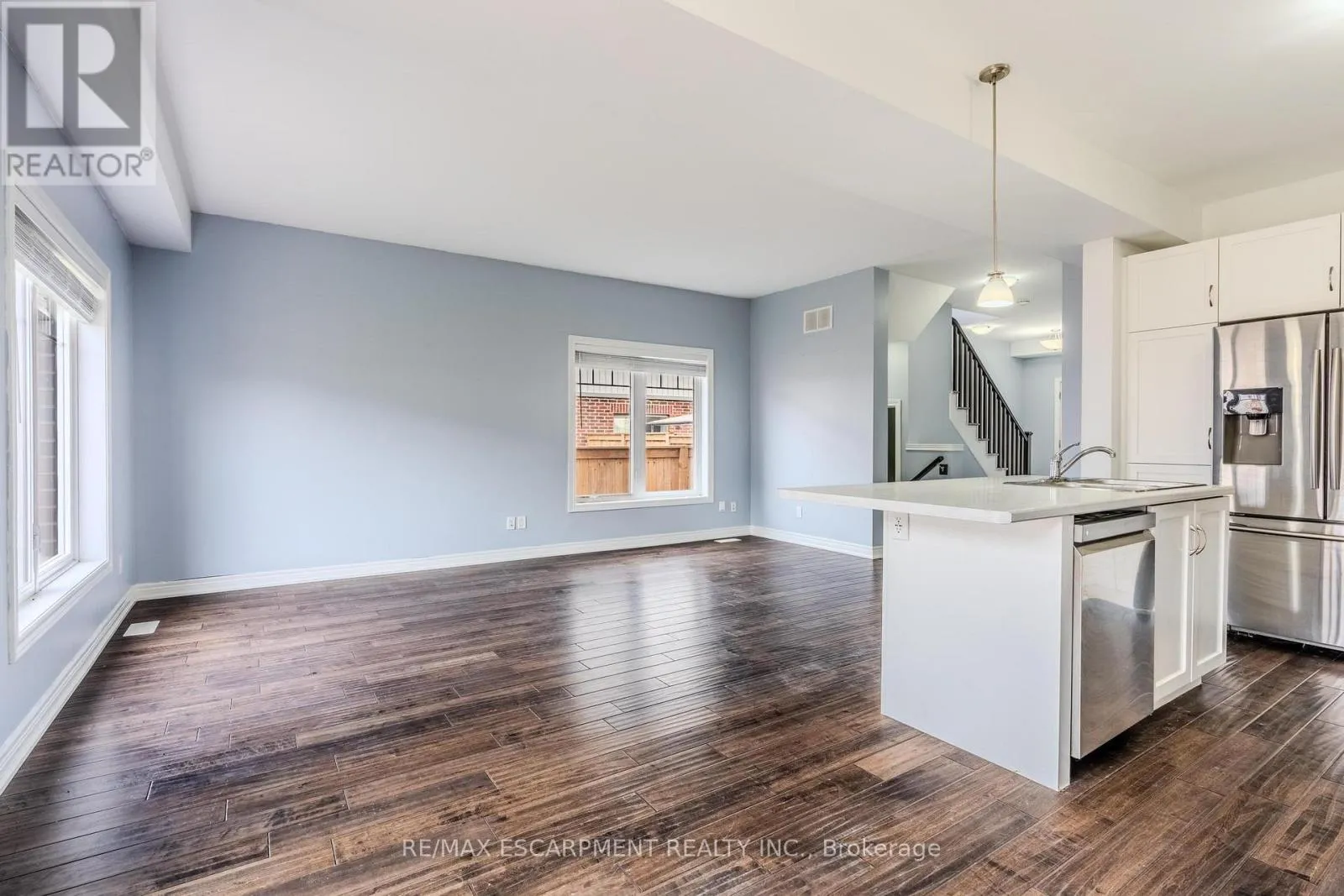 Streamside/Severino Welcome to Smithville! This beautifully maintained townhome is ready for its next owner. Step inside to a bright, open-concept main floor featuring 9-foot ceilings and plenty of natural light with southern exposure at the back of the home. The spacious kitchen offers a centre island with breakfast bar, upgraded counters, and a charming backsplash detail-perfect for both cooking and entertaining. The dining area and family room flow seamlessly together, while the walk-out patio provides a great space for BBQs or relaxing outdoors. Upstairs, the primary suite includes a generous walk-in closet and a 4-piece ensuite. You'll also appreciate the convenience of second-floor laundry. Vinyl flooring runs throughout much of the home, adding warmth and durability. Located close to schools, the arena, and everyday amenities, with easy access for commuters via the Red Hill Expressway in Hamilton. (id:27476)