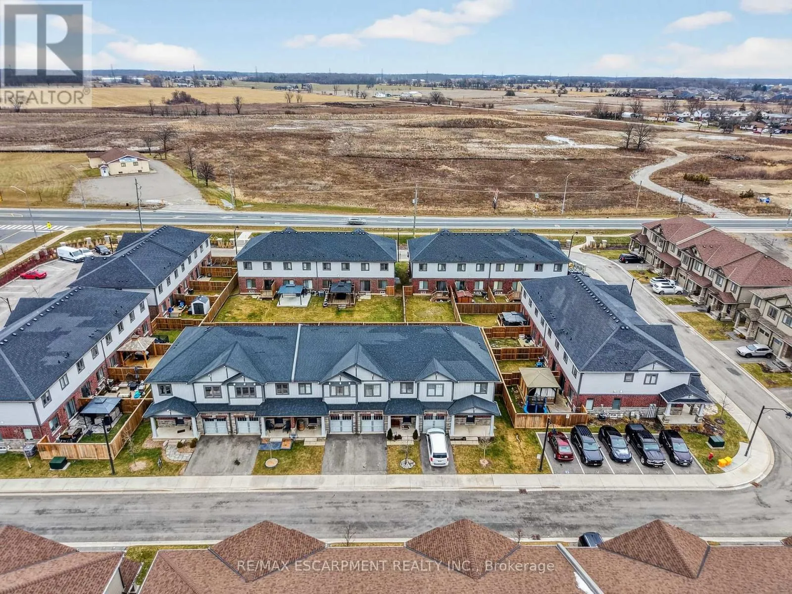 Cross Streets: Streamside Drive. ** Directions: Hwy 20 to Streamside, turn left into Severino. Welcome to 73 Severino Circle! This two storey townhome is a 3-bedroom, 2.5-bath home in a sought-after Smithville neighbourhood. Built in 2018, this townhome offers 1,508 square feet of bright, functional living space ideal for families or first-time buyers. The open-concept main floor features updated luxury vinyl flooring (2025) in the living room, an inviting living/dining area, and a stylish kitchen with island seating and stainless steel appliances - including a newer fridge and dishwasher (2024). Upstairs, you'll find a spacious primary bedroom with an ensuite and walk-in closet, two additional bedrooms, a full bathroom, a linen closet, and a generous double storage closet. The fully fenced backyard is perfect for pets or playtime. Additional perks include a rough-in for a future bathroom in the basement, single attached garage, and visitor parking in the complex. Located across from St. Martin Catholic elementary school and with easy access to Grimsby and Hamilton, this home offers unbeatable value in a family-friendly community. (id:27476)