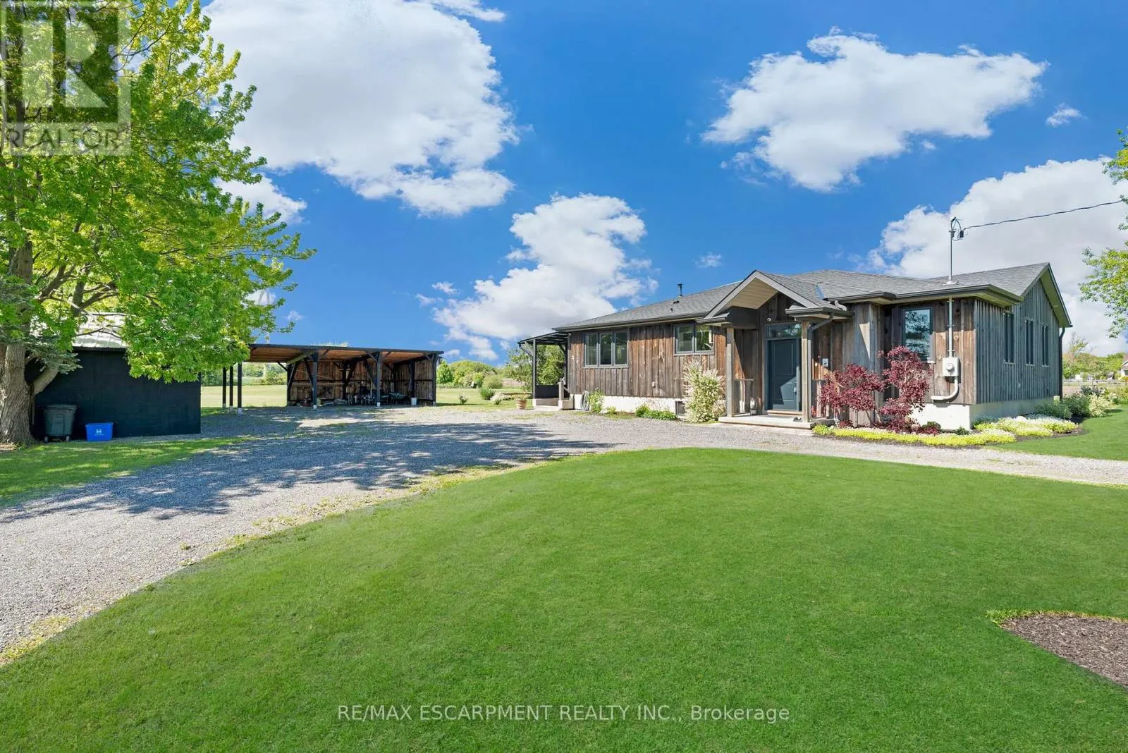 Cross Streets: Port Davidson Road. ** Directions: Port Davidson Road to Elcho Road. 4.02 acres of rural paradise! This stunning hobby farm property features a "practically new" home and exceptional outbuildings, offering the opportunity to own a turnkey acreage in West Lincoln. An impressive 50' x 29' insulated Quonset workshop comes equipped with a water, concrete floor, wood stove and 70 amp electrical service. The home underwent a complete transformation in 2018 with majority of foundation, framing, electrical, plumbing, HVAC, interior and exterior finishing, and roofing updated. Main floor features include a spacious living space with soaring vaulted ceilings and a modern kitchen with white cabinetry and rich wood countertops. The dining room has garden door access to a covered 10' x 8' rear deck. 4 main floor bedrooms and a 5-piece bathroom complete the main level. A walk-up basement with a separate entrance offers potential for an in-law suite. The basement offers an additional bedroom, an expansive rec room and cold storage room. A modern 3-piece bathroom features a walk-in shower, oak vanity, penny tile flooring, and a decorative mirror. Additional outbuildings include: 29' x 16' garage/storage building with single car parking and wood storage area, an 11' x 23' storage building and an 18' x 30' carport with covered parking for three vehicles - complete with hydro service for added convenience. The chicken coop and dog shed both benefit from hydro service, ensuring your hobby farm operations run smoothly year-round. This property offers the ideal setting to enjoy the peace and privacy of rural living. With over 4 acres of land, premium outbuildings, a garden, and a fenced-in chicken coop, this hobby farm is truly a rare find where the possibilities are endless. (id:27476)