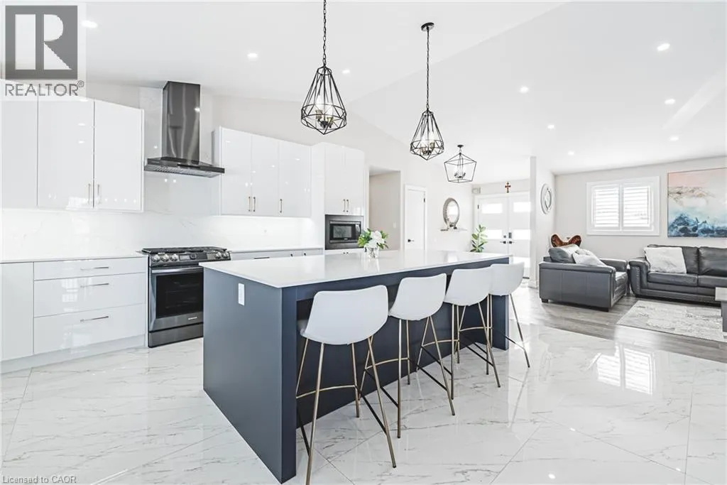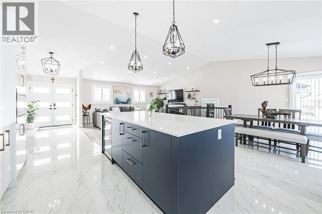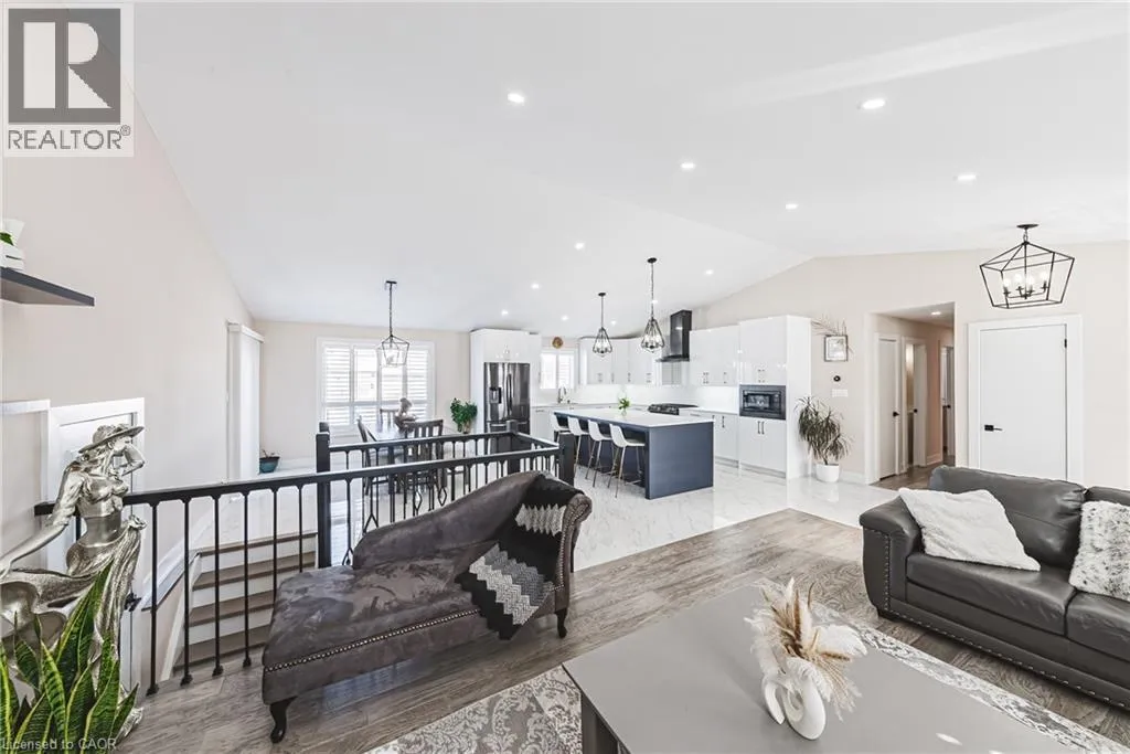 Abingdon Road & Penny Lane Welcome to this beautifully renovated bungalow nestled on a peaceful court, offering the perfect blend of country tranquility and urban sophistication. Situated on a sprawling 1.15-acre lot, this home boasts a modern design with an inviting open-concept layout, ideal for both relaxation and entertaining. Step inside to discover a bright and airy living space, highlighted by a large kitchen island, sleek finishes, and stylish fixtures. The main floor features three spacious bedrooms and two full bathrooms, providing comfort and convenience for the whole family. Downstairs, the fully finished basement offers additional living space with two more bedrooms, a cozy family room, a dedicated office space, and another full bathroomâperfect for guests or extended family. Outside, enjoy the best of both worlds with a heated 2-car garage, a large built storage shed, and a chicken coop providing fresh eggs daily. The property also features a picturesque small pond, adding to the serene outdoor setting. Located just minutes from urban amenities yet surrounded by nature, this one-of-a-kind home is a rare find. Donât miss your chance to experience modern country living at its finest! (id:27476)