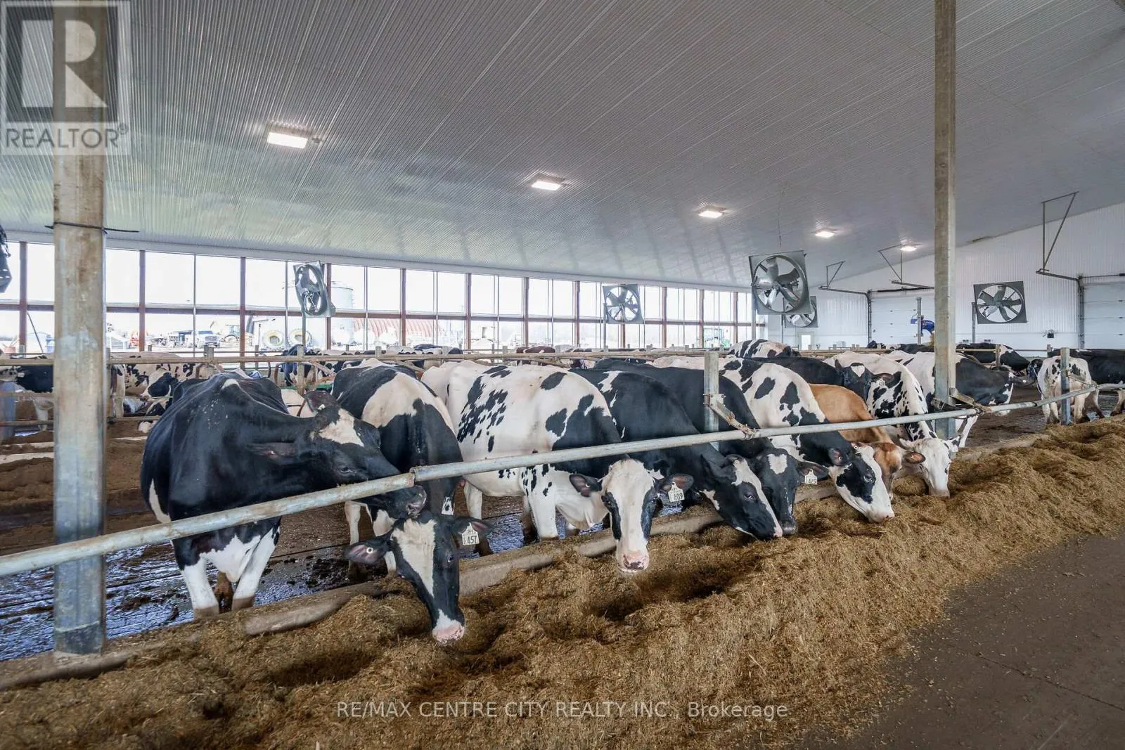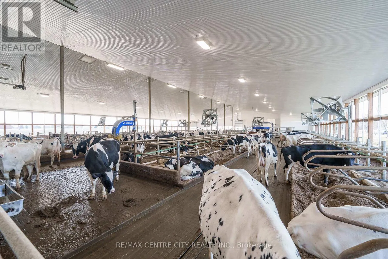 Cross Streets: Hwy 20 and S Grimsby Road 10. ** Directions: From Smithville take West St and it eventually turns into Hwy 20. Continue West and after approx. 4KM turn South onto South Grimsby Rd 10. After approximately 650M, when you reach Range Rd 1, turn West and after 450M the property will be on the Right. This Ongoing Dairy operation with 59.76KG of Saleable Quota and a 1600 space nursery barn on 90 acres is just minutes west of Smithville in Niagara Region. The bright and airy 110x200' free stall dairy barn was mindfully built in 2021 with convenient workload and growth in mind. The 65 milking stalls and DeLaval V310 robot milker are on the one side of the barn separated by a 18' feed alley, and the other side holds the replacements and dry cows with 44 more Jourdain stalls & headlocks. The two large feed bunks and bailage provide ample feed using the Patz mixer on site and the auto feed pusher keeps it all tidy. The ventilation, feed auger and manure system in this barn are automated using the centralized Maximus control system. The additional revenue stream on this farm is ideal with the 55x127' nursery barn built in 2000, it is set up with 4 rooms on full slats and shares the liquid manure pit with the dairy barn. The 28x100' drive shed has 3 large doors and a generator room with the automatic stationary Diesel generator that powers the entire farm. Other outbuildings include a 4200 bushel grain bin, 37' wide open quonset, and a 19x14' storage building currently being used as a chicken coop. The home on this farm is a recently updated 1200sqft open concept raised bungalow with a metal roof and hosts 5 bedrooms and 2 bathrooms with an attached garage. This farm is a great opportunity and is turn-key. (id:27476)