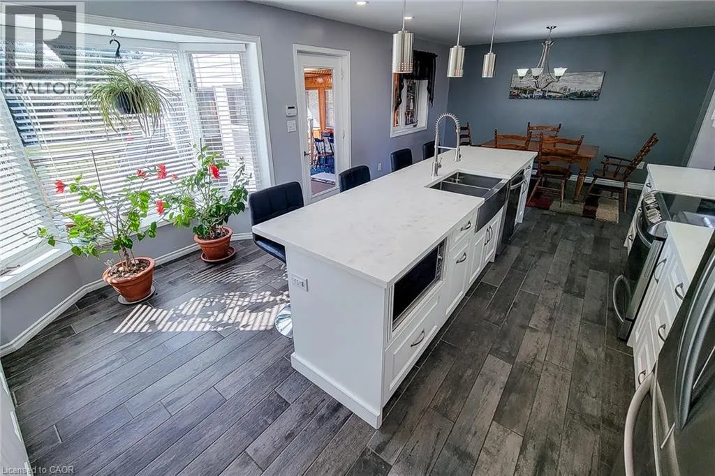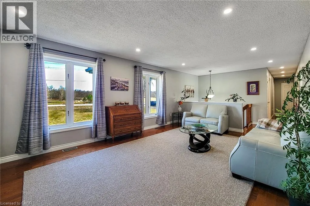 Caistor Centre Rd and Silver St Welcome to this beautifully renovated country retreat, perfectly situated on a spacious and private lot surrounded by mature trees and open green space. This charming home offers the ideal blend of modern updates and peaceful outdoor living. Inside, the home has been completely renovated and showcases a bright, open-concept kitchen featuring quartz countertops, stainless steel appliances, a stylish backsplash, pot lights, and durable tiled flooring. The inviting living area offers rich hardwood floors, a cozy gas fireplace, and additional pot lighting, creating a warm and welcoming space for everyday living and entertaining. The main level is thoughtfully designed with two full bathrooms for added convenience. The lower level features large above-grade windows that bring in natural light, new carpeting throughout, and two generously sized bedrooms-perfect for family, guests, or a home office setup. Step outside to enjoy your own private backyard oasis. A large deck spans the entire back of the home, ideal for entertaining or relaxing while overlooking the expansive yard. The above-ground swimming pool is ready for summer enjoyment. Adding incredible value is the impressive 40 x 40 detached garage/workshop, fully spray-foamed and equipped with Propane Furnace perfect for hobbyists, car enthusiasts, or a year-round workspace. The long driveway and additional outdoor space provide ample parking for vehicles, trailers, or recreational equipment. With its wide-open surroundings, mature landscaping, and versatile outbuilding, this property offers the perfect balance of comfort, functionality, and country charm-all while still being within easy reach of nearby amenities. (id:27476)